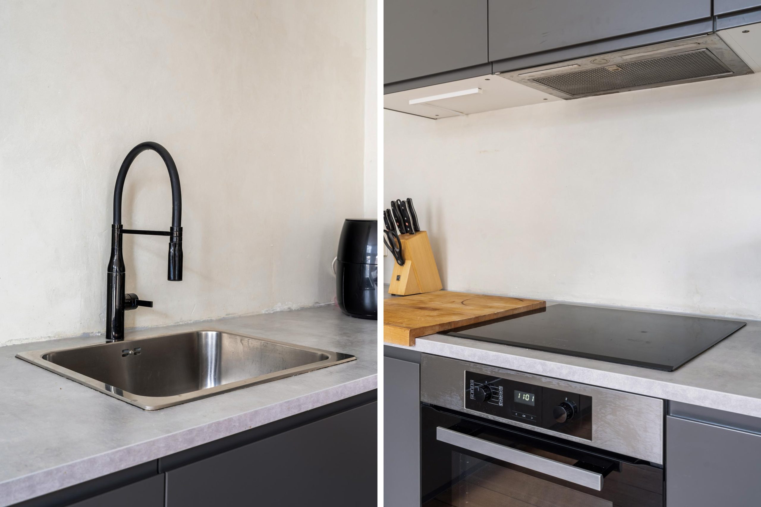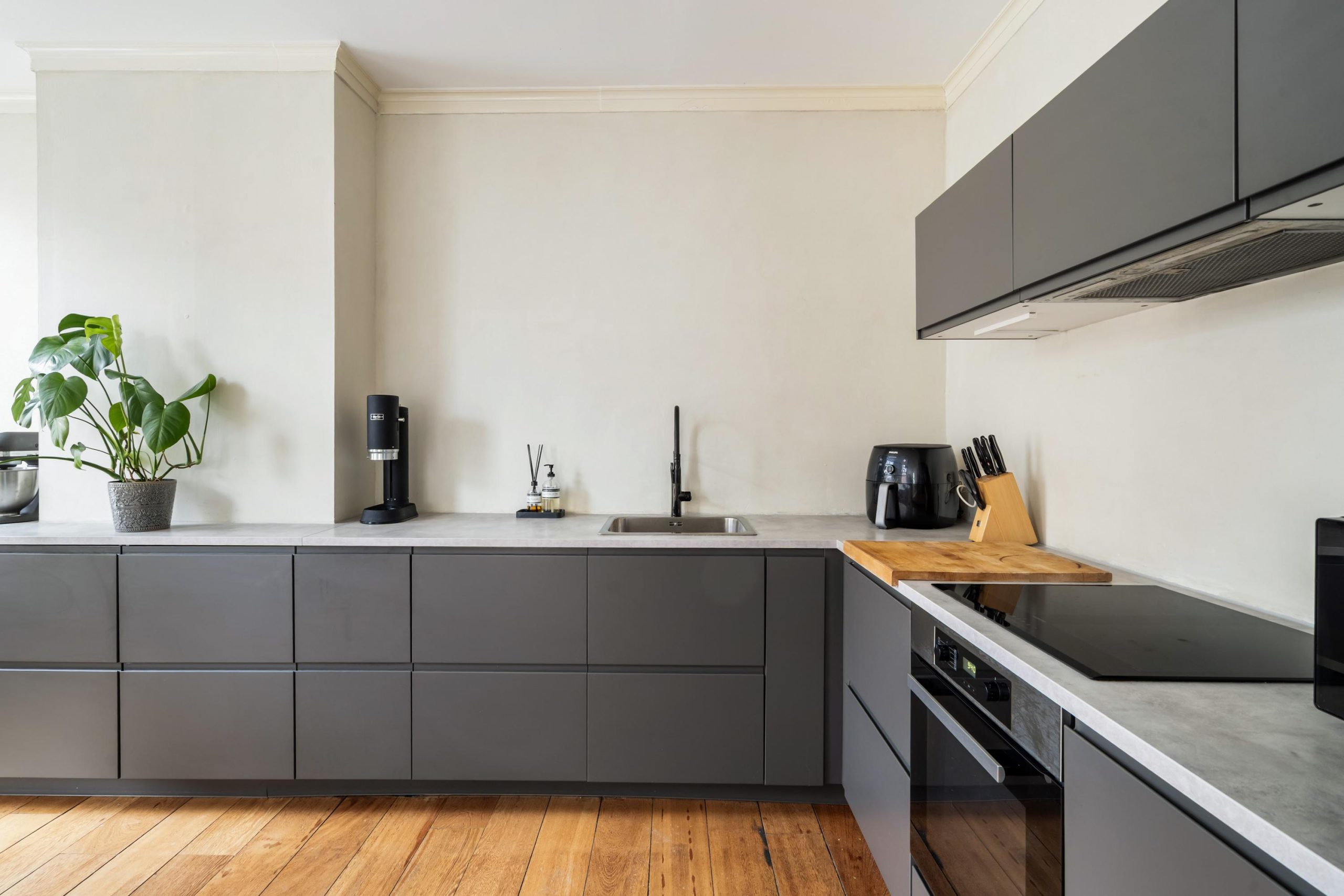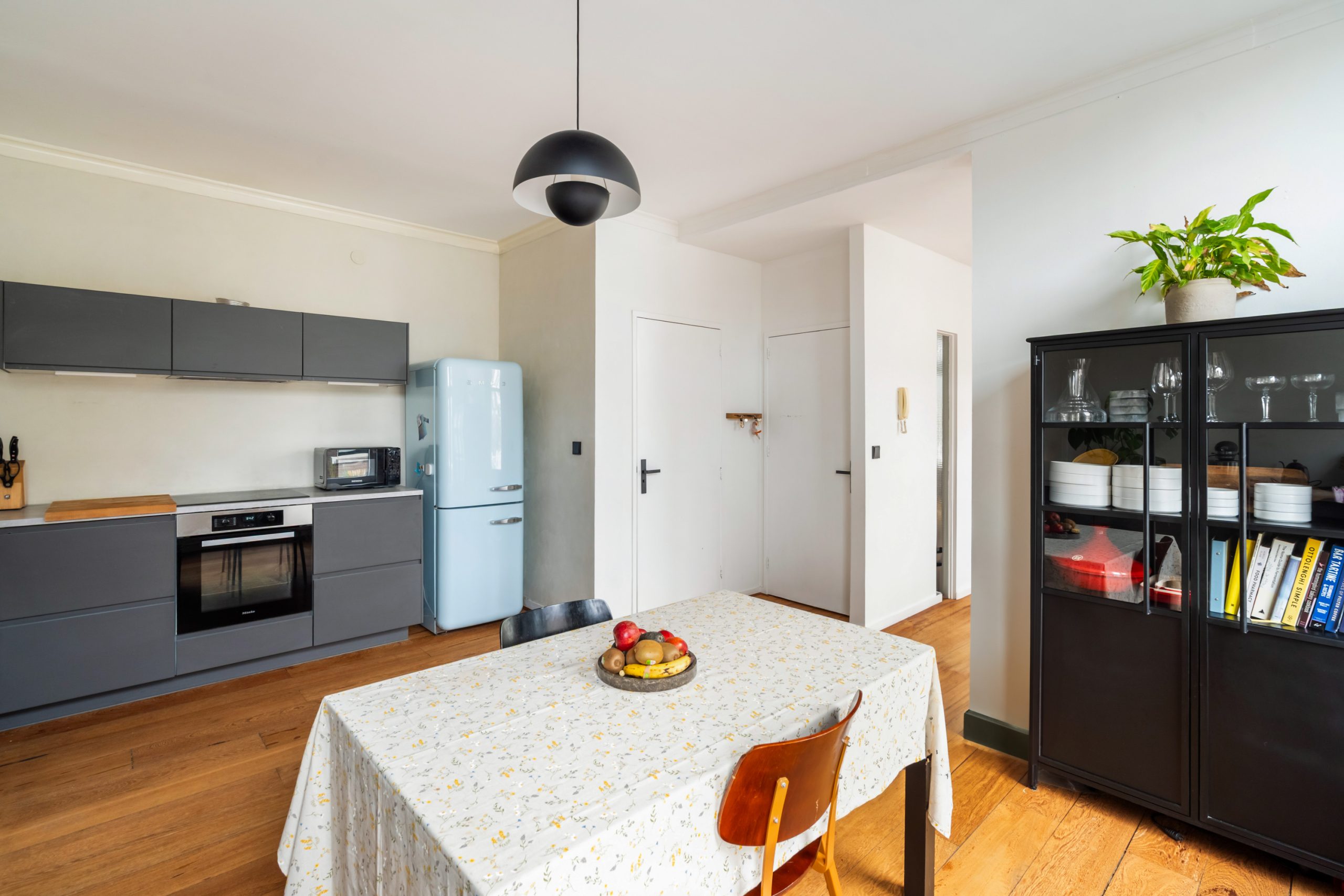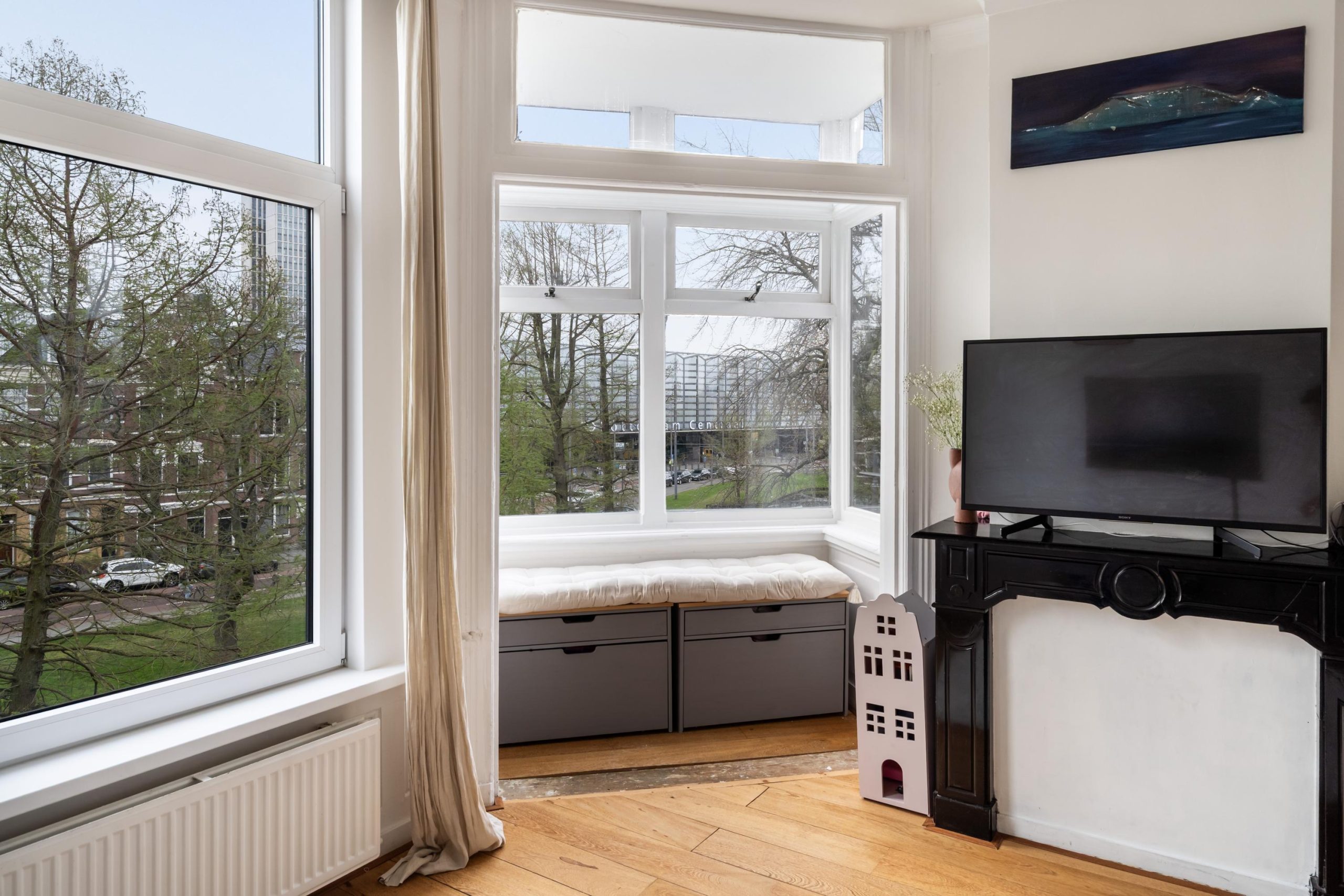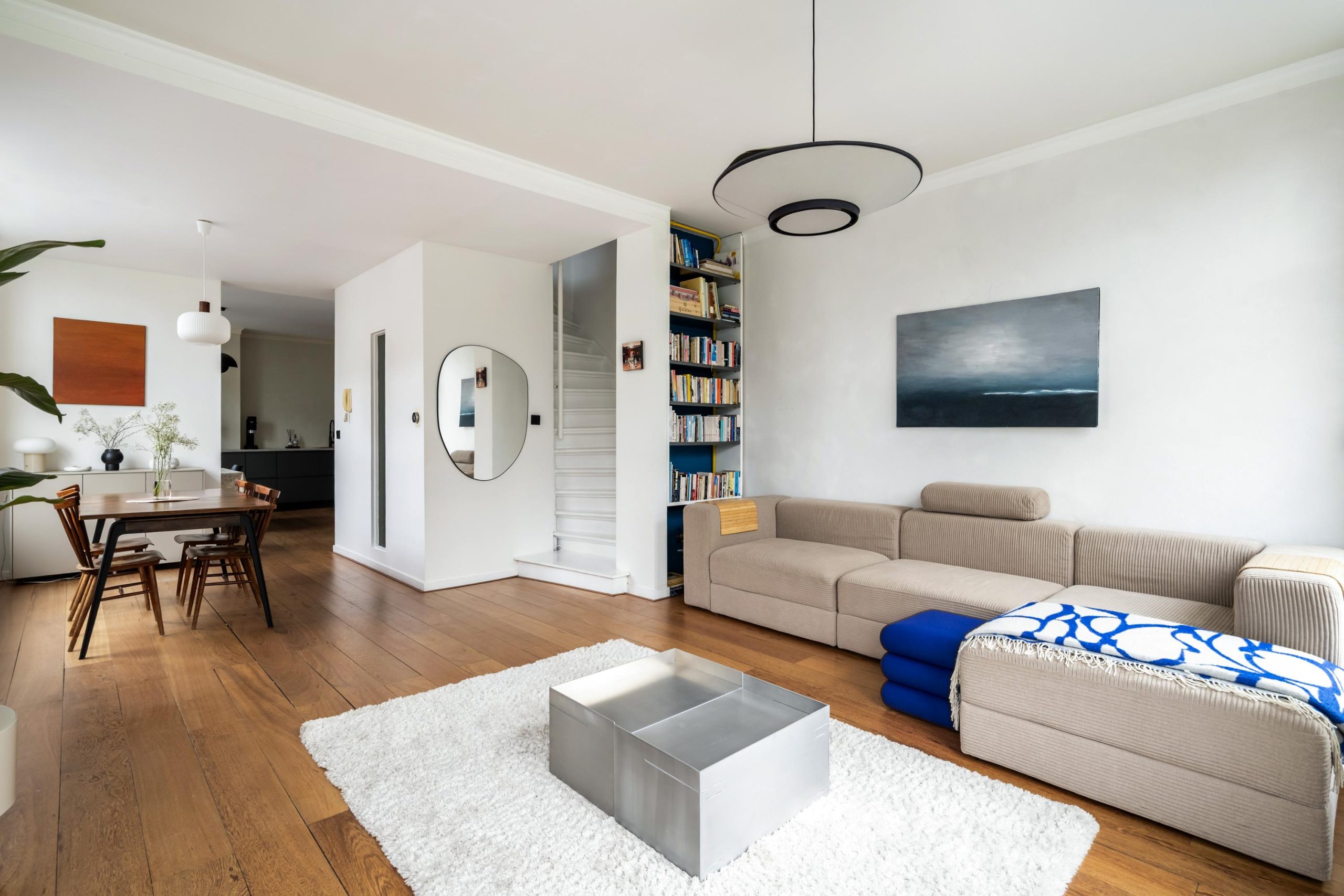Overloop met toegang tot het woongedeelte. Je komt binnen in de ruime eetkamer met open keuken. Deze fijne ruimte beschikt over grote raampartijen, waardoor er veel licht de woning binnentreedt. Er is ook voldoende ruimte voor een grote eettafel, waar met een groot gezelschap gedineerd kan worden. De moderne keuken beschikt over diverse soorten inbouwapparatuur zoals een 4-pits elektrische kookplaat met afzuigkap, oven, vaatwasser en voldoende opbergruimte. Het zitgedeelte is gelegen aan de voorzijde. Door de hoekligging, in combinatie met de grote raampartijen en de speelse indeling, ontstaat een heerlijk licht en sfeervol woongedeelte. De karakteristieke erker aan de voorzijde is een echte eyecatcher. Dit is een prachtige plek met uitzicht over de singel waar je heerlijk kunt zitten, werken of ontspannen.