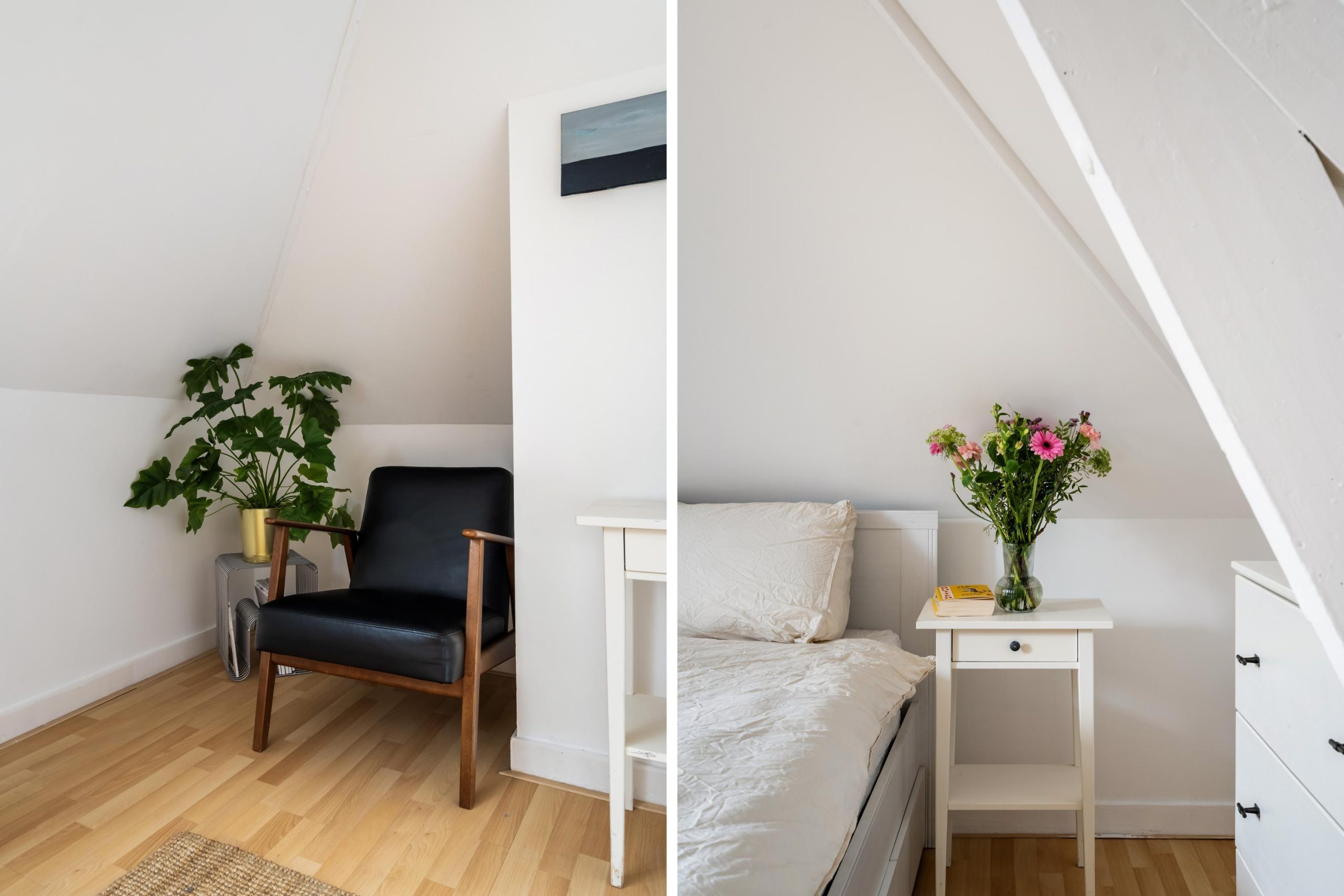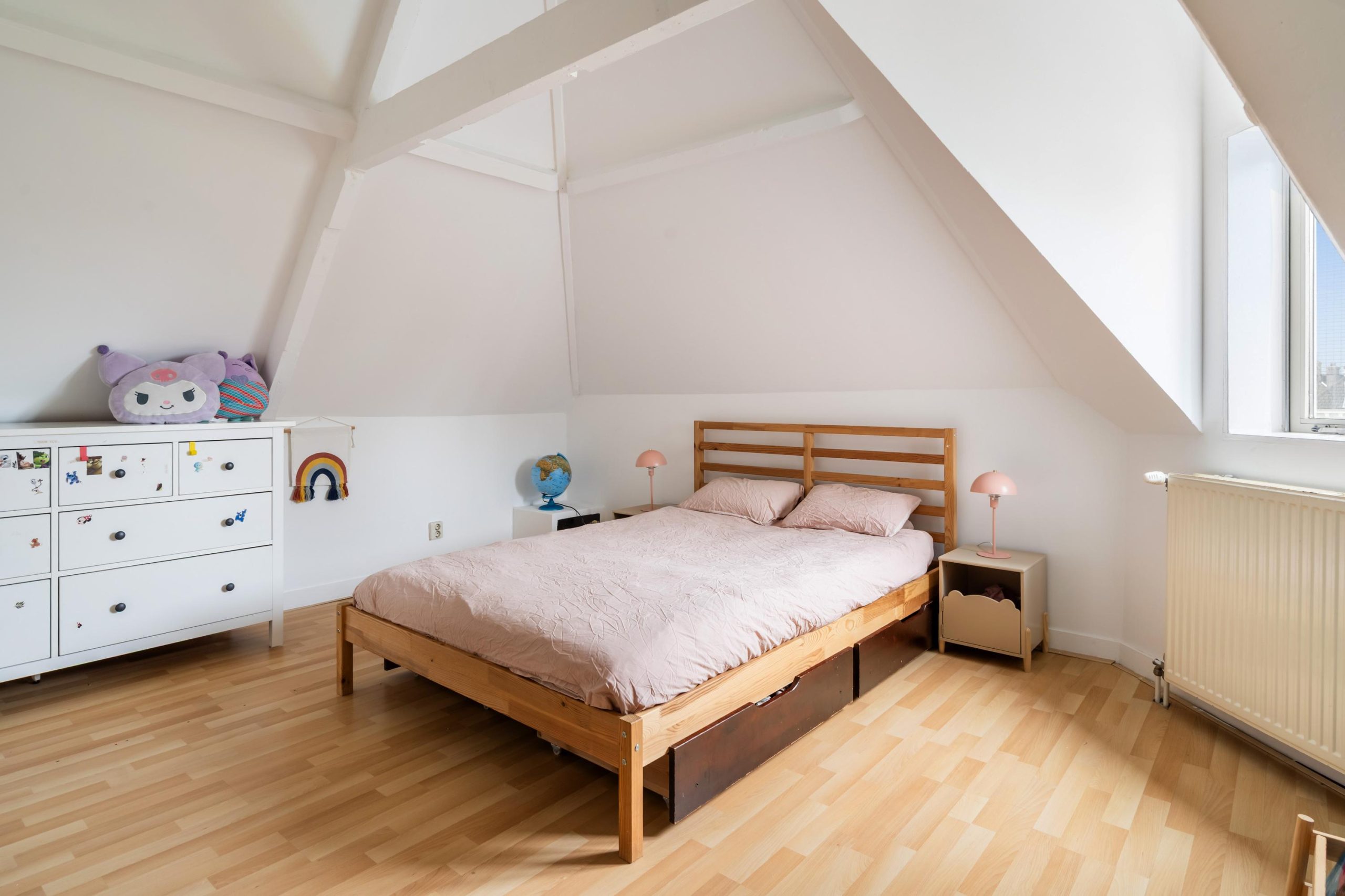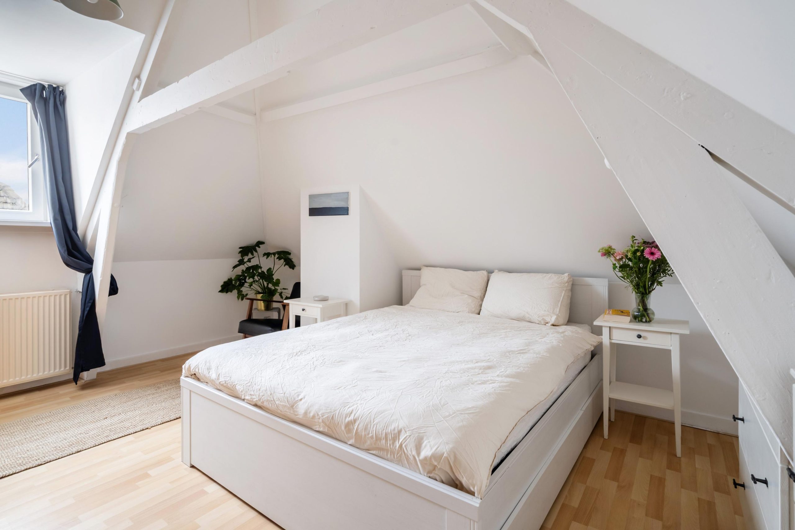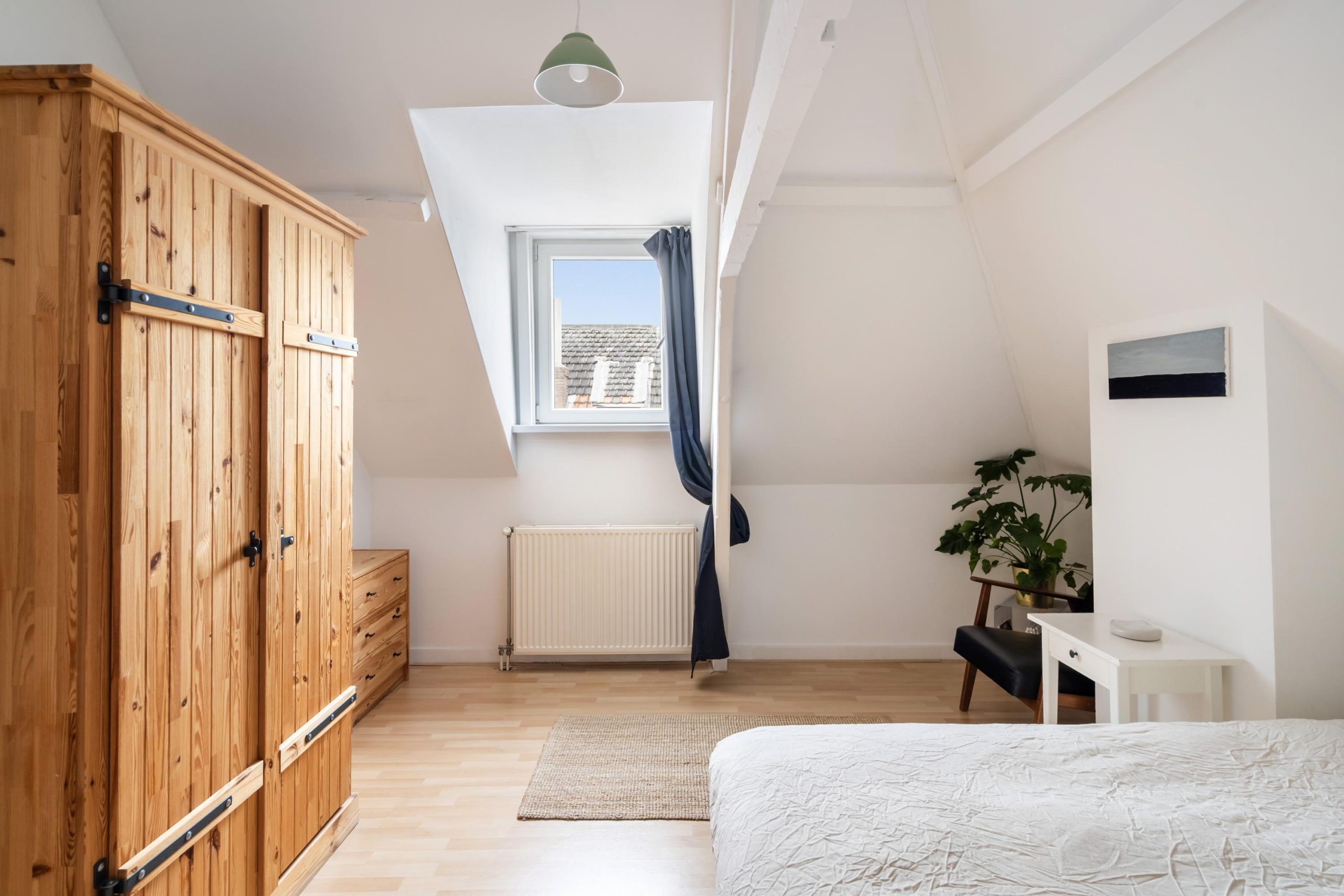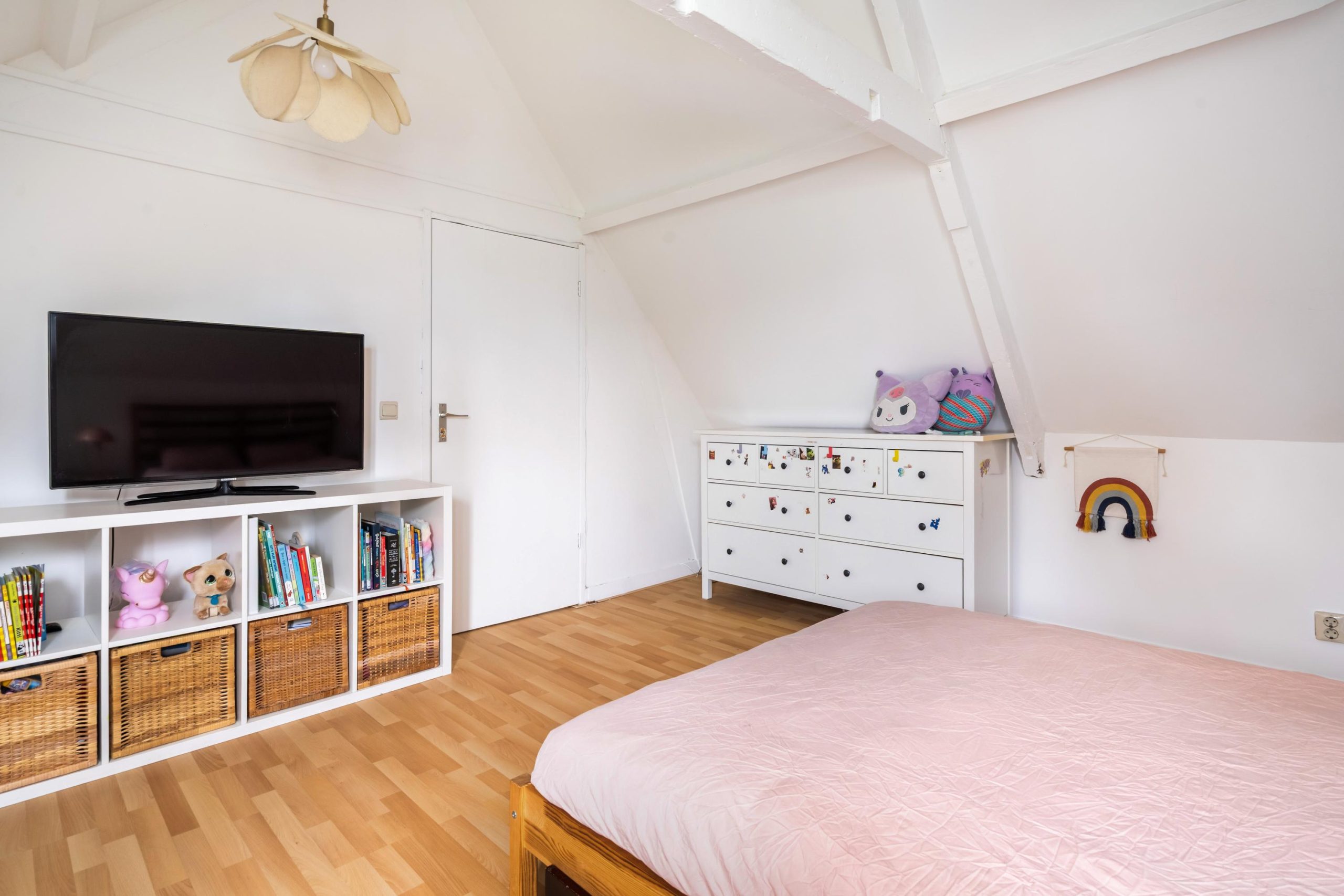 Overloop met berging en toegang tot alle vertrekken op deze verdieping. De 1e slaapkamer aan de achterzijde is erg ruim en beschikt over voldoende ruimte voor een tweepersoonsbed en een kledingkast. Bovendien zorgt de balkenstructuur voor een karakteristieke uitstraling en een warme, sfeervolle sfeer. De 2e slaapkamer is eveneens erg ruim. De volledig betegelde badkamer is voorzien van een toilet, douche, wasmachine-aansluiting, ligbad en wastafel.