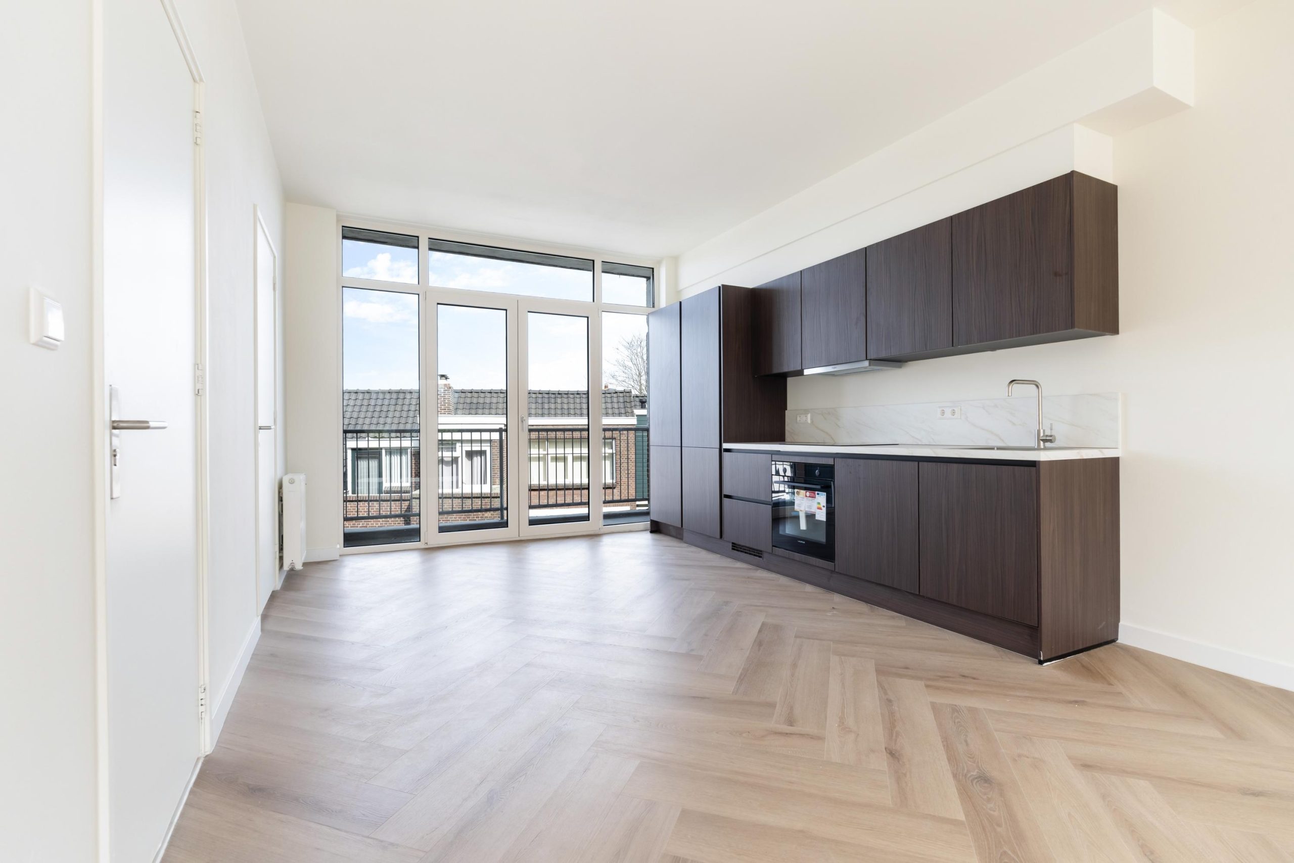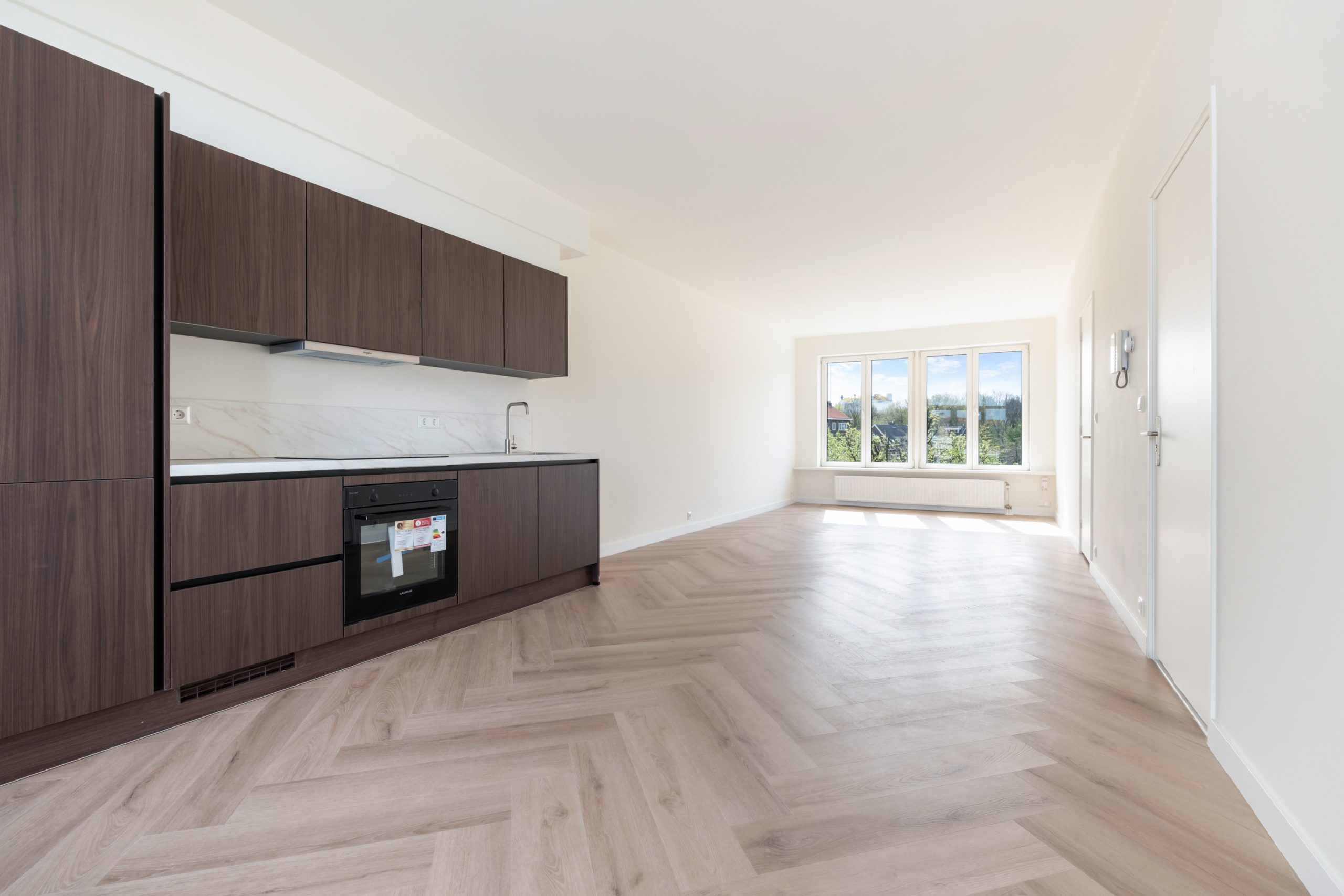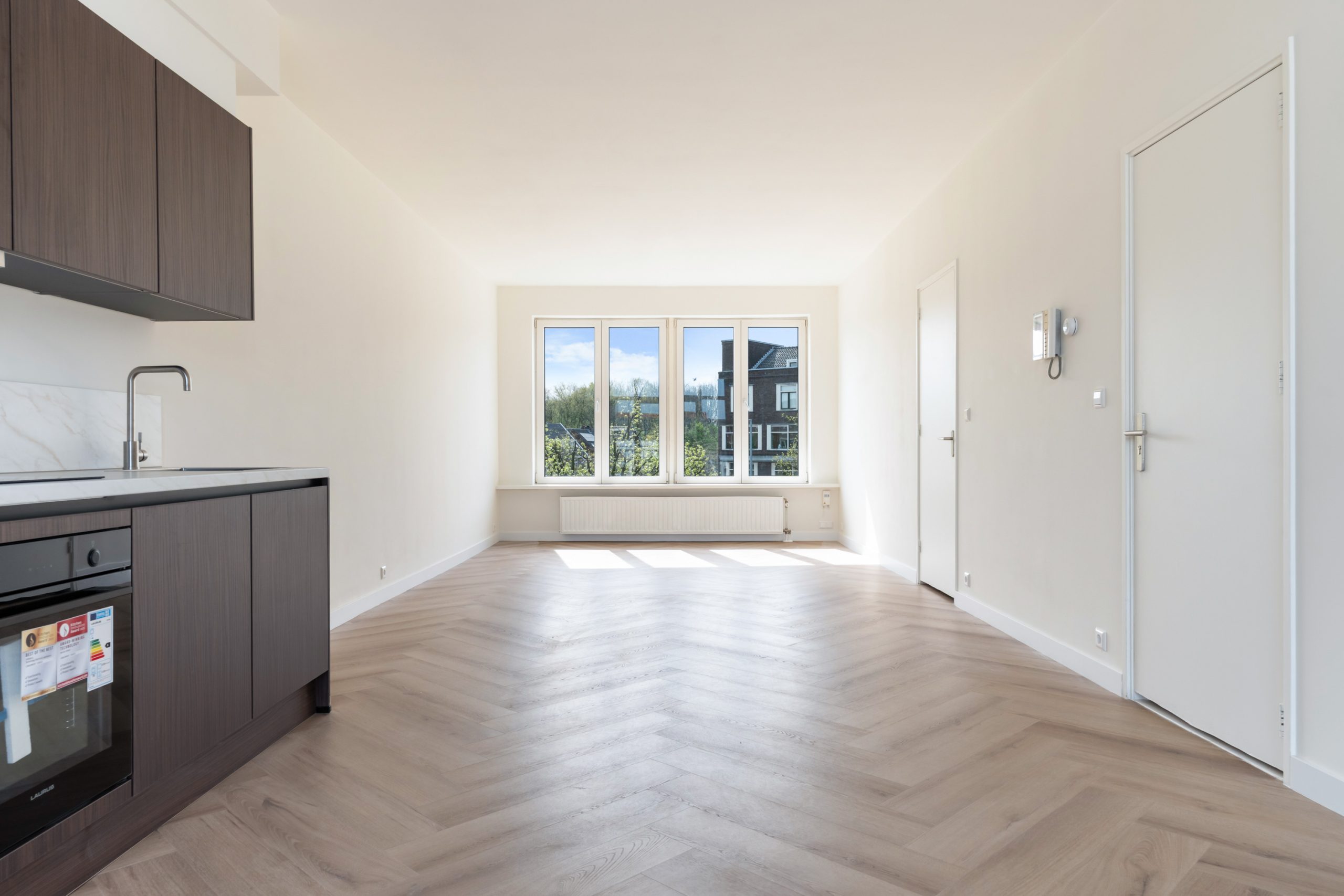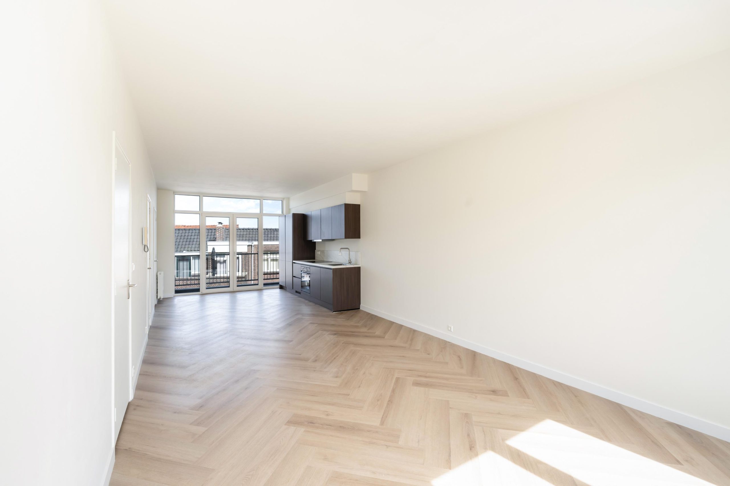 Entree met toegang tot de woonkamer. De doorzonwoonkamer heeft maar liefst een lengte van ca. 10 meter en is mooi afgewerkt. Door de grote raampartijen aan beide zijden treedt er veel natuurlijk licht de woning binnen, wat zorgt voor een aangename, lichte sfeer. De moderne open keuken is gelegen aan de achterzijde van de woning en beschikt over diverse soorten inbouwapparatuur, zoals een 4-pits inductieplaat met afzuiging, oven, vaatwasser en een koel-/vriescombinatie. Via openslaande deuren in de keuken bereik je het balkon, gelegen op het noorden. Het eetgedeelte kan uitstekend worden ingericht tussen de keuken en het zitgedeelte, waardoor een prettige en logische indeling ontstaat. Het zitgedeelte is gelegen aan de voorzijde van de woning en biedt een fijne plek om heerlijk te ontspannen. De master bedroom is gelegen aan de voorzijde van de woning. Dit is een lichte kamer en geeft toegang tot de badkamer en het separate toilet. Deze gerenoveerde badkamer beschikt over een inloop(regen)douche en een wastafel met meubel. Aan de achterzijde bevindt zich de 2e slaapkamer en is multifunctioneel in te richten als bijvoorbeeld een werk-, kinder-, kasten- of slaapkamer.