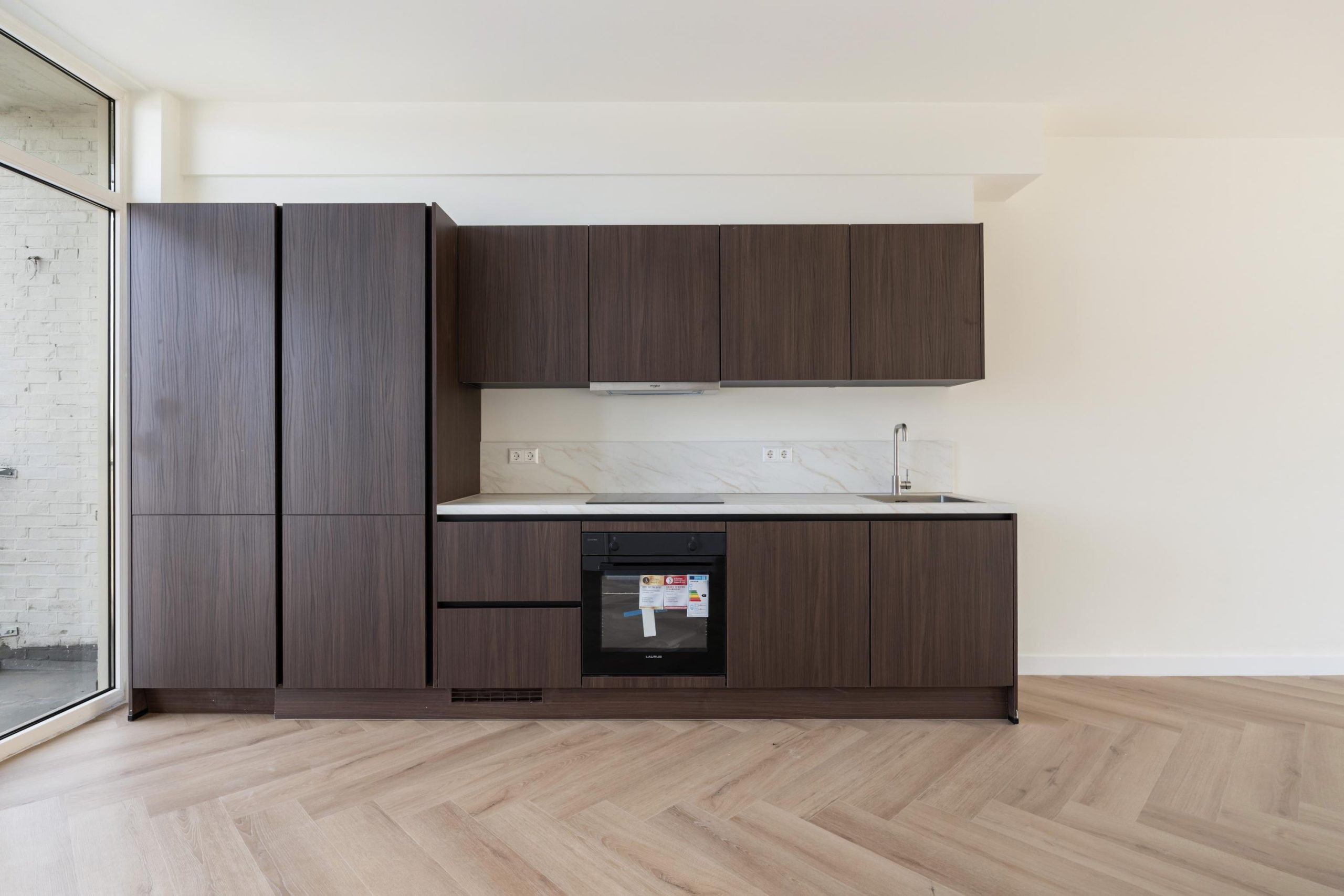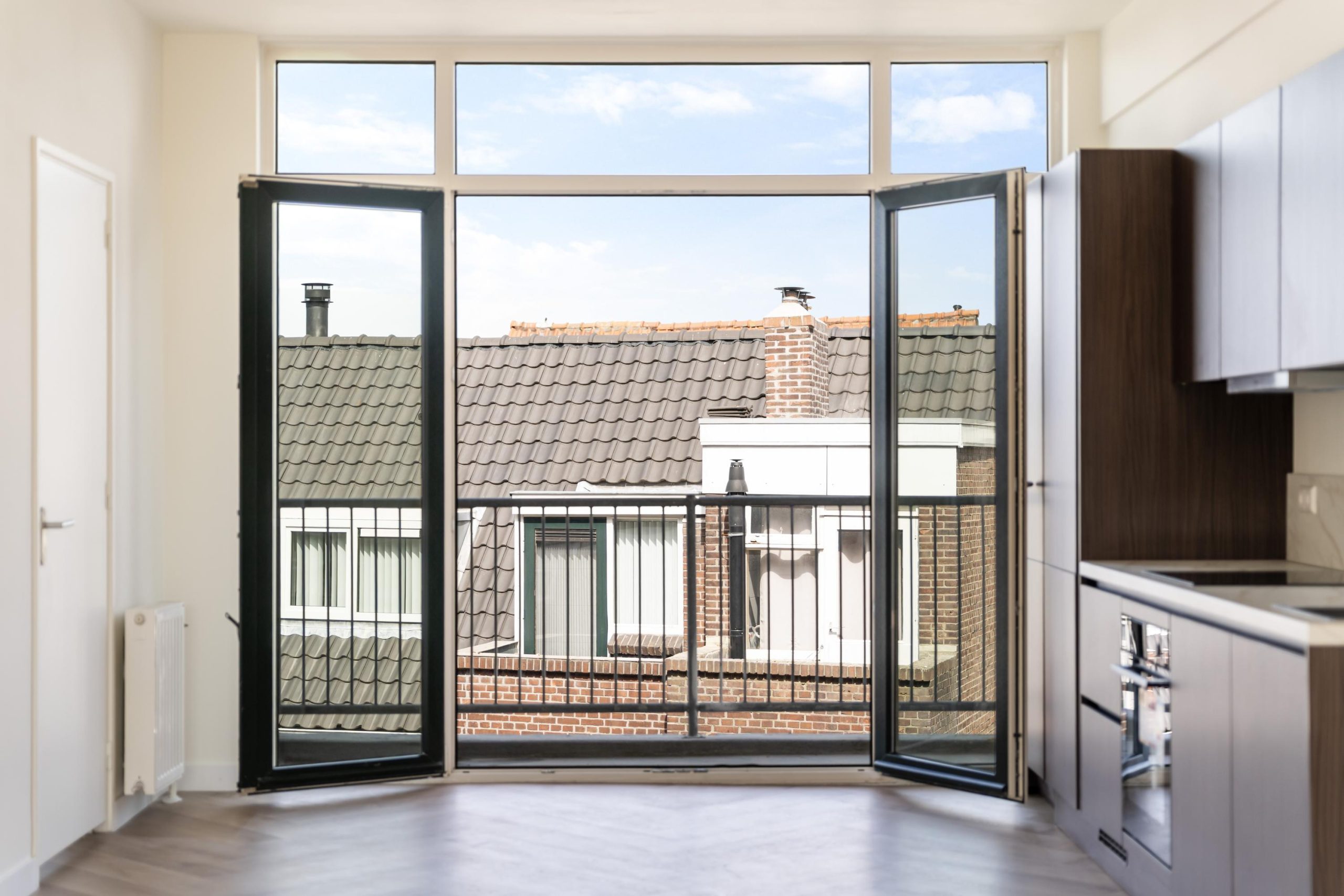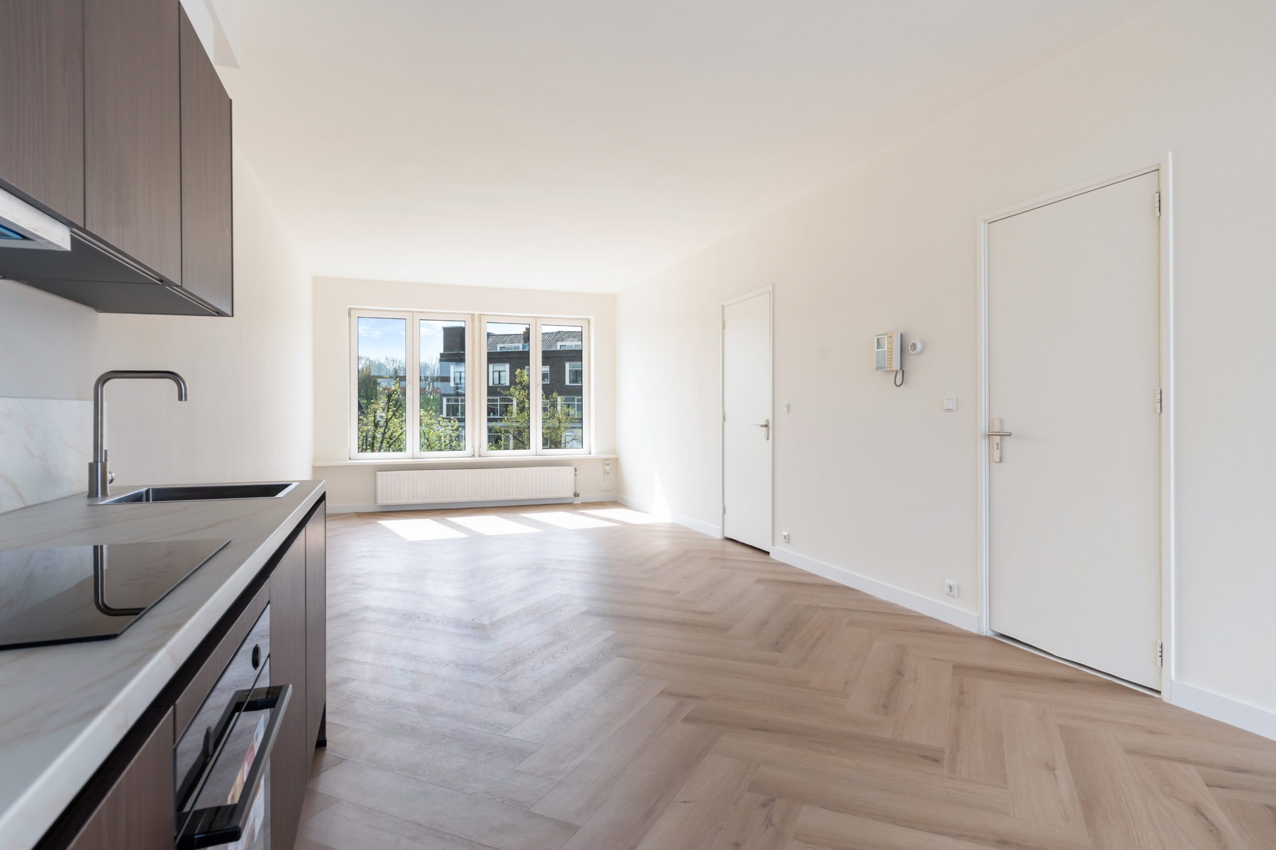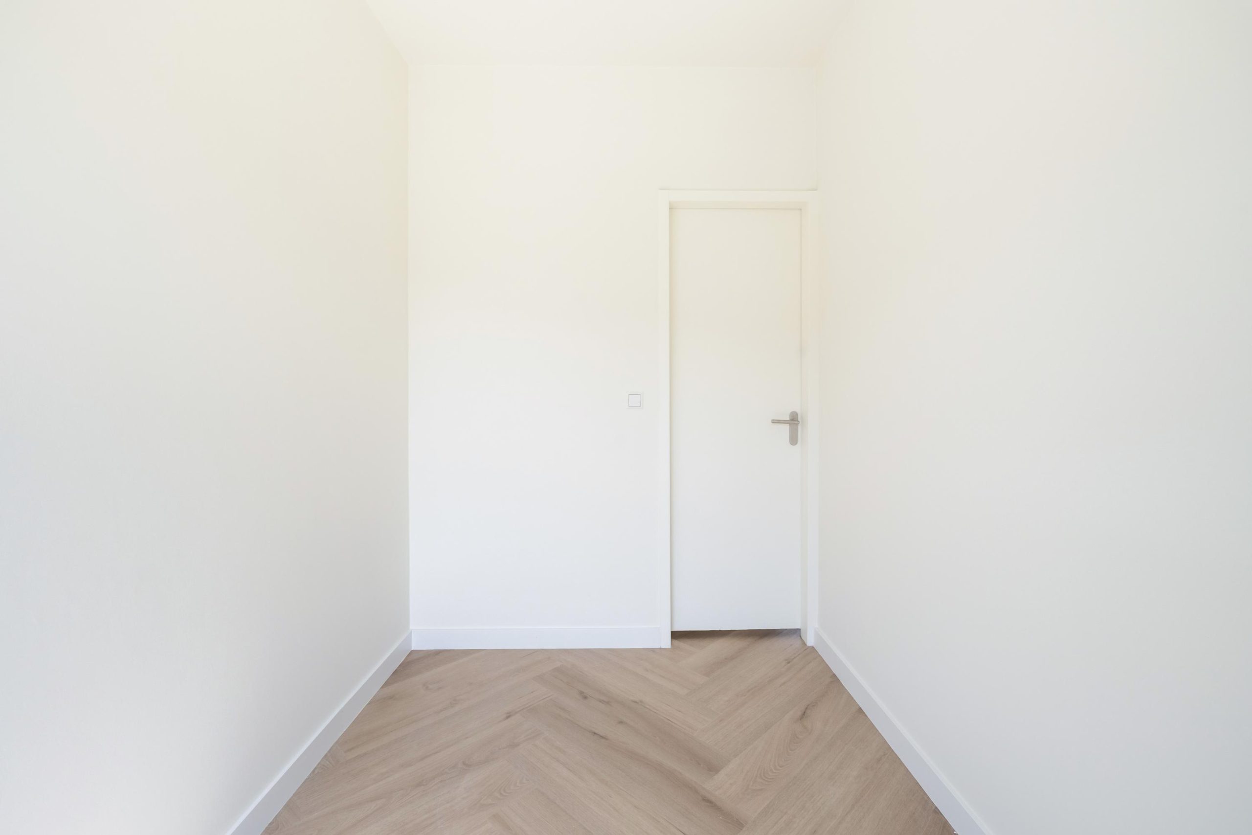 Entree met toegang tot de woonkamer. De doorzonwoonkamer heeft maar liefst een lengte van ca. 10 meter en is mooi afgewerkt. Door de grote raampartijen aan beide zijden treedt er veel natuurlijk licht de woning binnen, wat zorgt voor een aangename, lichte sfeer. De moderne open keuken is gelegen aan de achterzijde van de woning en beschikt over diverse soorten inbouwapparatuur, zoals een 4-pits inductieplaat met afzuiging, oven, vaatwasser en een koel-/vriescombinatie. Via openslaande deuren in de keuken bereik je het balkon, gelegen op het noorden. Het eetgedeelte kan uitstekend worden ingericht tussen de keuken en het zitgedeelte, waardoor een prettige en logische indeling ontstaat. Het zitgedeelte is gelegen aan de voorzijde van de woning en biedt een fijne plek om heerlijk te ontspannen. De master bedroom is gelegen aan de voorzijde van de woning. Dit is een lichte kamer en geeft toegang tot de badkamer en het separate toilet. Deze gerenoveerde badkamer beschikt over een inloop(regen)douche en een wastafel met meubel. Aan de achterzijde bevindt zich de 2e slaapkamer en is multifunctioneel in te richten als bijvoorbeeld een werk-, kinder-, kasten- of slaapkamer.