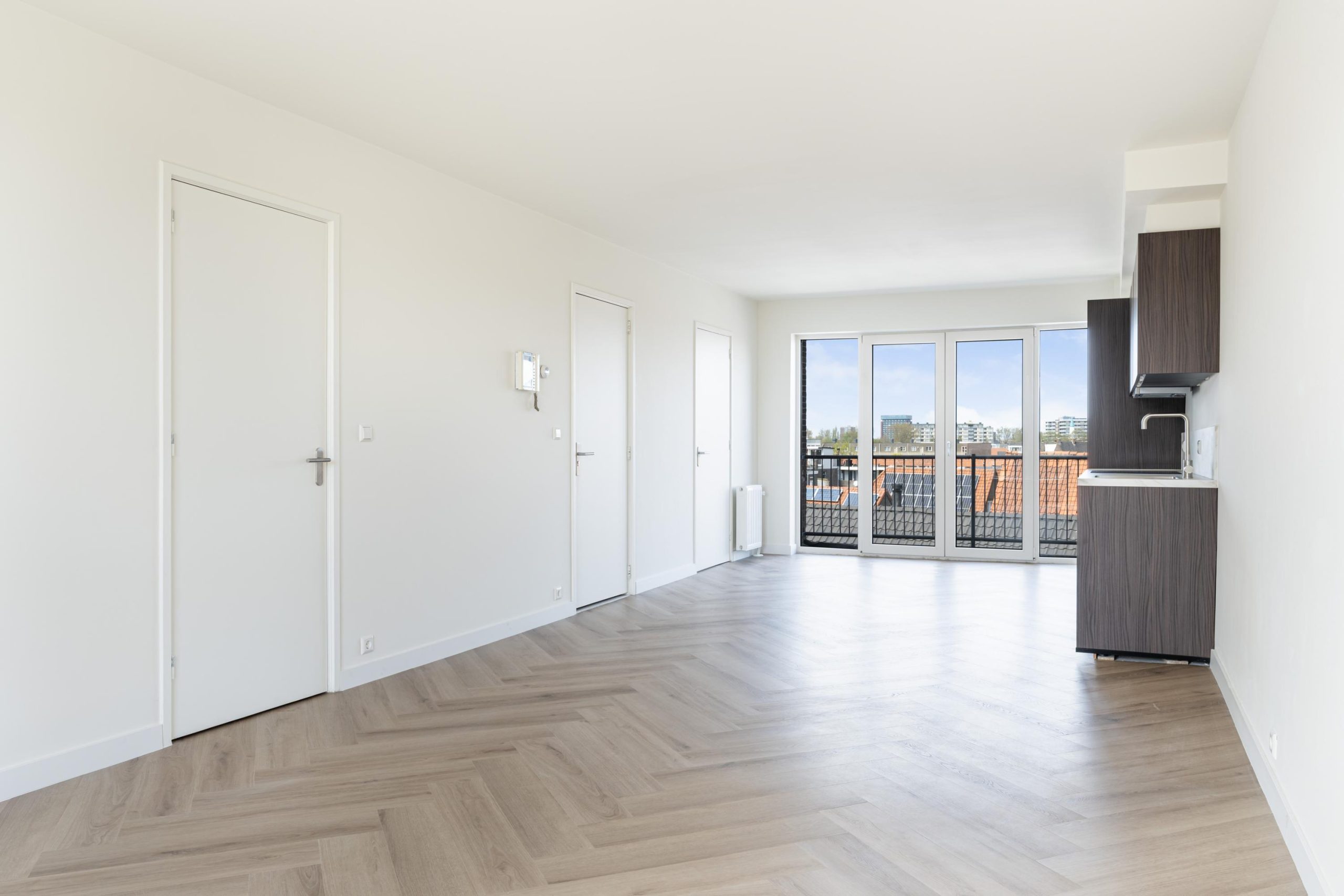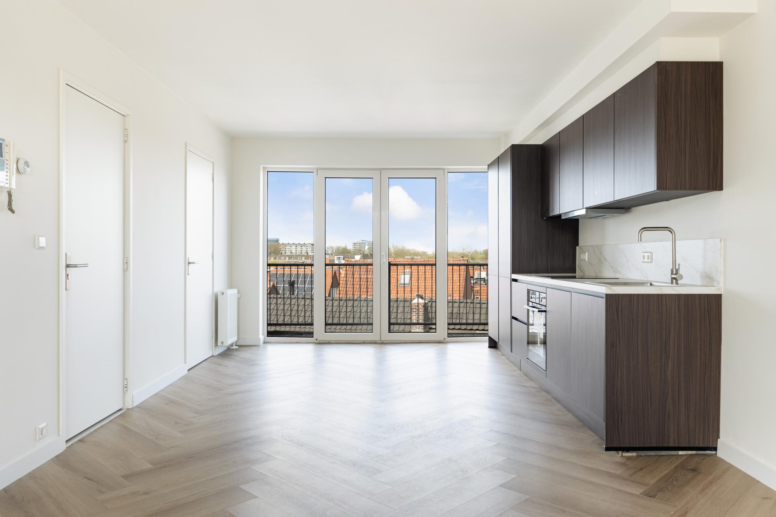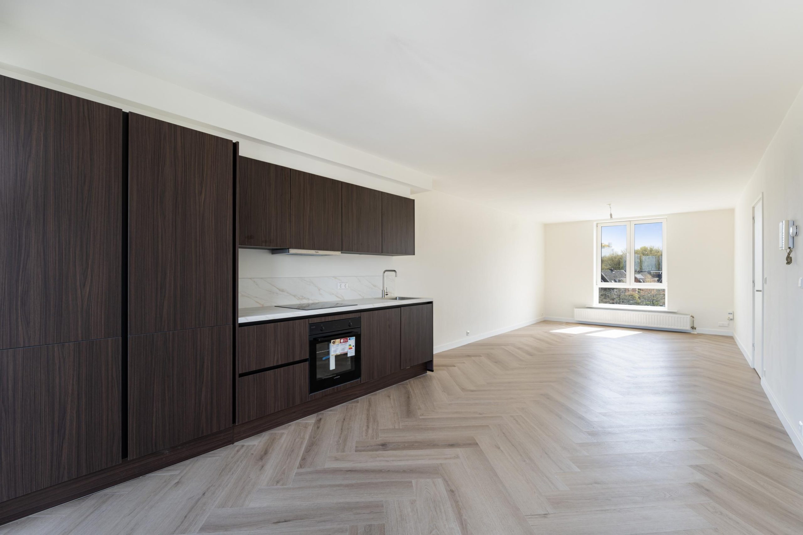 Direct stap je in de fijne woonkamer. Deze doorzonwoonkamer met open keuken heeft een lengte van maar liefst 10 meter. Door de grote raampartijen treedt er veel licht de woning binnen, wat zorgt voor een fijne, lichte sfeer. De prachtige open keuken is gelegen aan de achterzijde van de woning en beschikt over diverse soorten inbouwapparatuur, zoals een 4-pits inductieplaat met afzuigkap, oven, vaatwasser, koel-/vriescombinatie en voldoende opbergruimte. Middels openslaande deuren bereik je het balkon, waar van een mooi uitzicht genoten kan worden. Het zitgedeelte is gelegen aan de voorzijde van de woning en beschikt over voldoende ruimte om een fijne zitplek te creƫren. De 1e slaapkamer, gelegen aan de voorzijde, is via de hal te bereiken. Vanuit de hal heb je ook toegang tot het toilet en de badkamer. De mooie badkamer beschikt over een inloop(regen)douche en een wastafel met meubel. Aan de achterzijde bevindt zich de 2e slaapkamer en is multifunctioneel in te richten als bijvoorbeeld een werk-, kinder-, kasten- of slaapkamer.