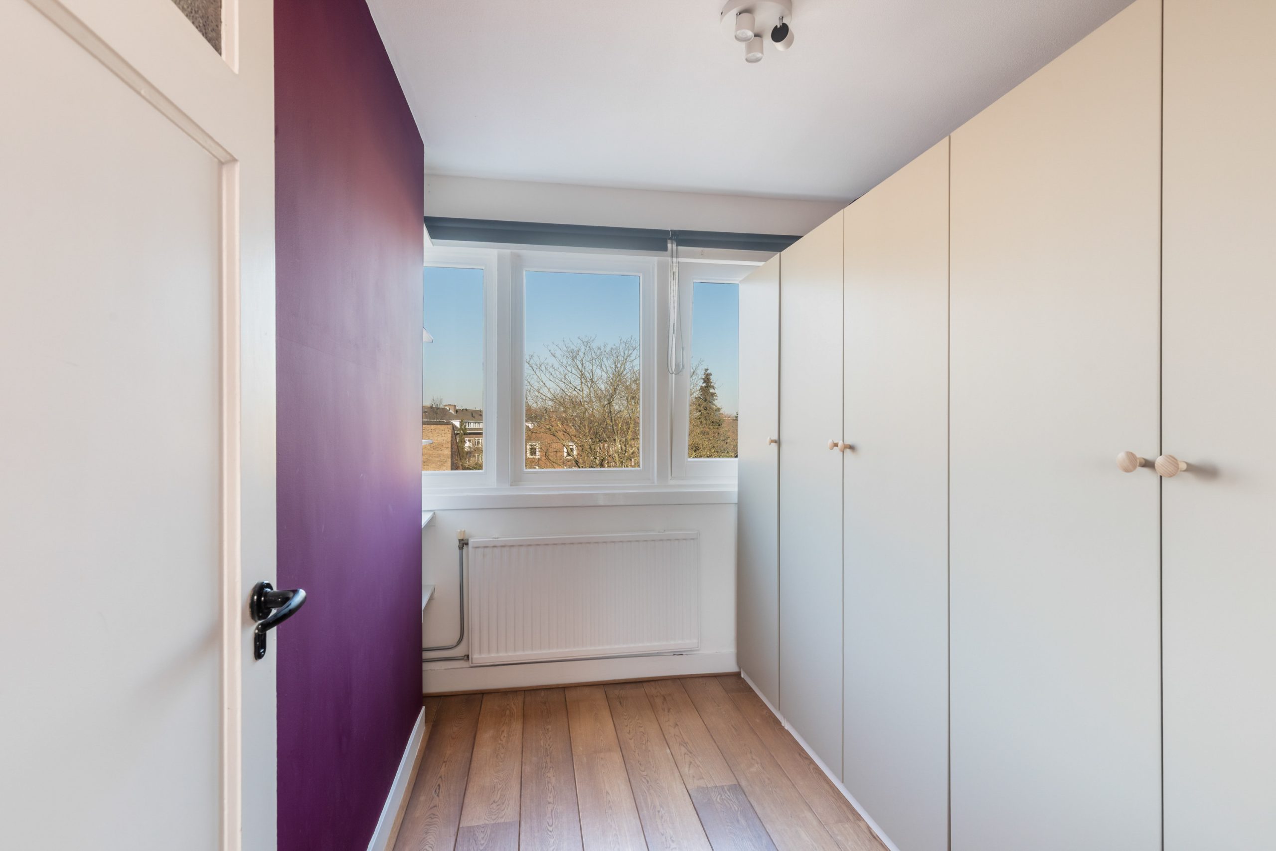 Overloop met vaste kast (met wasmachineaansluiting en CV-opstelling) en toegang tot de 2 slaapkamers. De master bedroom is ruim van formaat en biedt voldoende plek voor een tweepersoonsbed en een kast. Ook in de vaste kast kun je veel spullen opbergen. Vanuit deze kamer betreed je de moderne badkamer welke voorzien is van een ligbad, aparte douche en wastafel met meubel. Doordat het direct grenst aan de slaapkamer geeft het een zeer luxe gevoel. De 3e slaapkamers is tevens van goed formaat.