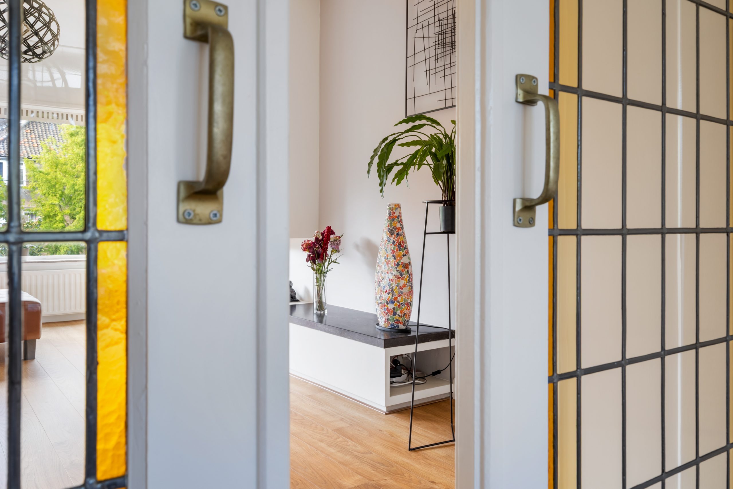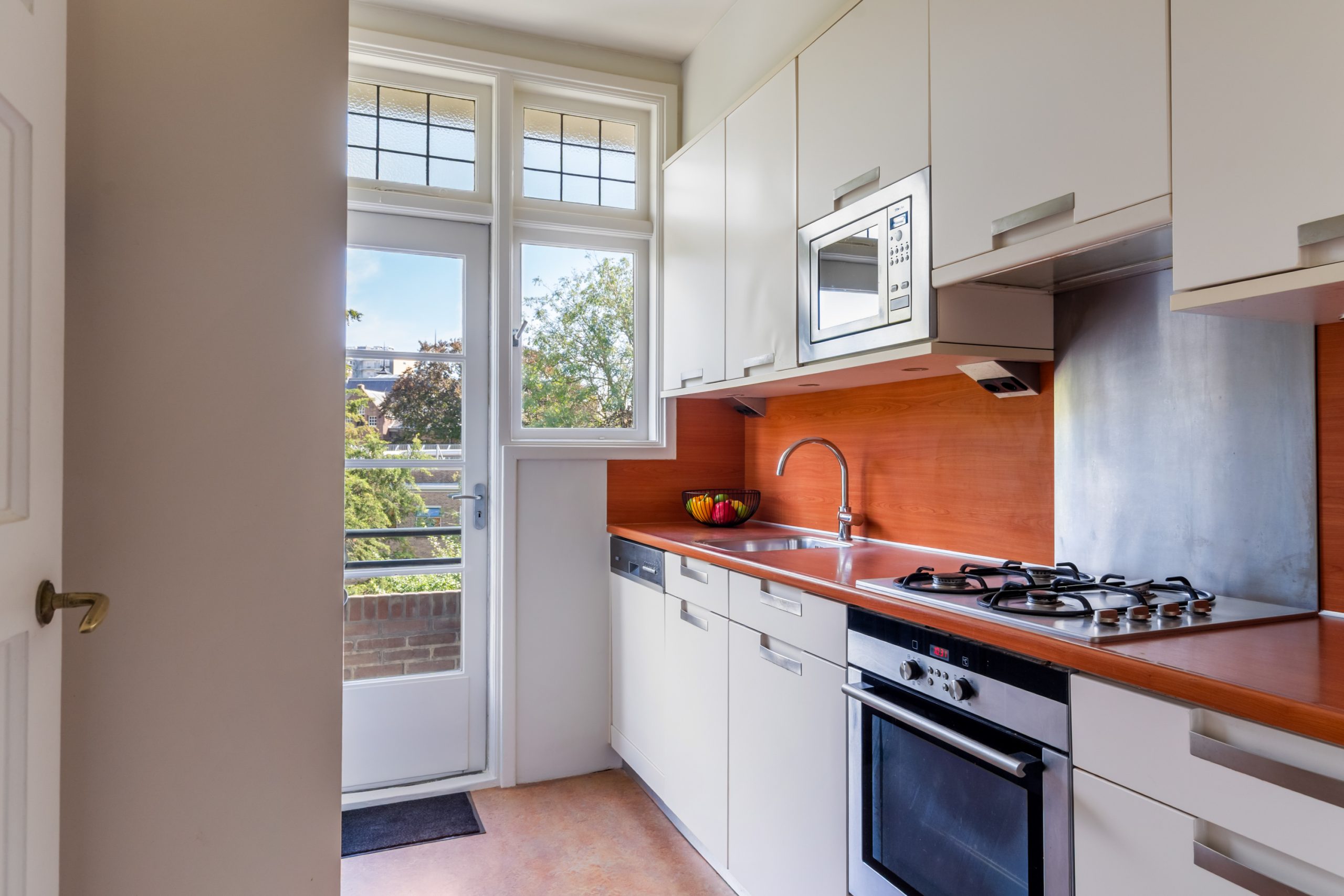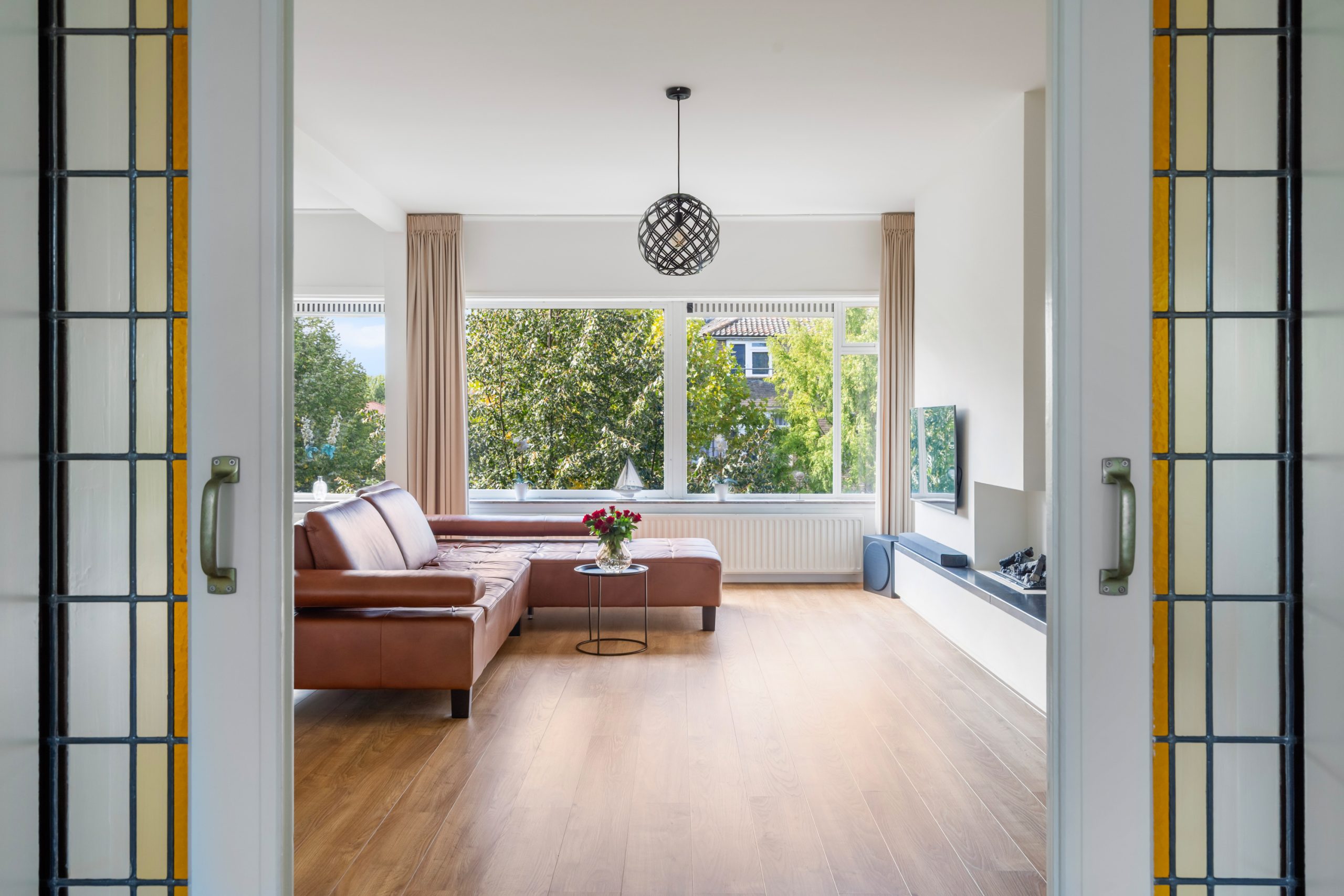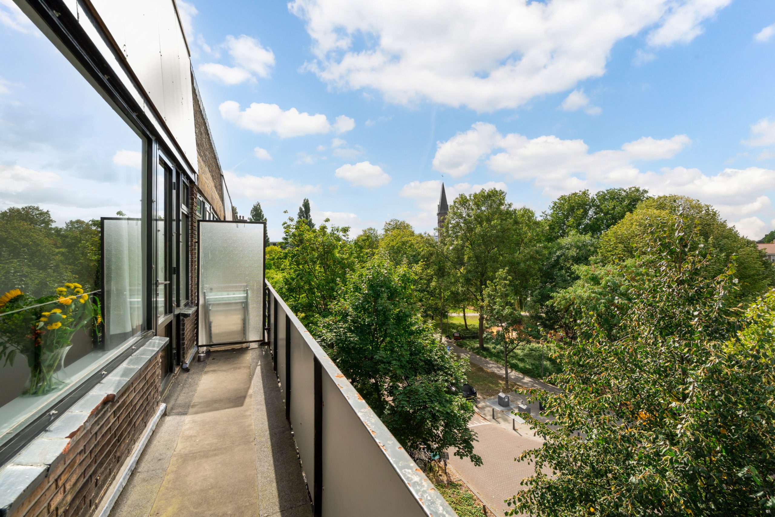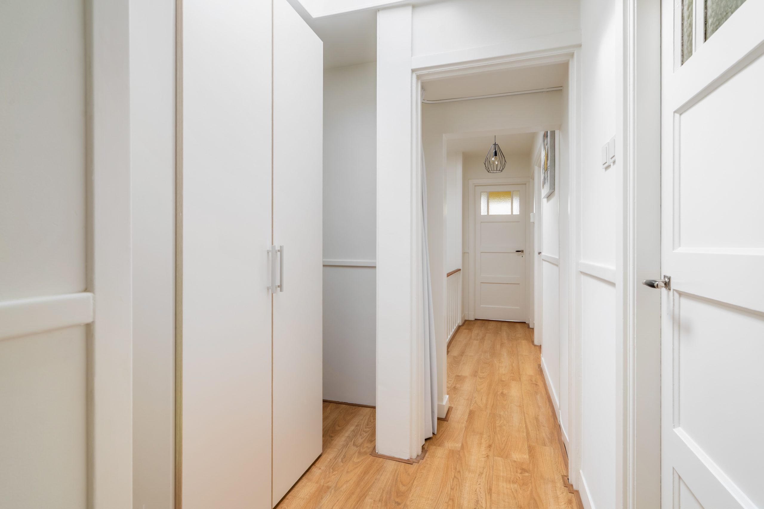 Ruime hal met separaat toilet en toegang tot alle vertrekken op deze verdieping. De originele jaren ’30-details, zoals glas-in-lood ramen, paneeldeuren en de en suite schuifdeuren, geven de woning een sfeervol karakter. De authentieke en brede woon-/eetkamer met vaste kasten heeft een lengte van maar liefst 12 meter en een hoogte van bijna 3 meter! De royale woonkamer is gelegen aan de voorzijde van de woning met een raampartij van maar liefst 6 meter. Het woongedeelte beschikt over een sfeervolle open haard, die zorgt voor een warme en uitnodigende ambiance. Dankzij de en suite schuifdeuren is de ruimte flexibel in te delen, met een mooie scheiding tussen het woon- en eetgedeelte. Dit is ideaal als je de openheid van de leefruimten wilt behouden, maar toch een visuele scheiding tussen de ruimtes wenst. Het eetgedeelte is gelegen aan de achterzijde. Via het eetgedeelte bereik je het balkon met openslaande deuren, gelegen op het zonnige oosten. Vanaf de lente vergroot je de woonruimte met een buitenruimte. De keuken beschikt over diverse inbouwapparatuur zoals een 4-pits gasfornuis, oven, magnetron, vaatwasser en een koelkast. Middels een deur in de keuken bereik je het tweede balkon, gelegen op het oosten. Hier kun je in de ochtendzon heerlijk genieten van een kop koffie. Via een trap in het woongedeelte bereik je de derde verdieping.
