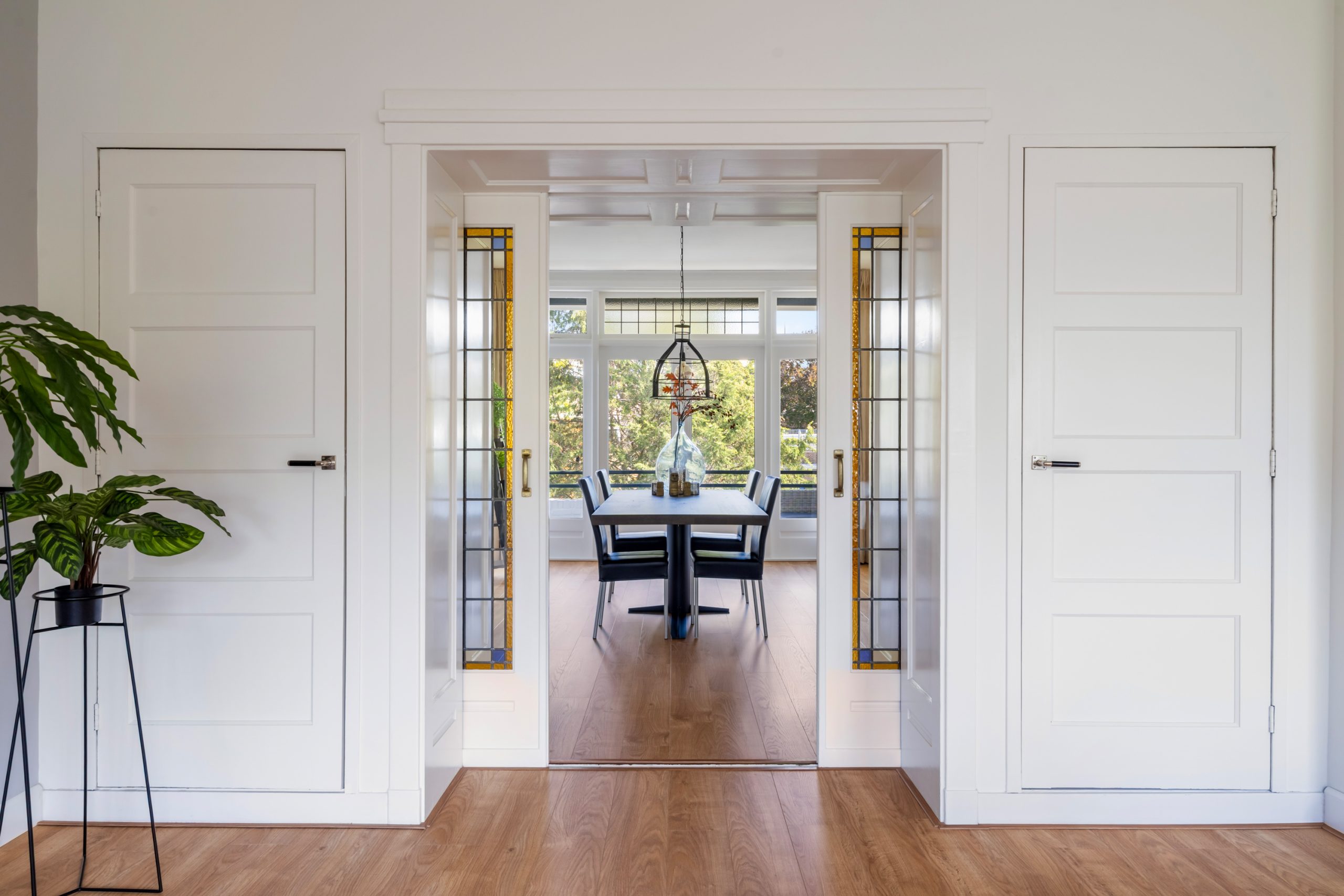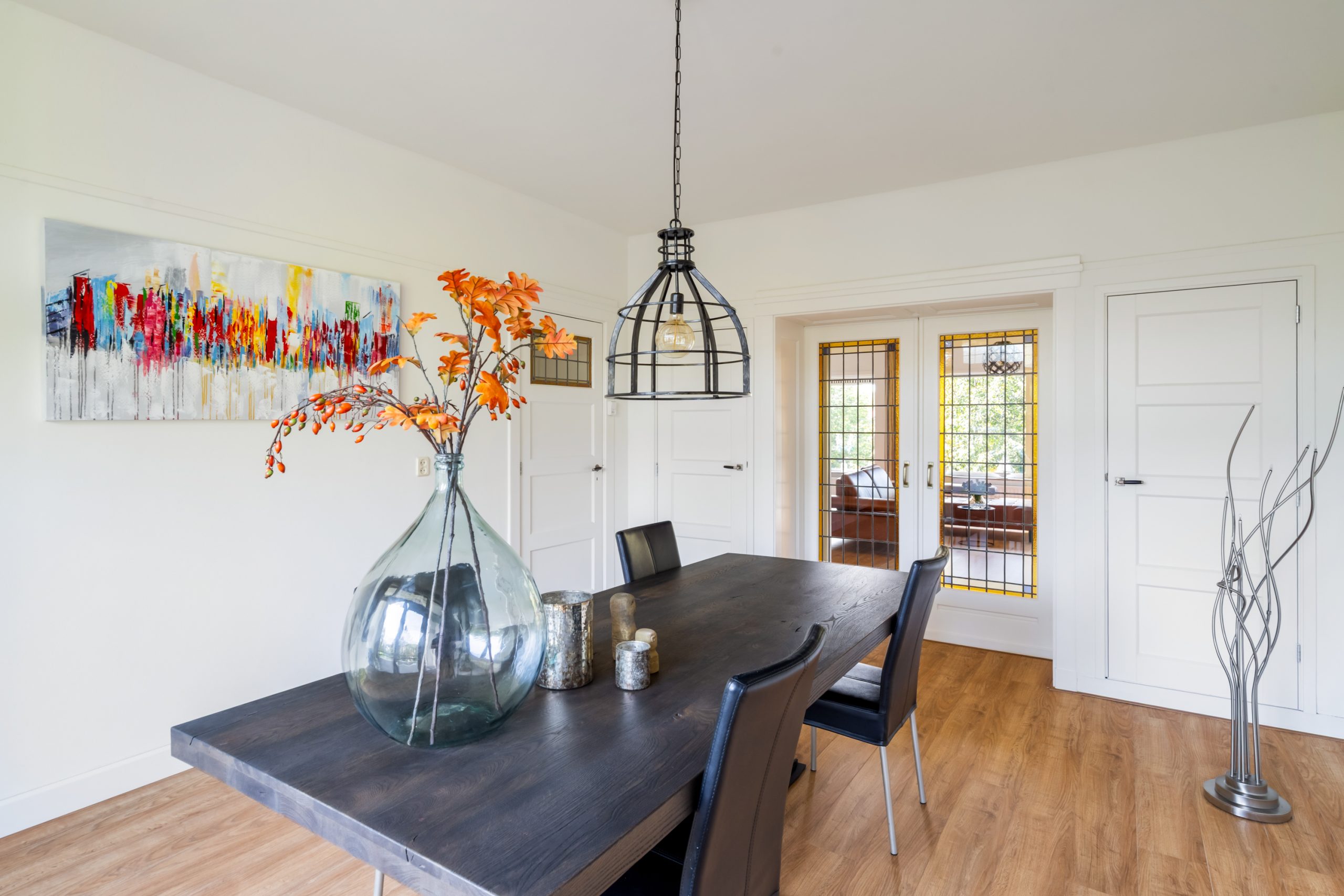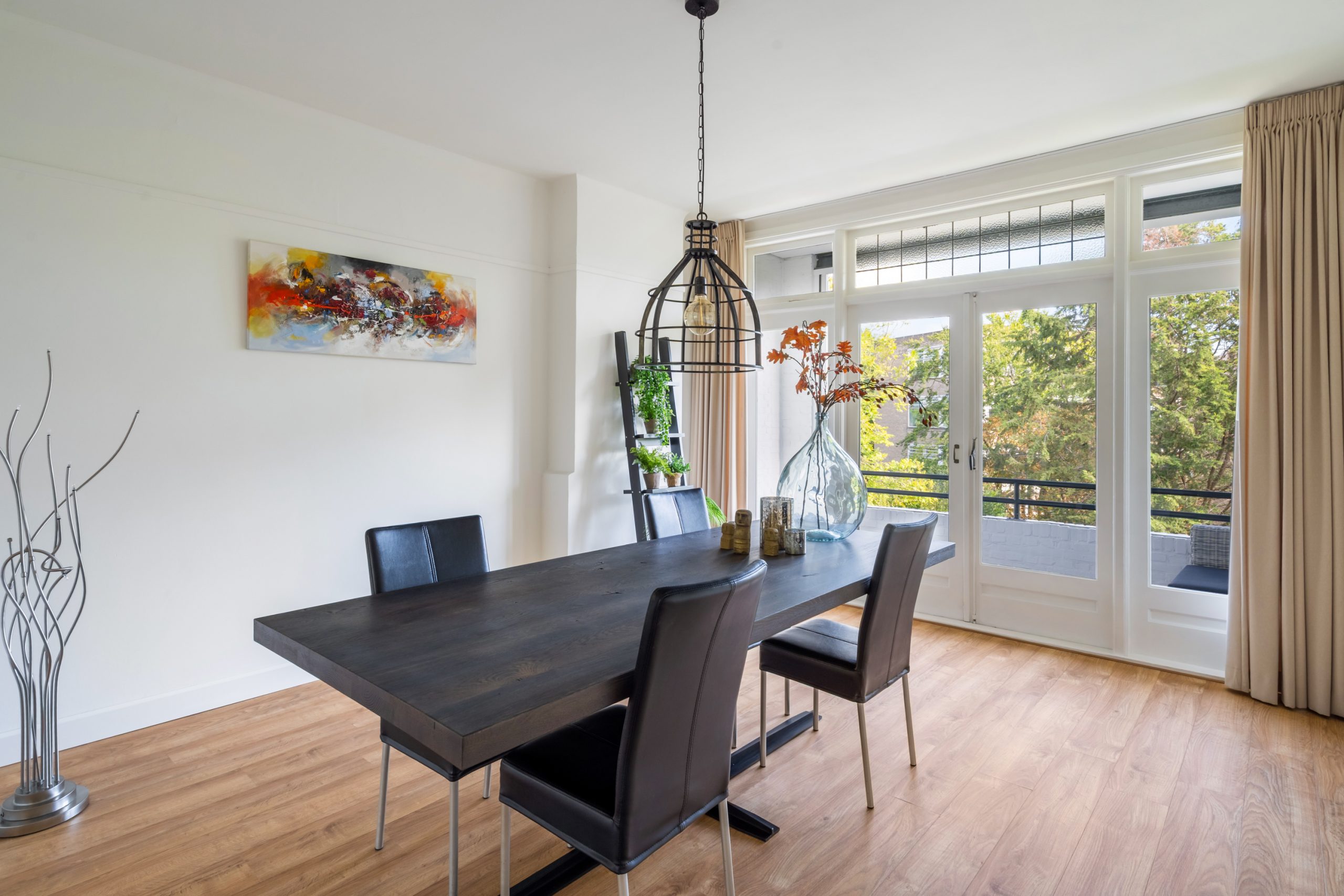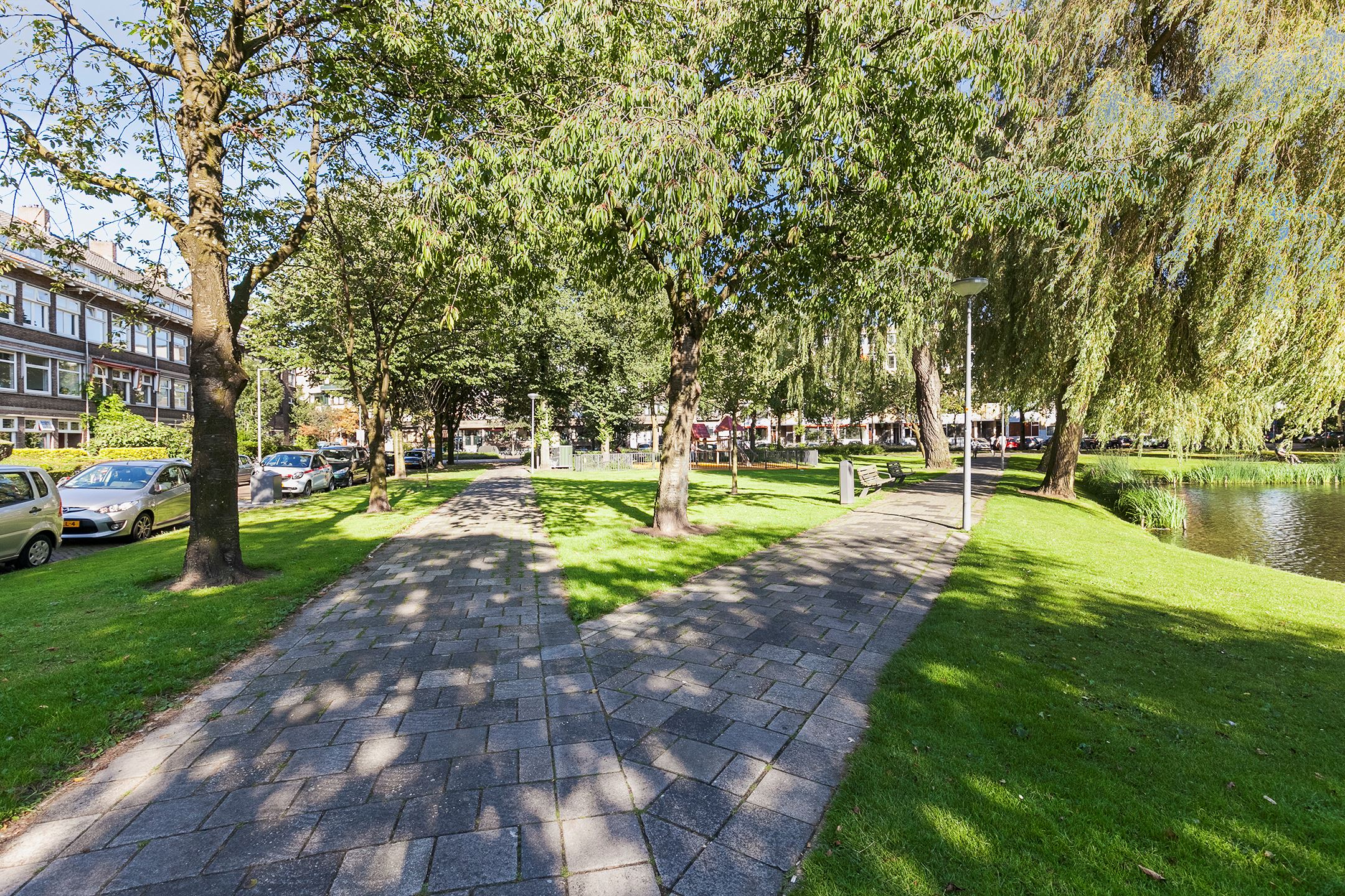 Ruime hal met separaat toilet en toegang tot alle vertrekken op deze verdieping. De originele jaren ’30-details, zoals glas-in-lood ramen, paneeldeuren en de en suite schuifdeuren, geven de woning een sfeervol karakter. De authentieke en brede woon-/eetkamer met vaste kasten heeft een lengte van maar liefst 12 meter en een hoogte van bijna 3 meter! De royale woonkamer is gelegen aan de voorzijde van de woning met een raampartij van maar liefst 6 meter. Het woongedeelte beschikt over een sfeervolle open haard, die zorgt voor een warme en uitnodigende ambiance. Dankzij de en suite schuifdeuren is de ruimte flexibel in te delen, met een mooie scheiding tussen het woon- en eetgedeelte. Dit is ideaal als je de openheid van de leefruimten wilt behouden, maar toch een visuele scheiding tussen de ruimtes wenst. Het eetgedeelte is gelegen aan de achterzijde. Via het eetgedeelte bereik je het balkon met openslaande deuren, gelegen op het zonnige oosten. Vanaf de lente vergroot je de woonruimte met een buitenruimte. De keuken beschikt over diverse inbouwapparatuur zoals een 4-pits gasfornuis, oven, magnetron, vaatwasser en een koelkast. Middels een deur in de keuken bereik je het tweede balkon, gelegen op het oosten. Hier kun je in de ochtendzon heerlijk genieten van een kop koffie. Via een trap in het woongedeelte bereik je de derde verdieping.