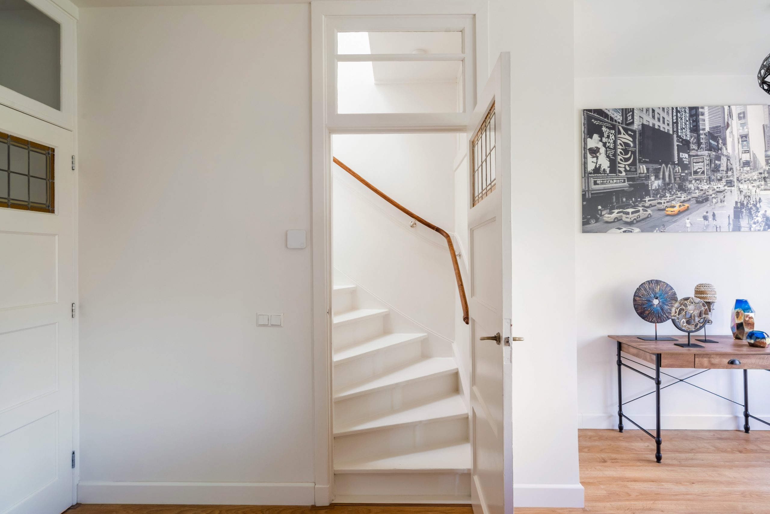 Open portiek met trapopgang naar de 2e verdieping.
