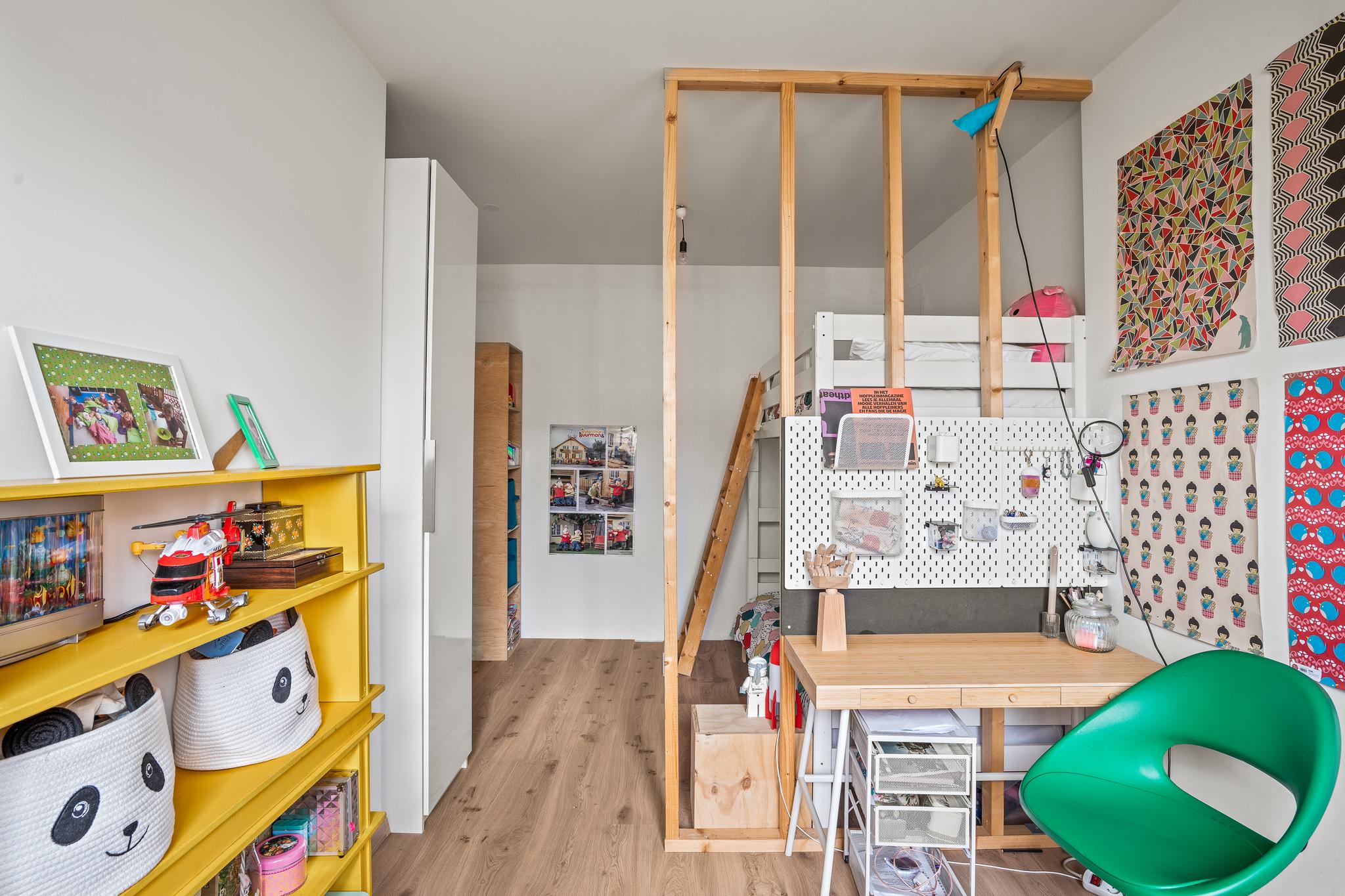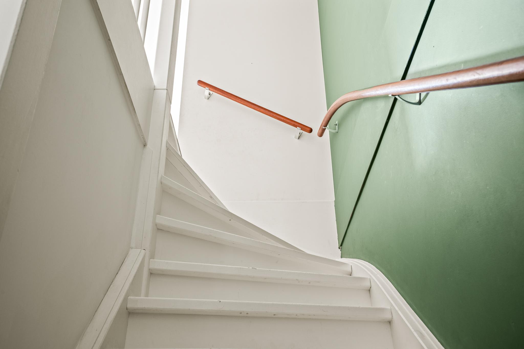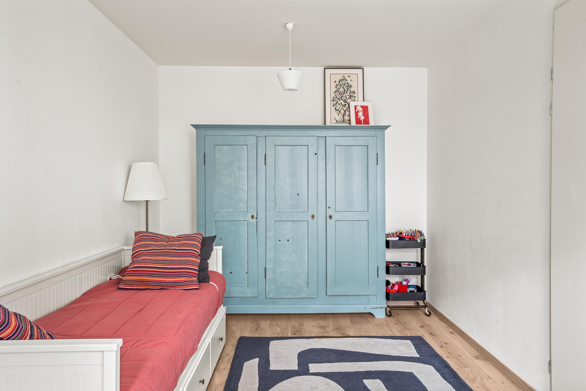 Ruime entree/hal met vaste kast, meterkast, toilet en toegang tot de vertrekken op deze verdieping. De 1e slaapkamer is momenteel in gebruik als werkkamer, maar is dankzij de praktische indeling ook ideaal als logeer- of extra slaapkamer. Aan de achterzijde van de woning is er een handige berging, voorzien van een wasmachineaansluiting.