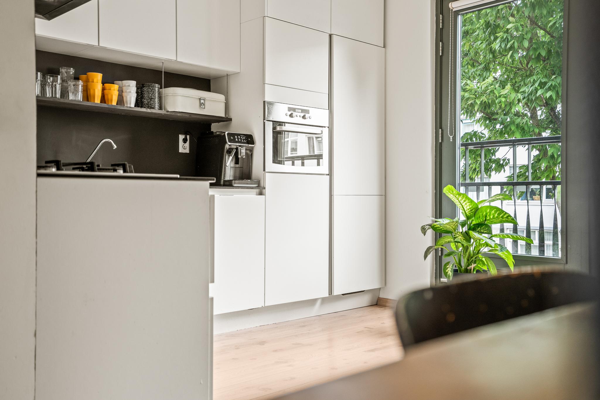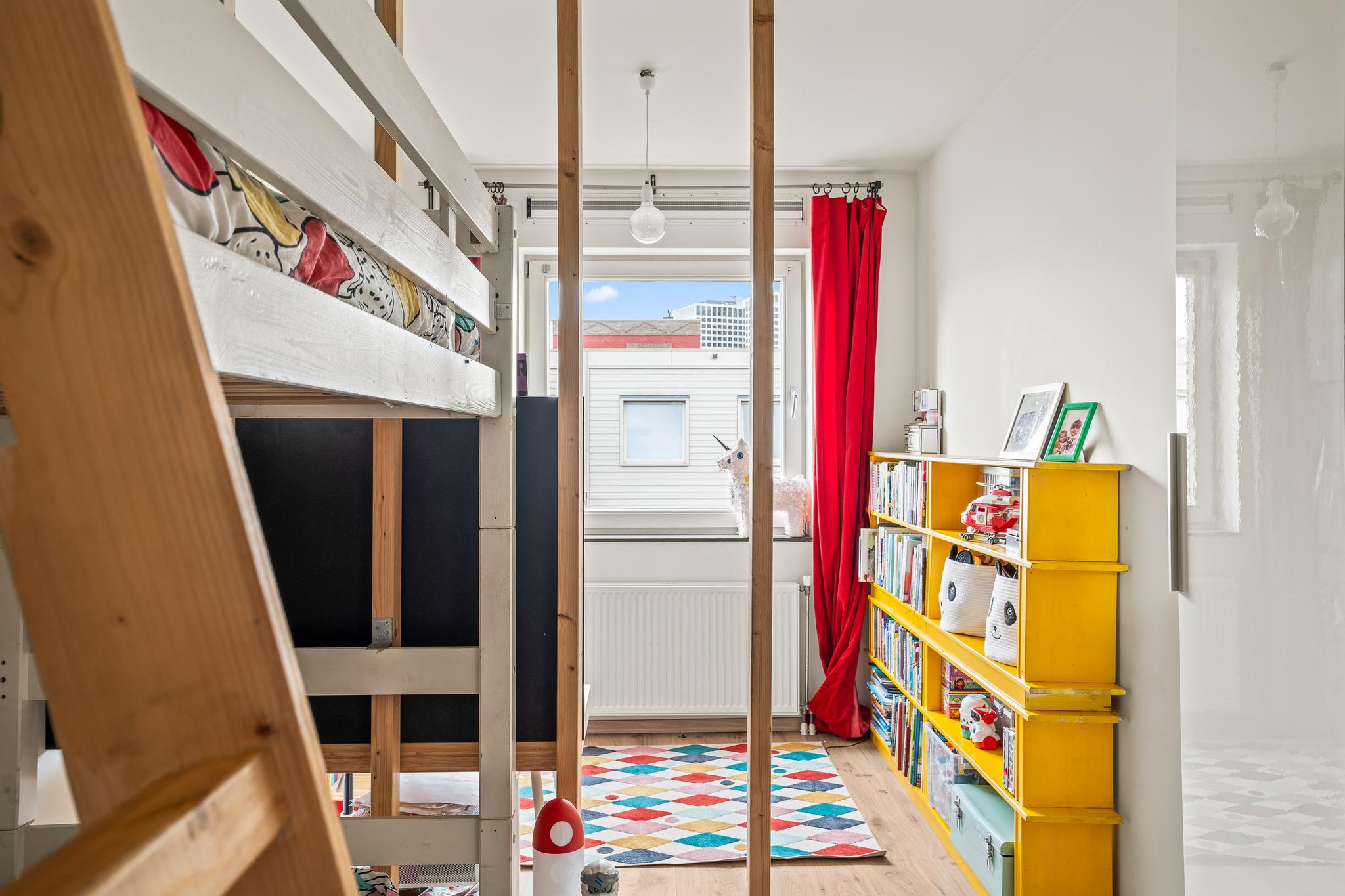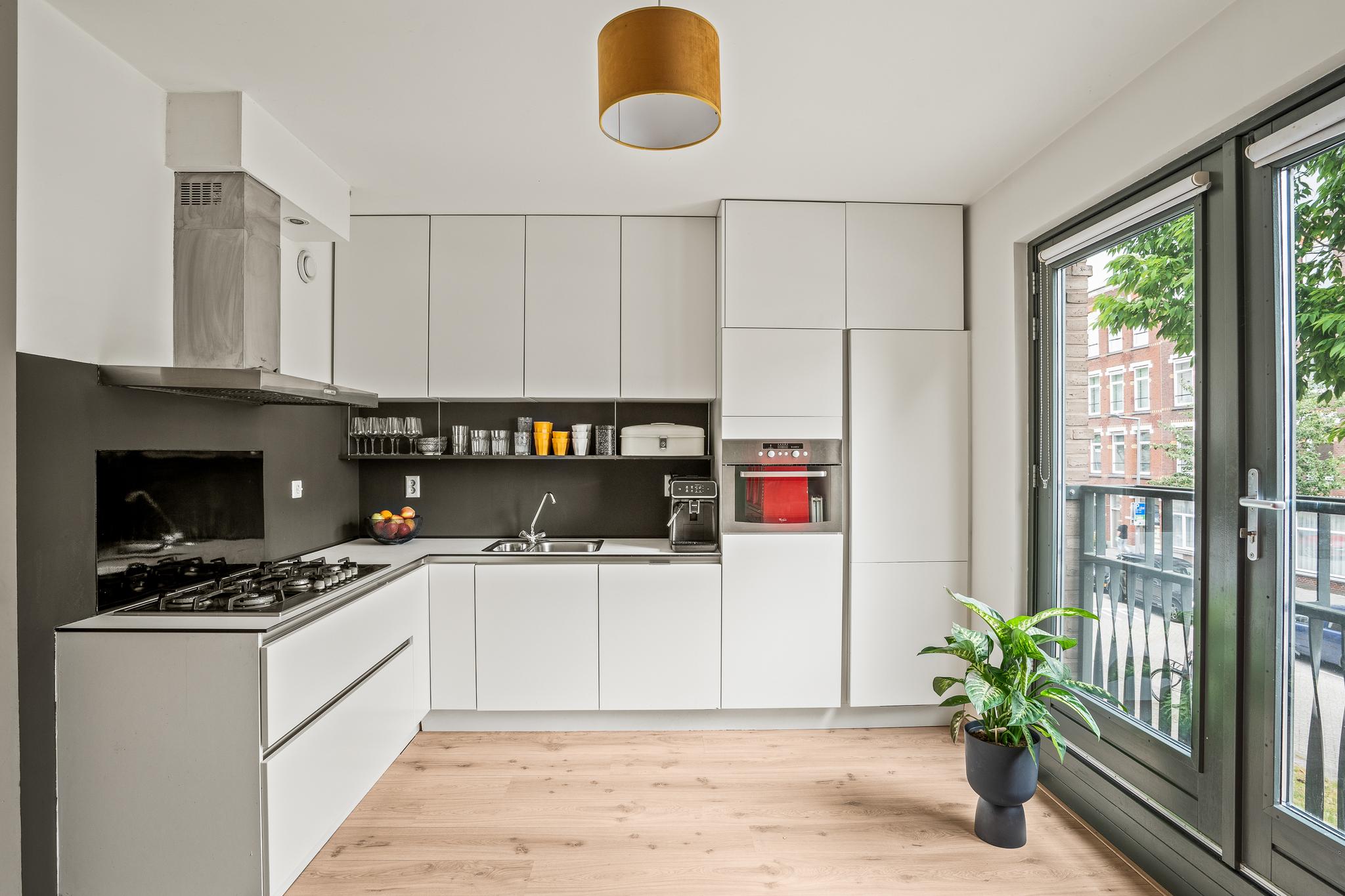 De woon-/eetkamer met open keuken is bijzonder royaal en heeft een lengte van maar liefst ca. 11 meter! Dankzij de grote raampartijen aan beide zijden treedt er veel natuurlijk licht de woning binnen, wat zorgt voor een fijne en lichte sfeer. Het woongedeelte bevindt zich aan de achterzijde van de woning. Deze riante ruimte biedt volop mogelijkheden voor het creëren van een sfeervolle en comfortabele zithoek. Het eetgedeelte aan de voorzijde van de woning vormt samen met de open keuken een heerlijke vrije leefruimte. Het is de ideale plek om in contact te blijven met je gezelschap, terwijl je geniet van de open en gezellige sfeer. De open keuken beschikt over diverse inbouwapparatuur zoals een 6-pits gasfornuis met afzuigkap, vaatwasser, oven en een koel-/vriescombinatie. Door de openslaande deuren naar het Franse balkon, kun je een mooie verbinding creëren tussen het binnen- en buitenleven. Via de woonkamer bereik je het heerlijke terras, gelegen op het zonnige westen. Hier kun je de gehele dag genieten van de zon, tot wel in de late middag! Dit terras van 36 m2 biedt een fijne plek om tot rust te komen en lekker buiten te zijn. Door een trap gelegen in het woongedeelte bereik je de 3e verdieping.
