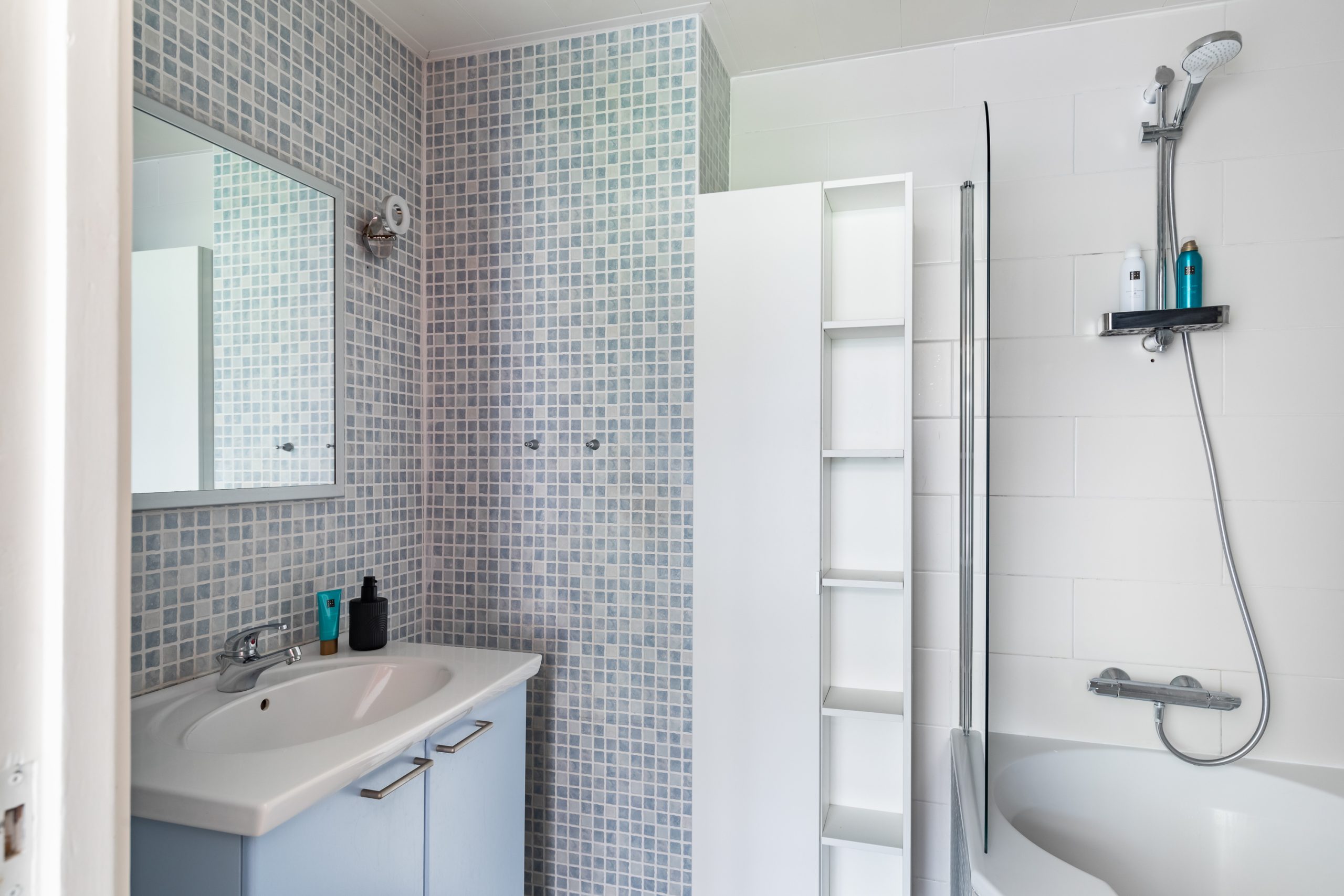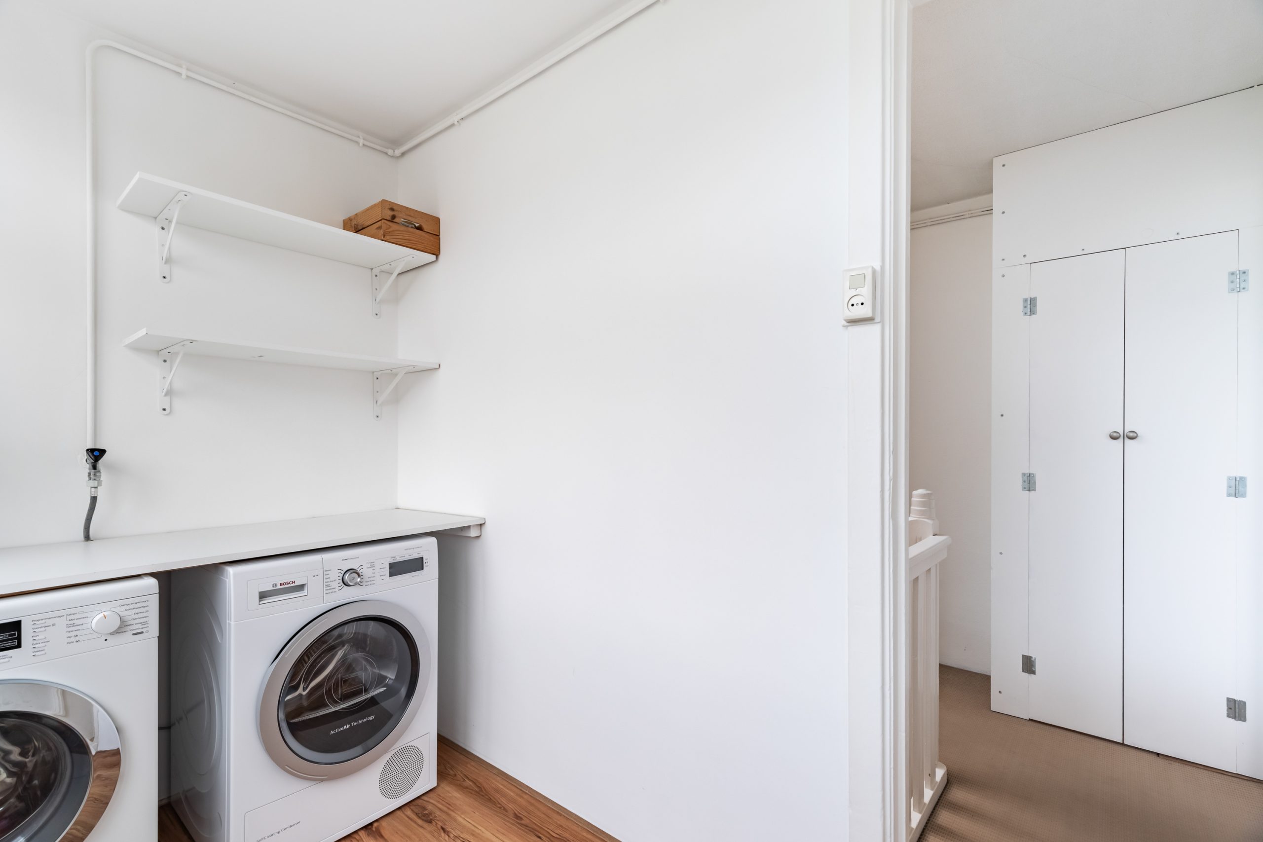 Overloop met met CV-opstelling, vaste kast en wasruimte, hier is voldoende plek voor een wasmachine een droger. De 2e slaapkamer is tevens ruim van formaat. Ook deze kamer beschikt over een inbouwkast. Over de gehele breedte van de verdieping is het 2e balkon gelegen (oosten), waar je heerlijk van de zon en het uitzicht kunt genieten. Het is mogelijk om de vaste kast om te vormen tot tot een wasruimte, waardoor er een kamer vrij komt die multifunctioneel is in te delen als werk- of slaapkamer.
