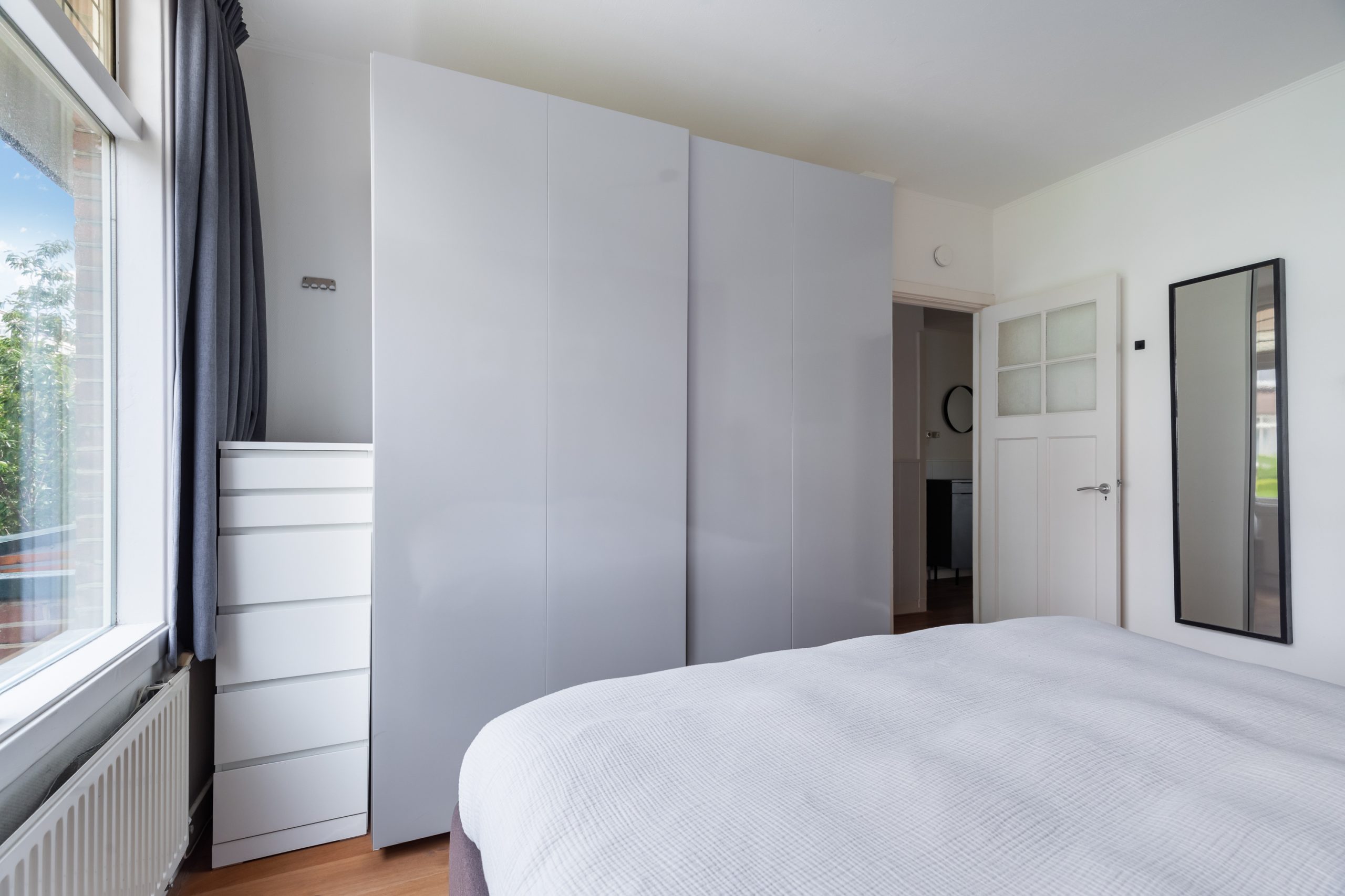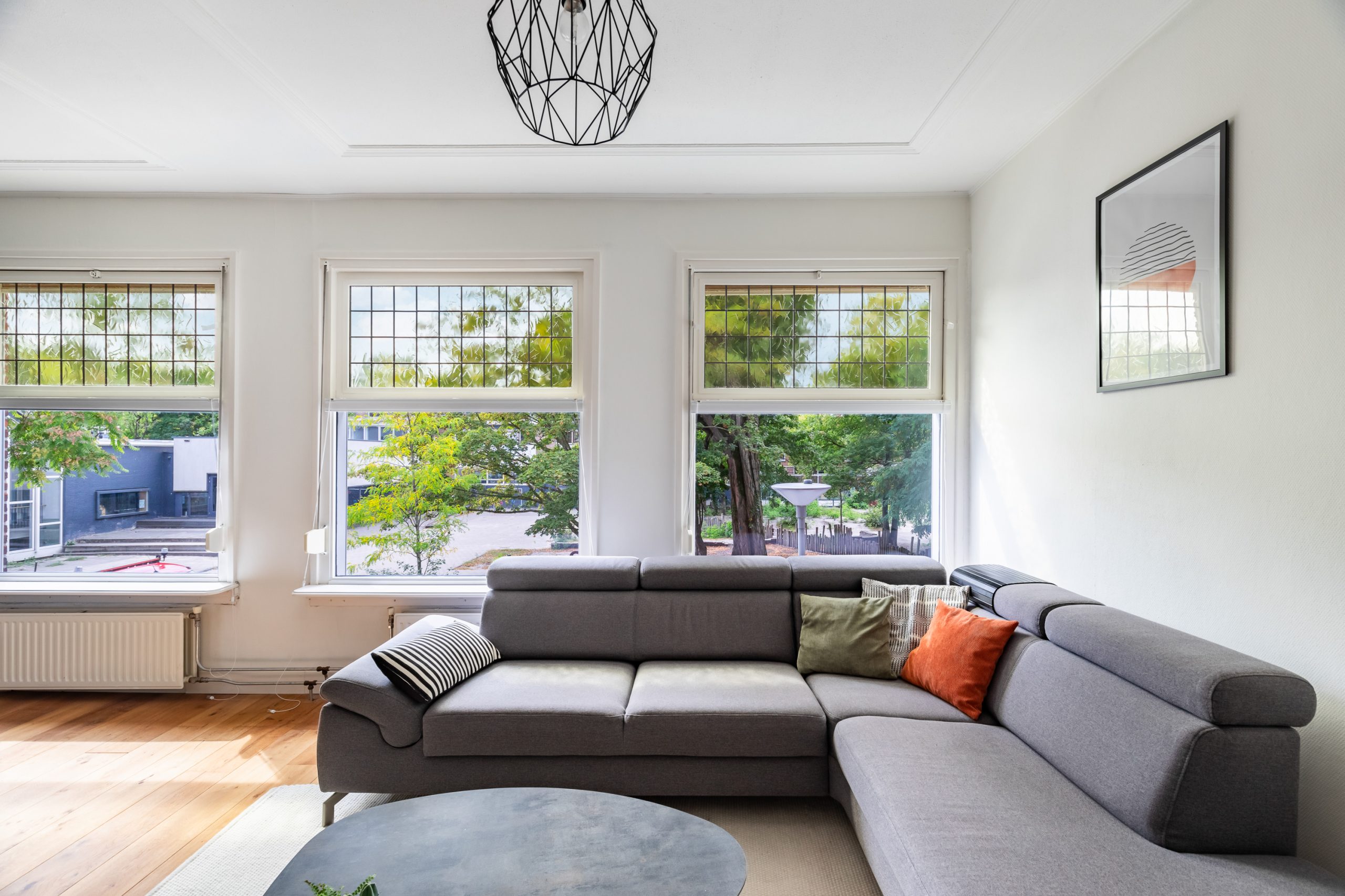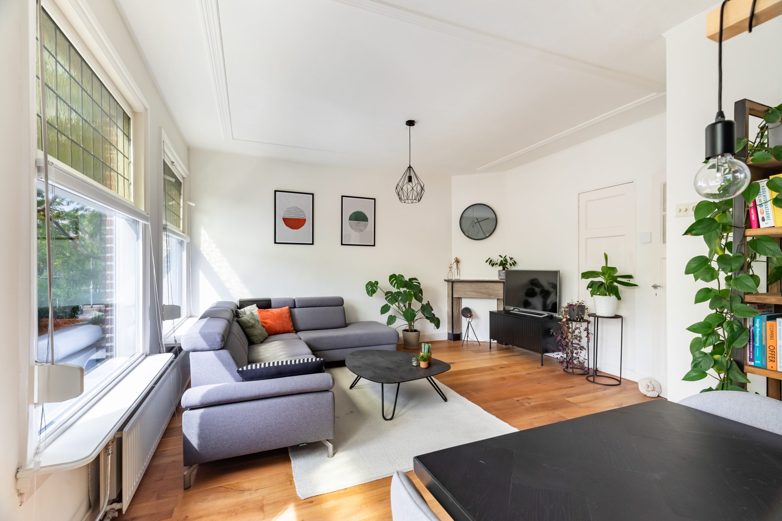 Hal/entree met toilet en een vaste kast. Direct word je overspoeld door talloze jaren ’30 details zoals het prachtige glas-in-lood, de plafondlijsten, paneeldeuren en originele schouwen. De woonkamer is een lichte kamer door de grote raampartijen, waardoor er een natuurlijke lichtinval de woning binnentreedt. Er is voldoende plek voor een zit- en eetgedeelte, vanwaar je uitkijkt over de boompartijen aan de voorzijde. Er zijn 2 inbouwkasten, erg handig voor extra opbergruimte. De 1e slaapkamer is gelegen aan de achterzijde en is erg ruim en licht. Vanuit deze kamer bereik je de badkamer welke beschikt over een ligbad met douche en wastafel met meubel. De moderne keuken (achterzijde) beschikt over een 4-pits gasfornuis, afzuigkap, oven, vaatwasser en koel-/vriescombinatie. Vanuit de keuken is er toegang tot het balkon, gelegen op het oosten. Hier kun je heerlijk met een kop koffie genieten van de ochtendzon.