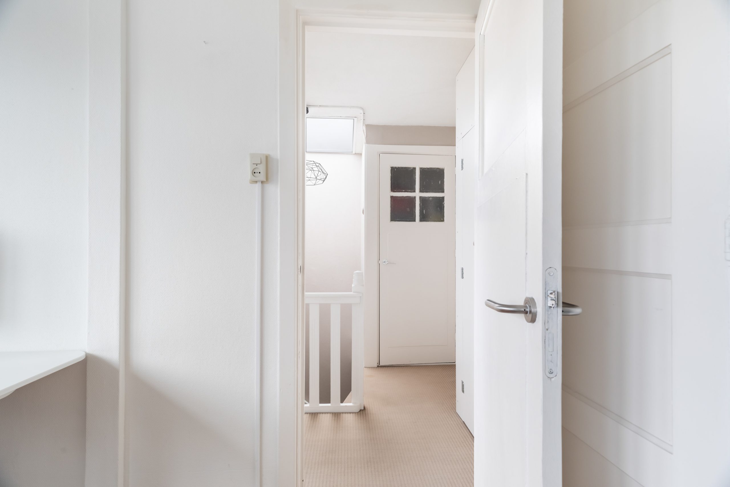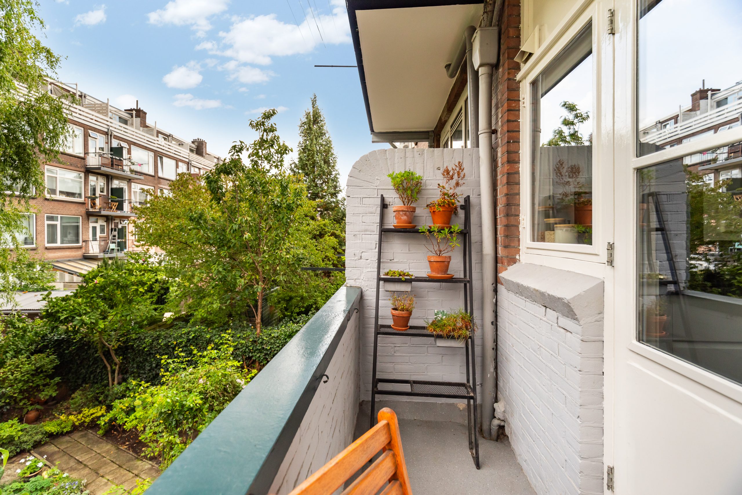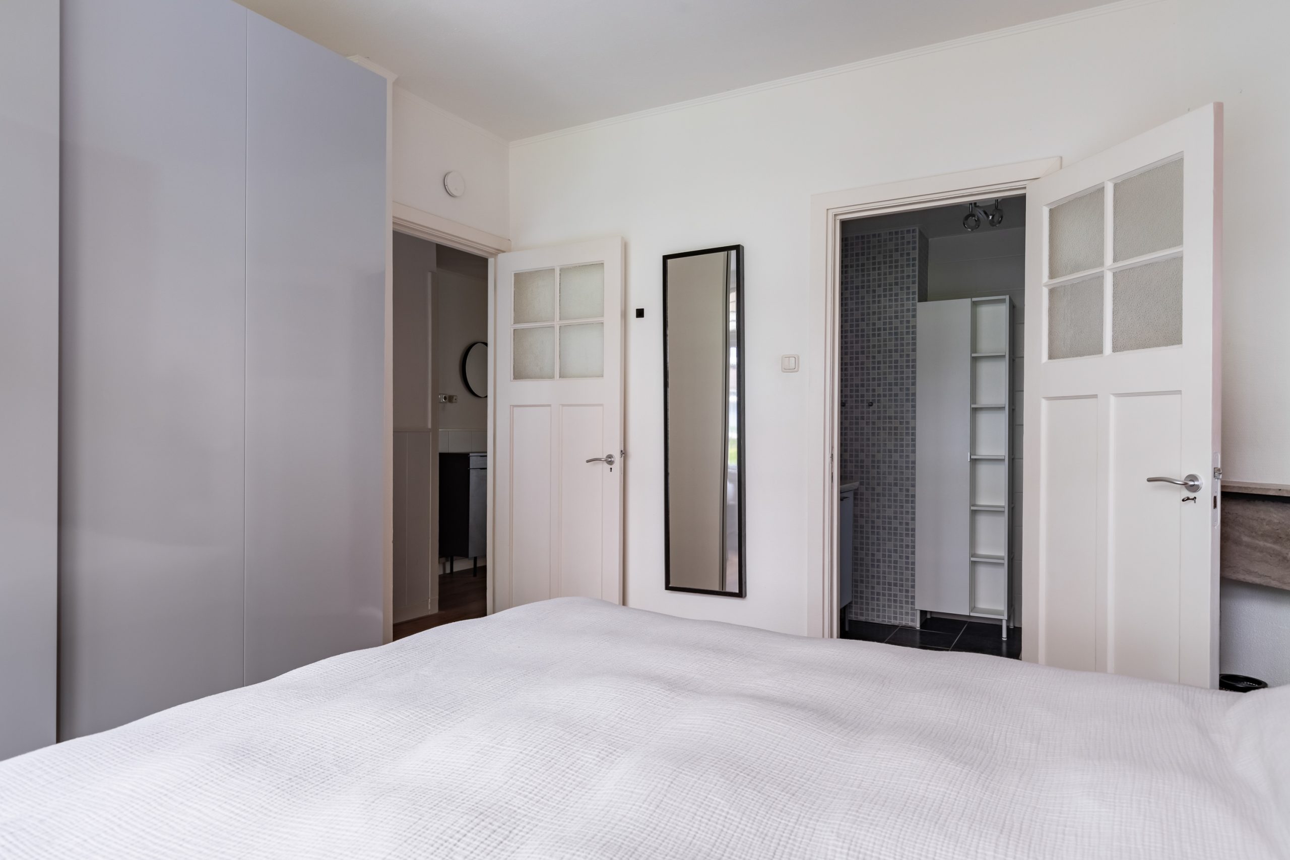 Hal/entree met toilet en een vaste kast. Direct word je overspoeld door talloze jaren ’30 details zoals het prachtige glas-in-lood, de plafondlijsten, paneeldeuren en originele schouwen. De woonkamer is een lichte kamer door de grote raampartijen, waardoor er een natuurlijke lichtinval de woning binnentreedt. Er is voldoende plek voor een zit- en eetgedeelte, vanwaar je uitkijkt over de boompartijen aan de voorzijde. Er zijn 2 inbouwkasten, erg handig voor extra opbergruimte. De 1e slaapkamer is gelegen aan de achterzijde en is erg ruim en licht. Vanuit deze kamer bereik je de badkamer welke beschikt over een ligbad met douche en wastafel met meubel. De moderne keuken (achterzijde) beschikt over een 4-pits gasfornuis, afzuigkap, oven, vaatwasser en koel-/vriescombinatie. Vanuit de keuken is er toegang tot het balkon, gelegen op het oosten. Hier kun je heerlijk met een kop koffie genieten van de ochtendzon.