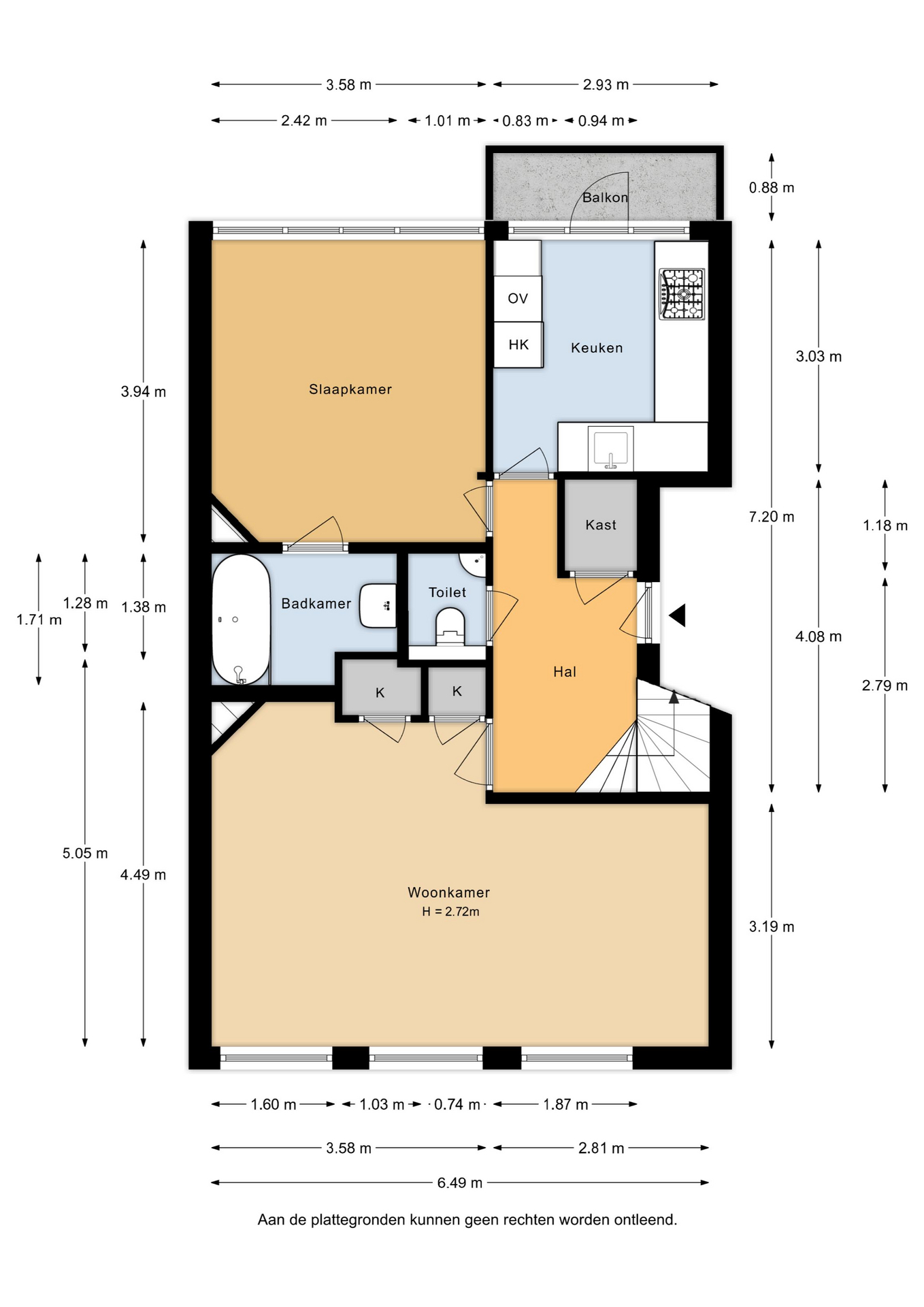 Afgesloten entree met trapopgang naar de 1e verdieping.