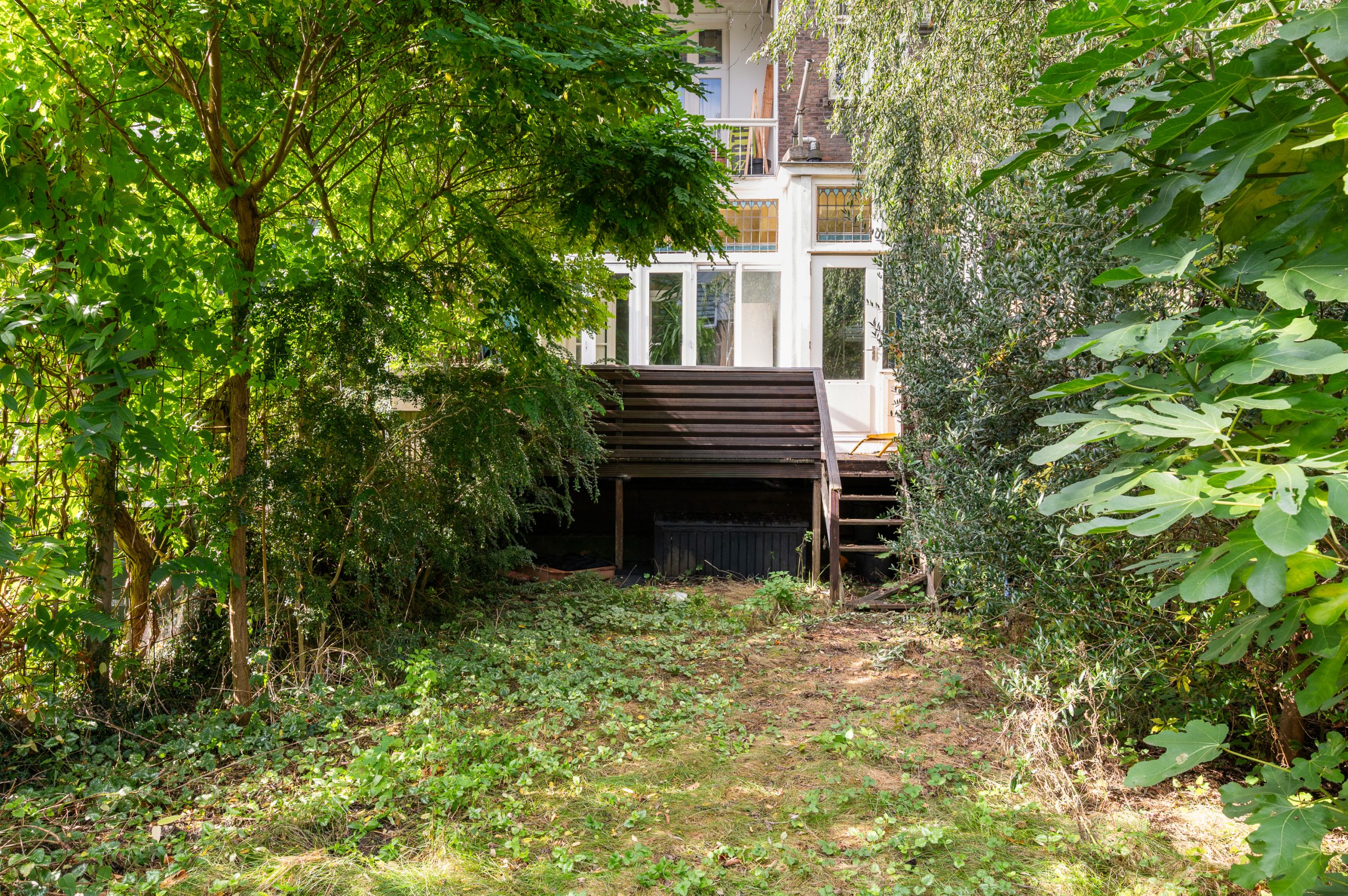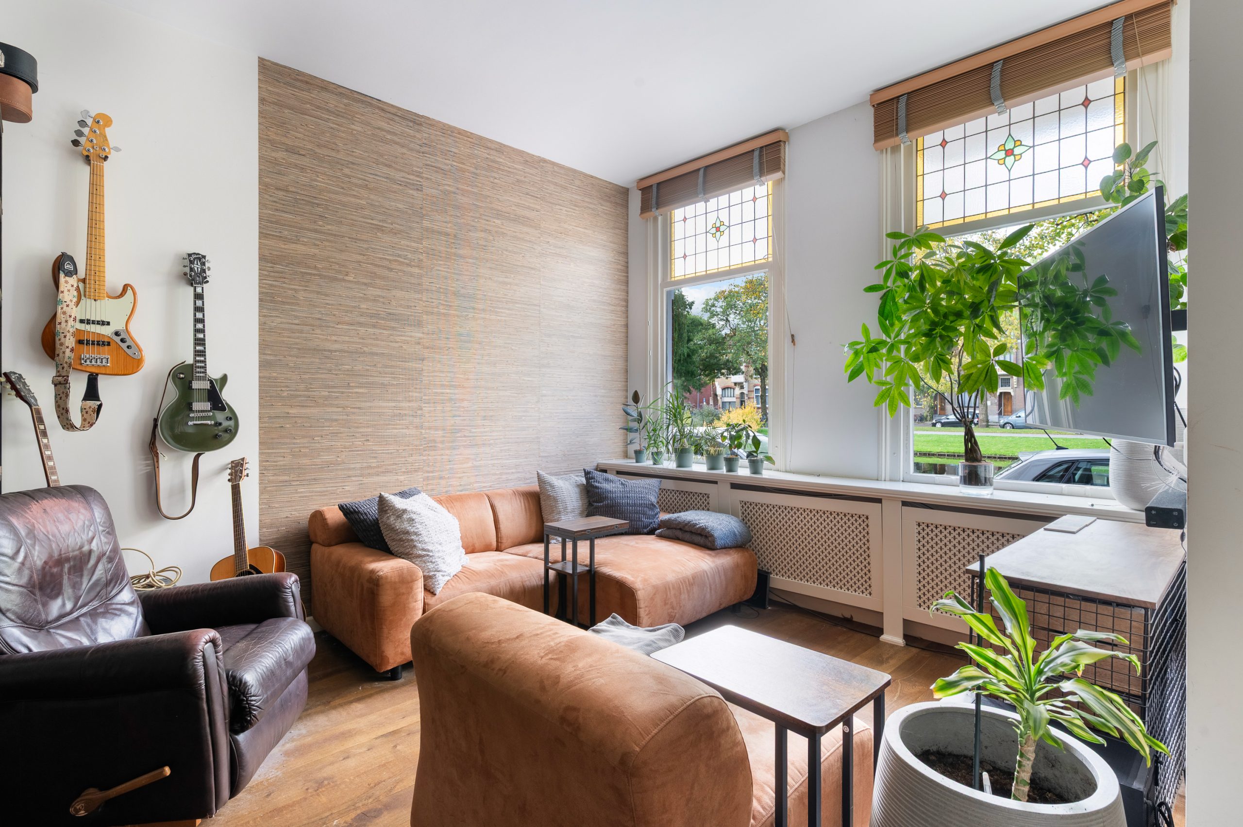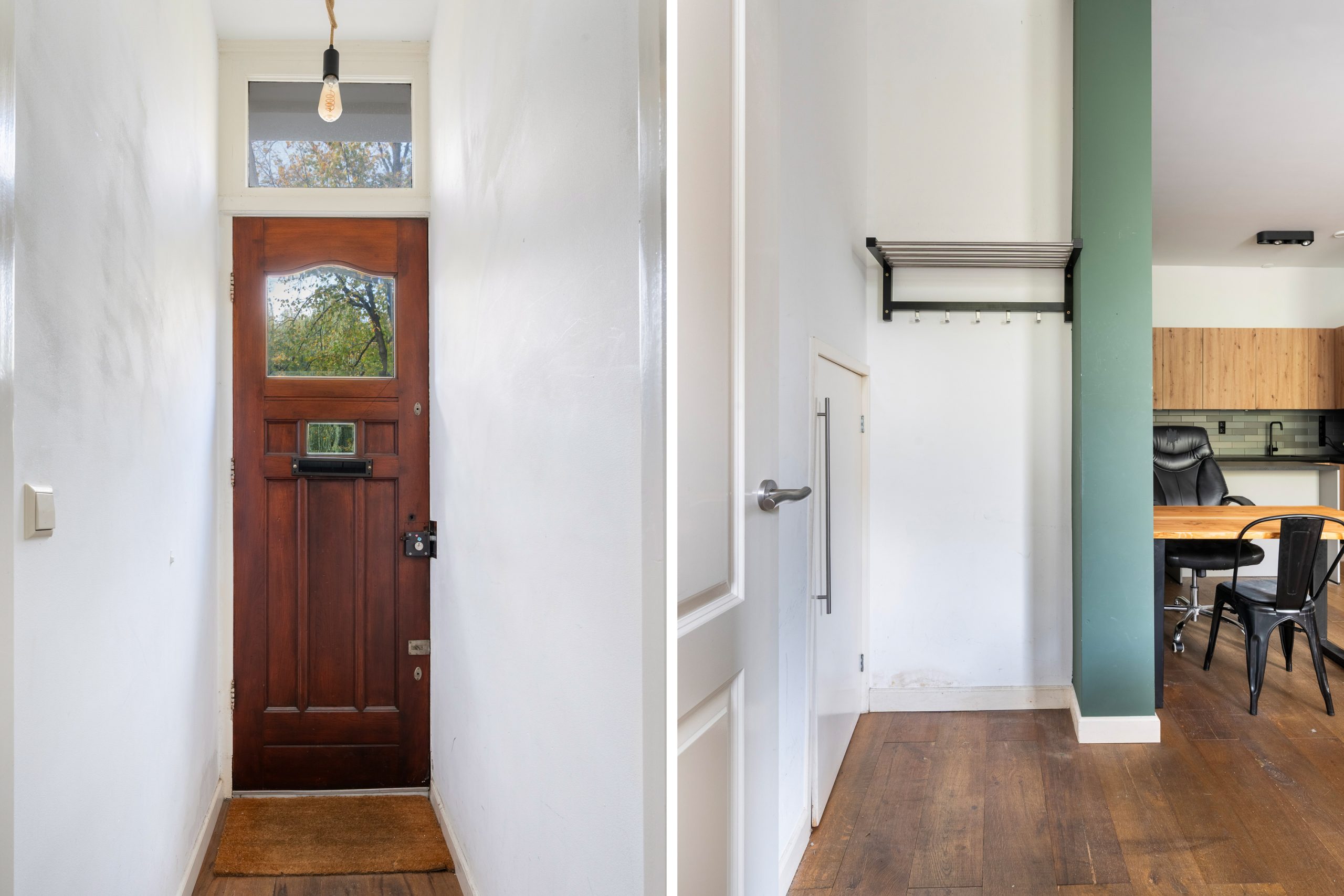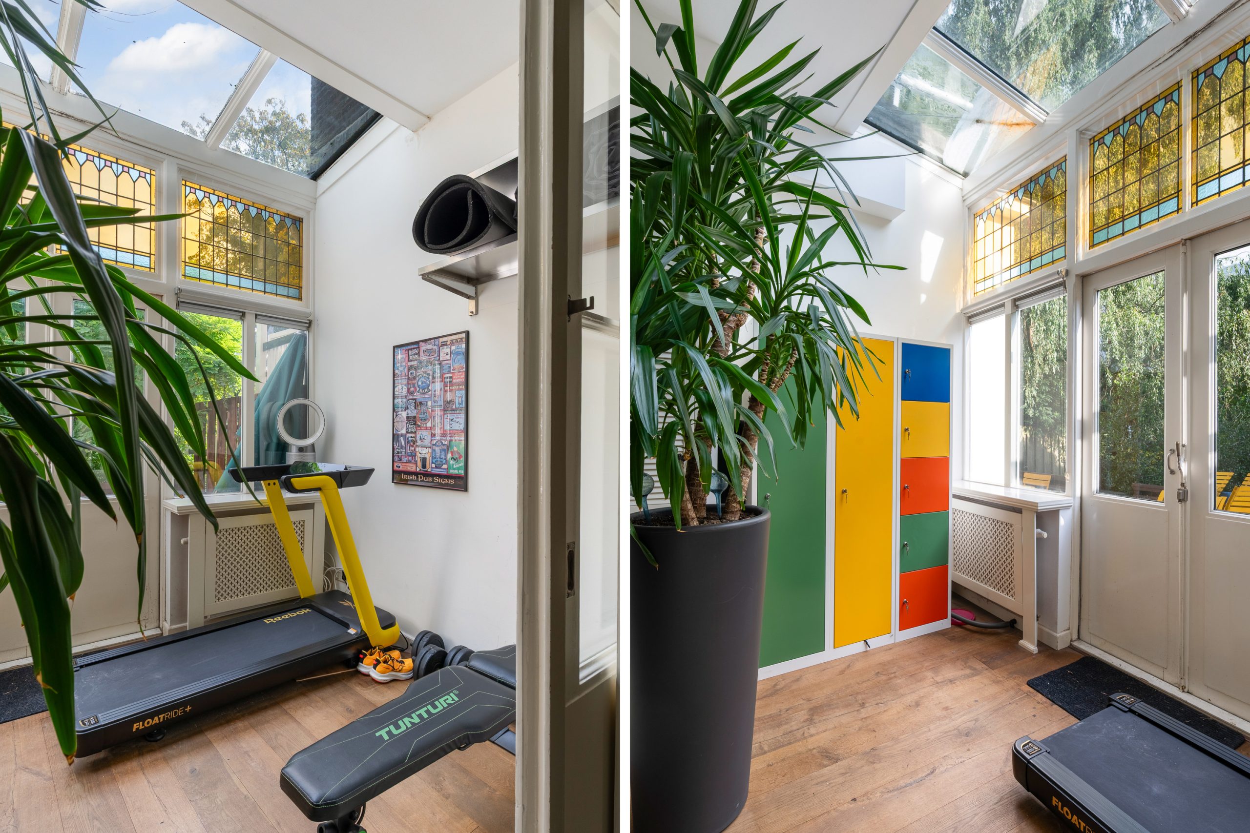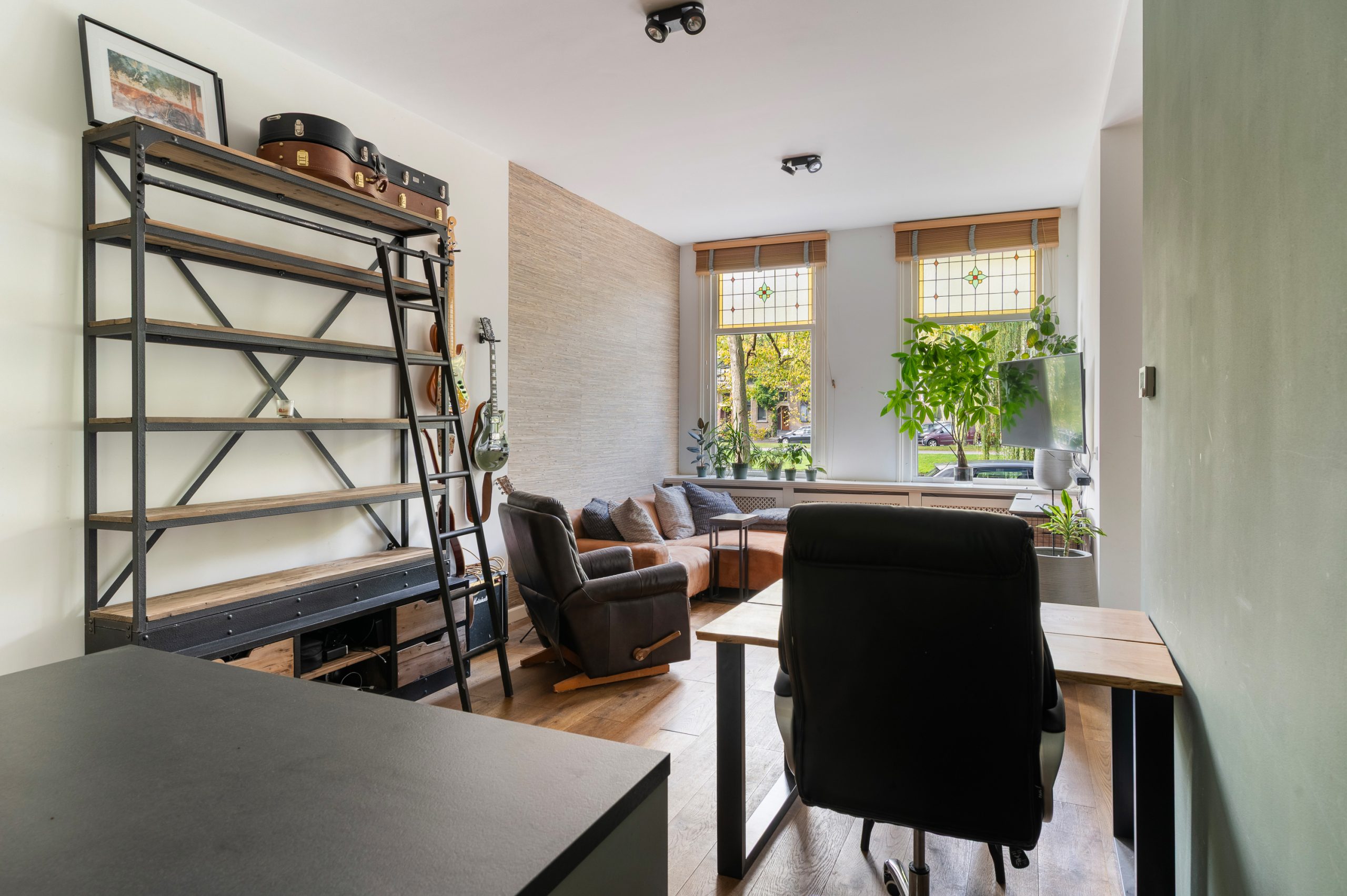 Entree met tochtportaal, vaste kast en toegang tot de woonkamer. Aan de voorzijde van de woning bevindt zich de sfeervolle woonkamer, die met een plafondhoogte van maar liefst 3,16 meter een bijzonder ruimtelijk gevoel geeft. Dankzij de grote raampartijen met karakteristiek glas-in-lood treedt er veel natuurlijk licht naar binnen wat zorgt voor een ruime, lichte sfeer. Het stijlvolle kookeiland met bar is het hart van deze open woonkeuken, waar koken en gezelligheid perfect samenkomen. Het is de ideale plek om lekker in contact te blijven met je gezelschap, terwijl je geniet van de open, gezellige sfeer. De keuken beschikt over diverse soorten inbouwapparatuur zoals een 4-pits inductie kookplaat met geïntrigeerde afzuiging, vaatwasser, oven en een koel-/vriescombinatie. Via de hal, waar zich een vaste kast (met wasmachineaansluiting) en een separaat toilet bevinden, bereik je de gerenoveerde badkamer. De moderne, volledig betegelde badkamer beschikt over een inloop(regen)douche, handdoekradiator en een wastafel met meubel. De master bedroom is gelegen aan de achterzijde van de woning. Dit is een ruime en lichte kamer met mooie karakteristieke jaren ’30 details. Door middel van antieke schuifdeuren bereik je de serre met dakraam en glas-in-lood wat het een zeer luxueuze sfeer geeft en welke multifunctioneel is in te richten, bijvoorbeeld als extra slaapkamer of hobbyruimte. Via deze kamers bereik je het terras, gelegen op het oosten. Een perfecte plek om op zomerse avonden te genieten van het buitenleven en uitgebreid te dineren. Middels een trap bereik je de lager gelegen achtertuin van maar liefst 88 m2! De tuin biedt alle mogelijkheden om geheel naar eigen smaak en wens in te richten, zodat je er jouw ideale buitenruimte van kunt maken.