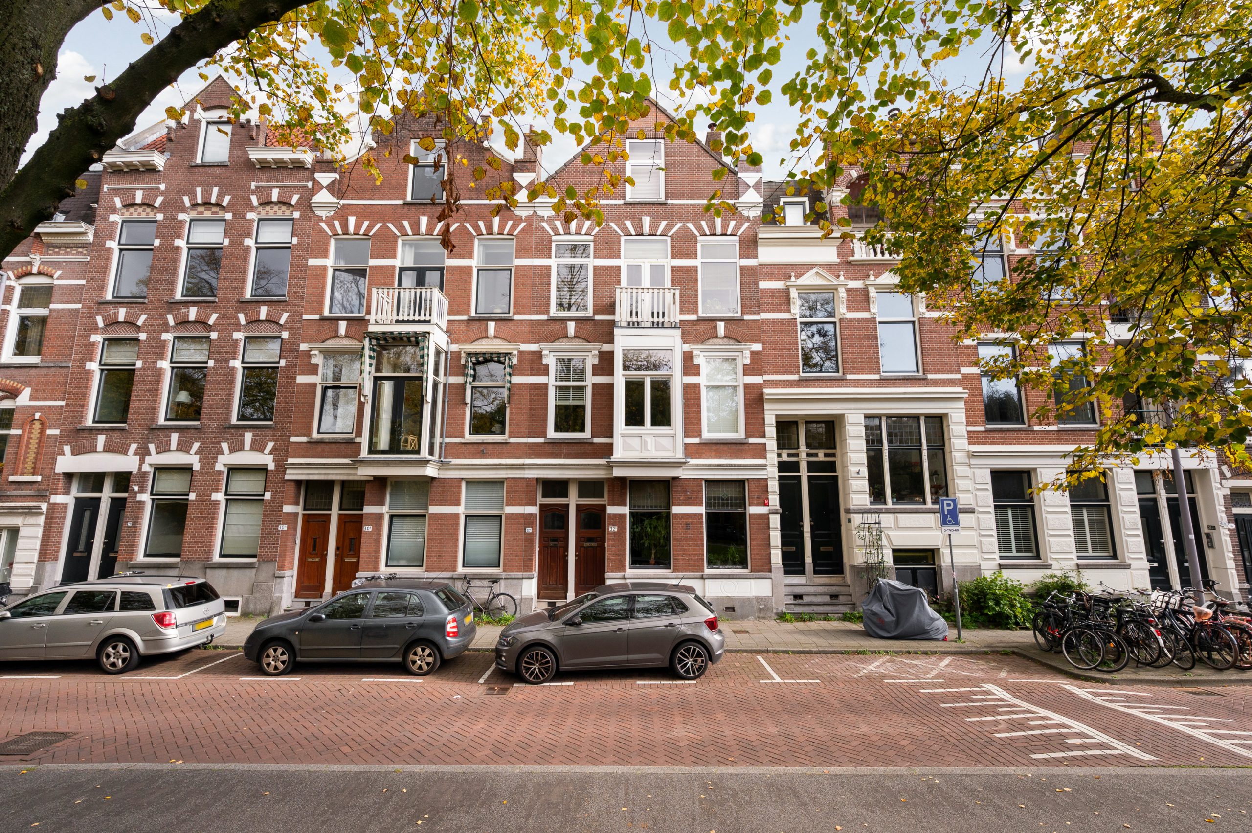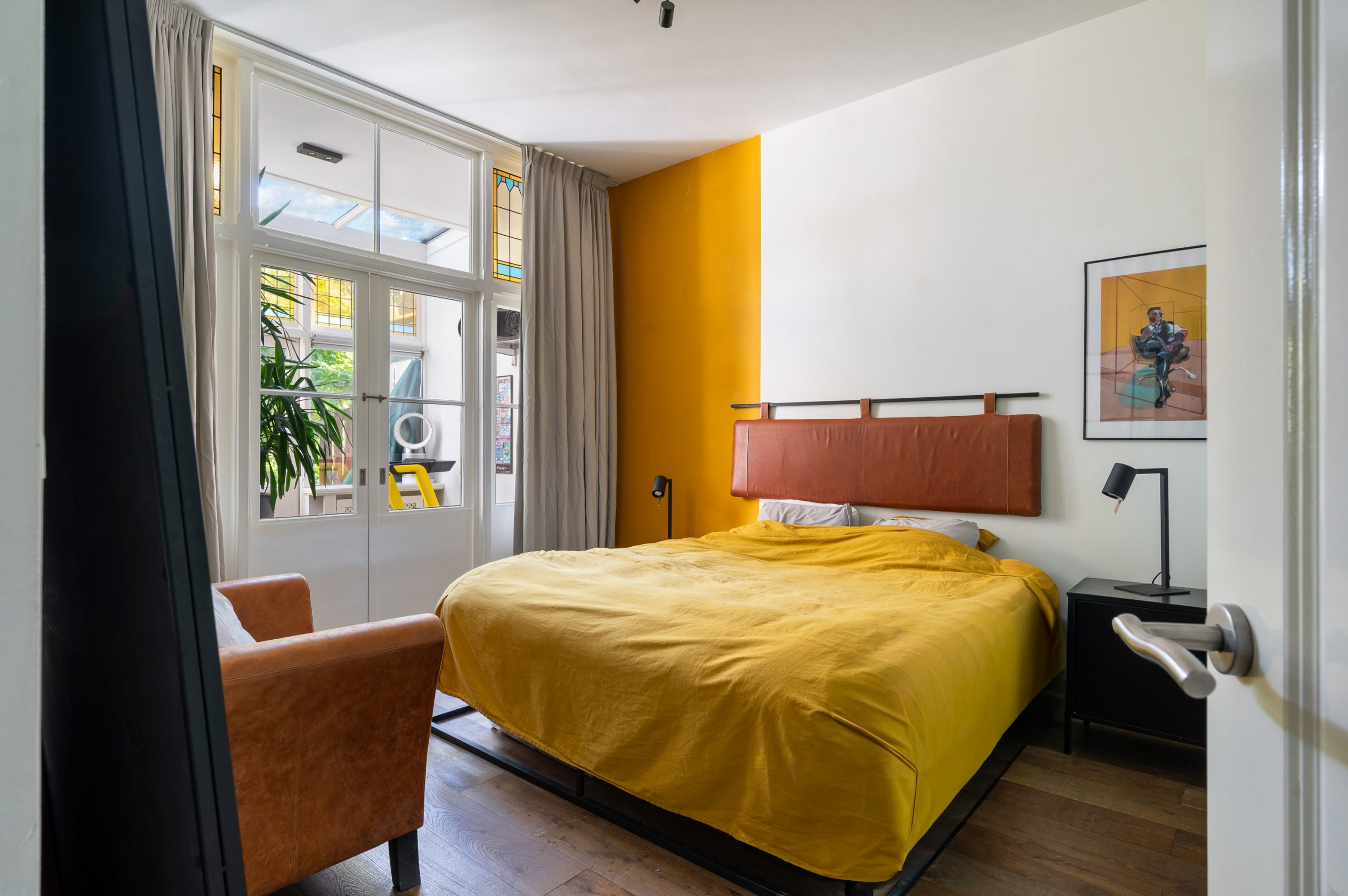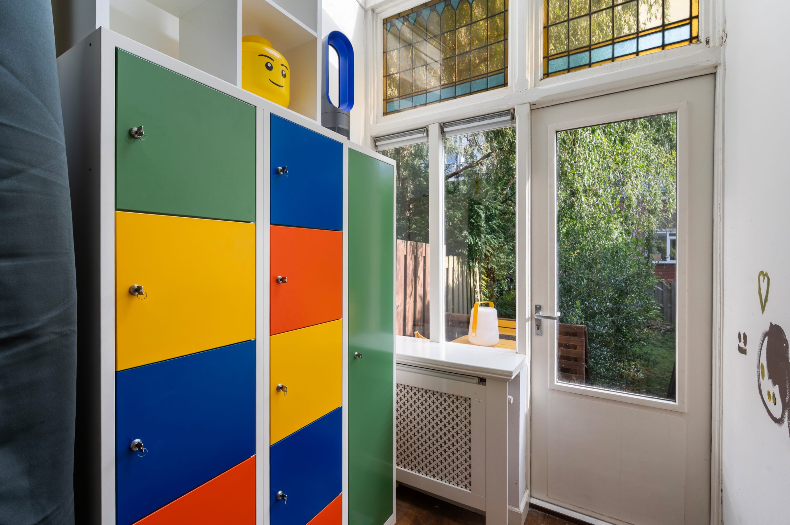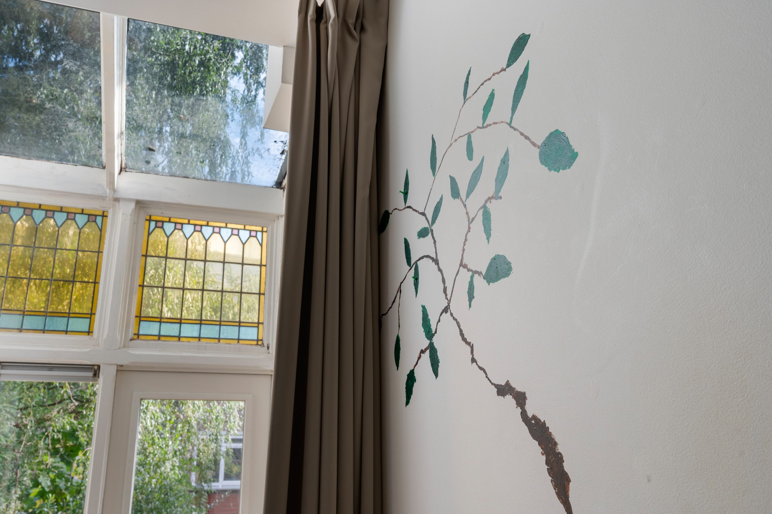 Entree met tochtportaal, vaste kast en toegang tot de woonkamer. Aan de voorzijde van de woning bevindt zich de sfeervolle woonkamer, die met een plafondhoogte van maar liefst 3,16 meter een bijzonder ruimtelijk gevoel geeft. Dankzij de grote raampartijen met karakteristiek glas-in-lood treedt er veel natuurlijk licht naar binnen wat zorgt voor een ruime, lichte sfeer. Het stijlvolle kookeiland met bar is het hart van deze open woonkeuken, waar koken en gezelligheid perfect samenkomen. Het is de ideale plek om lekker in contact te blijven met je gezelschap, terwijl je geniet van de open, gezellige sfeer. De keuken beschikt over diverse soorten inbouwapparatuur zoals een 4-pits inductie kookplaat met geïntrigeerde afzuiging, vaatwasser, oven en een koel-/vriescombinatie. Via de hal, waar zich een vaste kast (met wasmachineaansluiting) en een separaat toilet bevinden, bereik je de gerenoveerde badkamer. De moderne, volledig betegelde badkamer beschikt over een inloop(regen)douche, handdoekradiator en een wastafel met meubel. De master bedroom is gelegen aan de achterzijde van de woning. Dit is een ruime en lichte kamer met mooie karakteristieke jaren ’30 details. Door middel van antieke schuifdeuren bereik je de serre met dakraam en glas-in-lood wat het een zeer luxueuze sfeer geeft en welke multifunctioneel is in te richten, bijvoorbeeld als extra slaapkamer of hobbyruimte. Via deze kamers bereik je het terras, gelegen op het oosten. Een perfecte plek om op zomerse avonden te genieten van het buitenleven en uitgebreid te dineren. Middels een trap bereik je de lager gelegen achtertuin van maar liefst 88 m2! De tuin biedt alle mogelijkheden om geheel naar eigen smaak en wens in te richten, zodat je er jouw ideale buitenruimte van kunt maken.