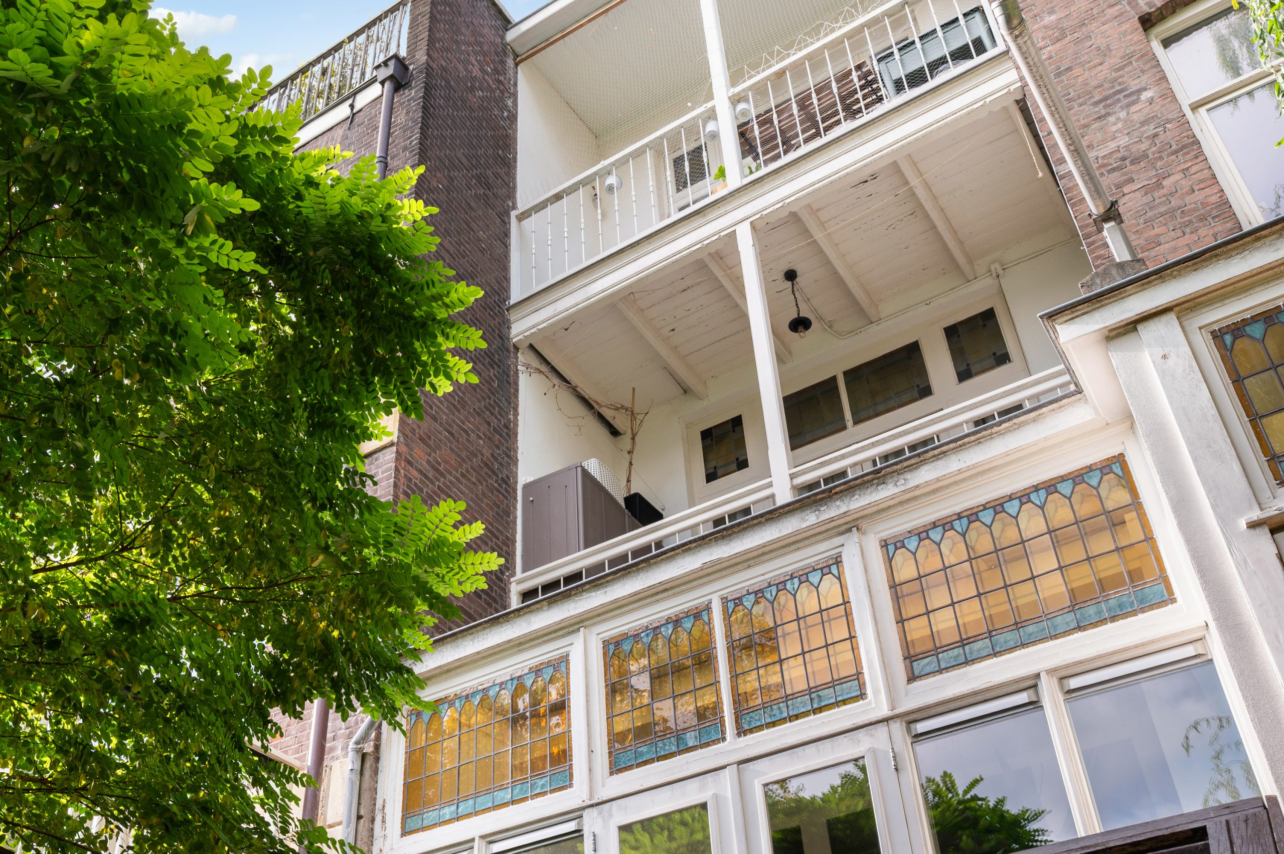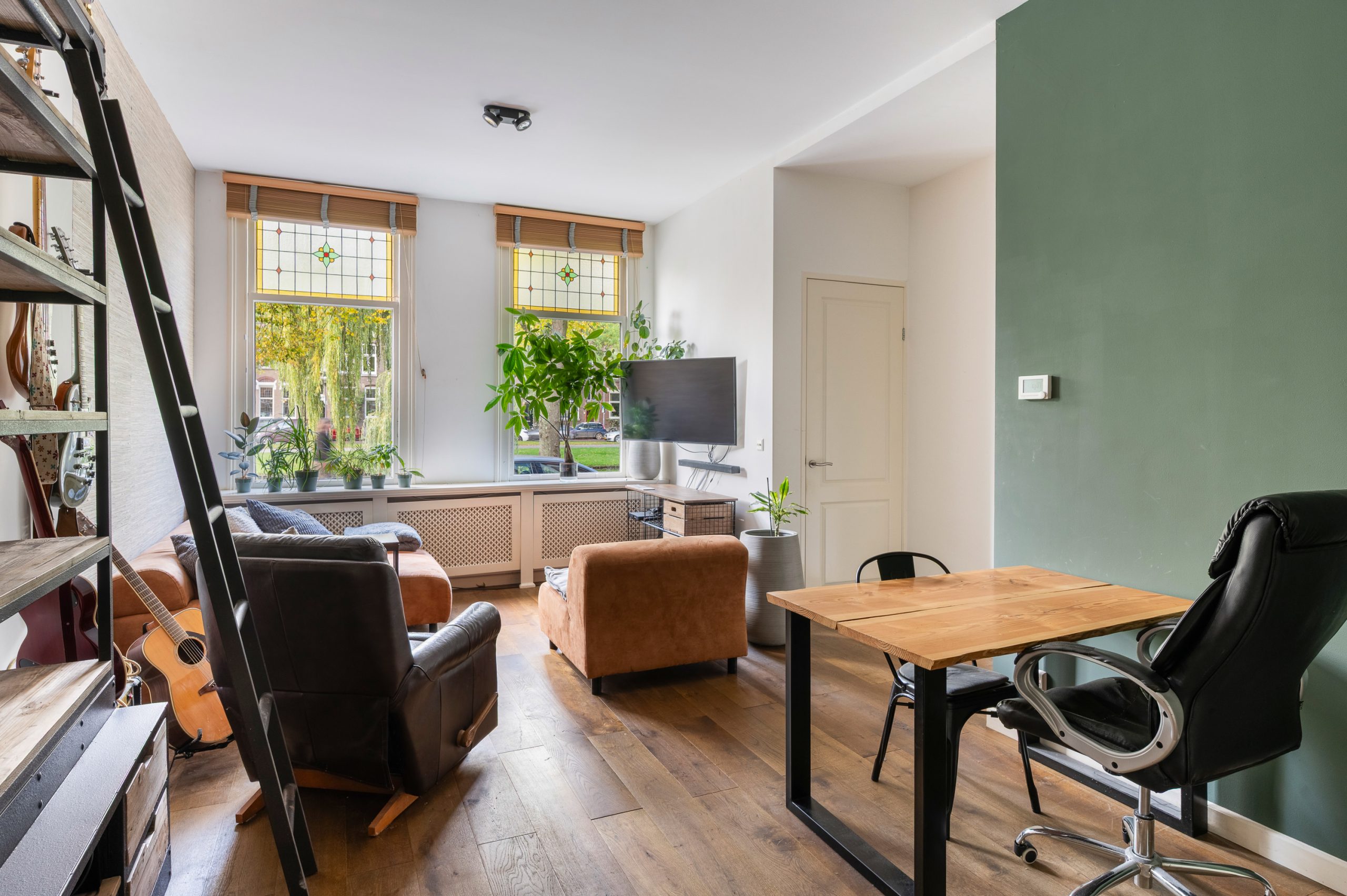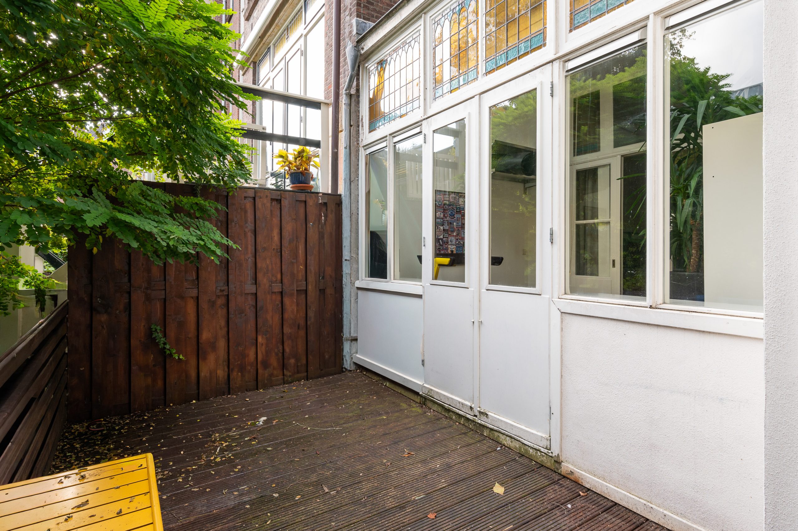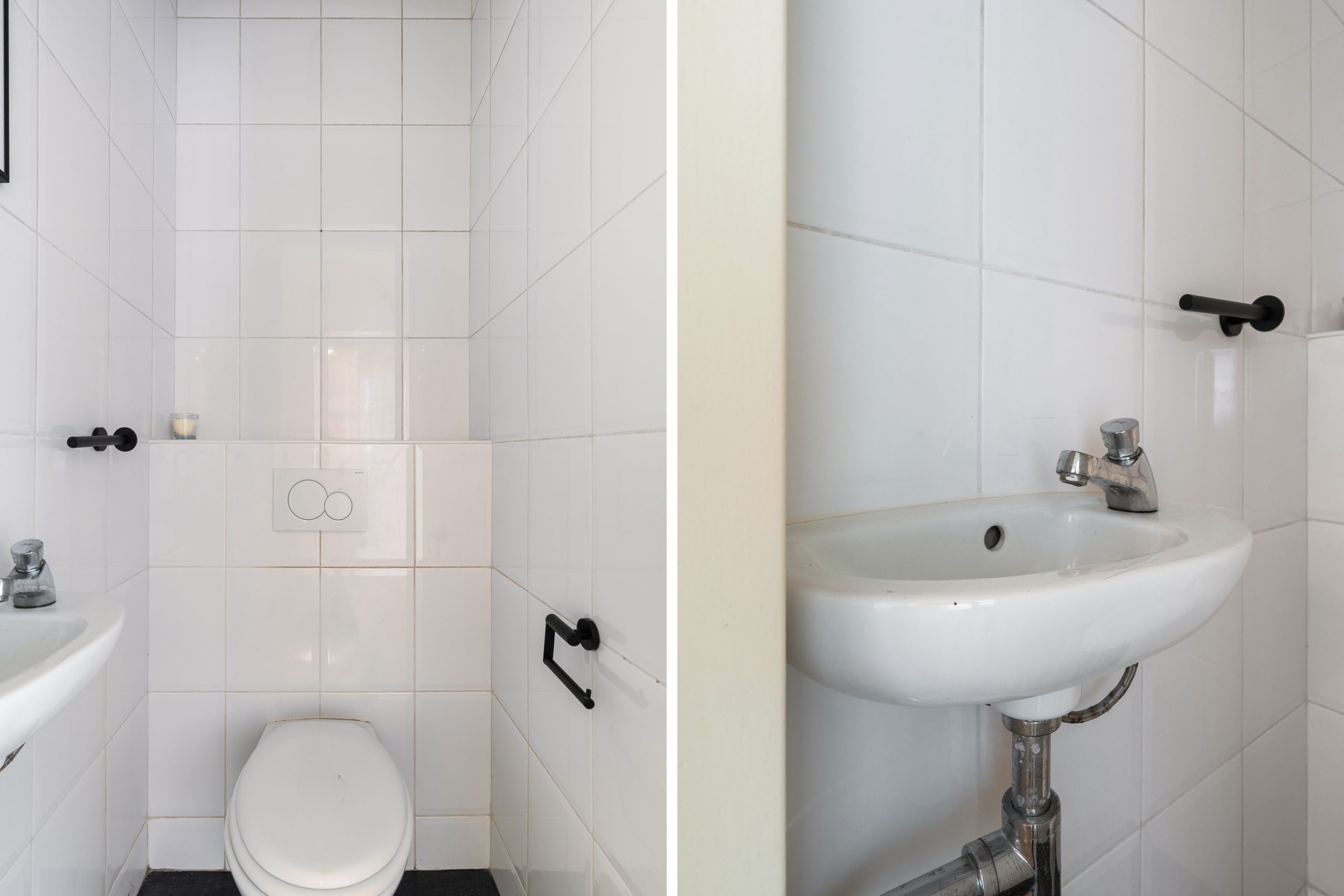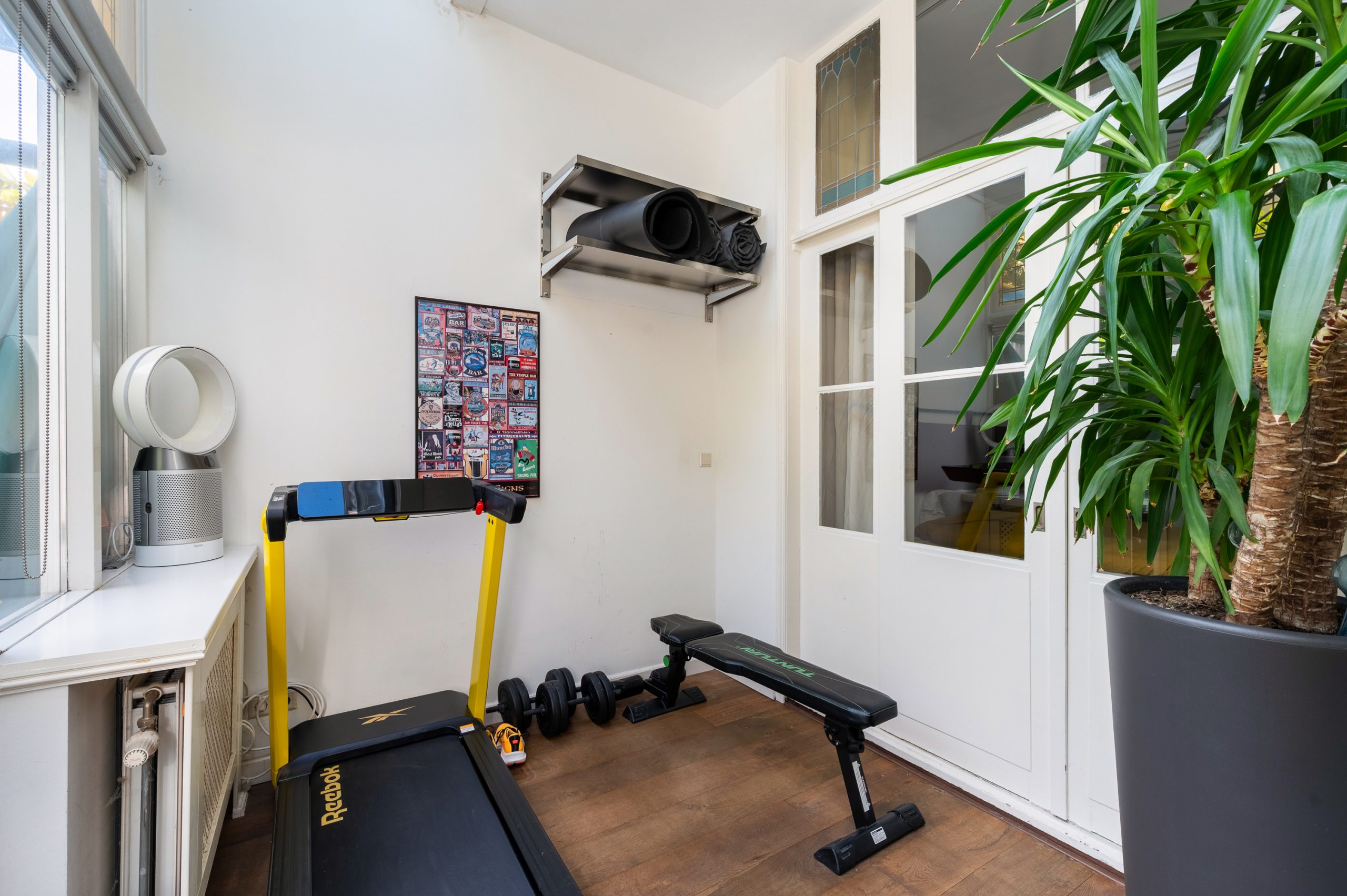 Entree met tochtportaal, vaste kast en toegang tot de woonkamer. Aan de voorzijde van de woning bevindt zich de sfeervolle woonkamer, die met een plafondhoogte van maar liefst 3,16 meter een bijzonder ruimtelijk gevoel geeft. Dankzij de grote raampartijen met karakteristiek glas-in-lood treedt er veel natuurlijk licht naar binnen wat zorgt voor een ruime, lichte sfeer. Het stijlvolle kookeiland met bar is het hart van deze open woonkeuken, waar koken en gezelligheid perfect samenkomen. Het is de ideale plek om lekker in contact te blijven met je gezelschap, terwijl je geniet van de open, gezellige sfeer. De keuken beschikt over diverse soorten inbouwapparatuur zoals een 4-pits inductie kookplaat met geïntrigeerde afzuiging, vaatwasser, oven en een koel-/vriescombinatie. Via de hal, waar zich een vaste kast (met wasmachineaansluiting) en een separaat toilet bevinden, bereik je de gerenoveerde badkamer. De moderne, volledig betegelde badkamer beschikt over een inloop(regen)douche, handdoekradiator en een wastafel met meubel. De master bedroom is gelegen aan de achterzijde van de woning. Dit is een ruime en lichte kamer met mooie karakteristieke jaren ’30 details. Door middel van antieke schuifdeuren bereik je de serre met dakraam en glas-in-lood wat het een zeer luxueuze sfeer geeft en welke multifunctioneel is in te richten, bijvoorbeeld als extra slaapkamer of hobbyruimte. Via deze kamers bereik je het terras, gelegen op het oosten. Een perfecte plek om op zomerse avonden te genieten van het buitenleven en uitgebreid te dineren. Middels een trap bereik je de lager gelegen achtertuin van maar liefst 88 m2! De tuin biedt alle mogelijkheden om geheel naar eigen smaak en wens in te richten, zodat je er jouw ideale buitenruimte van kunt maken.