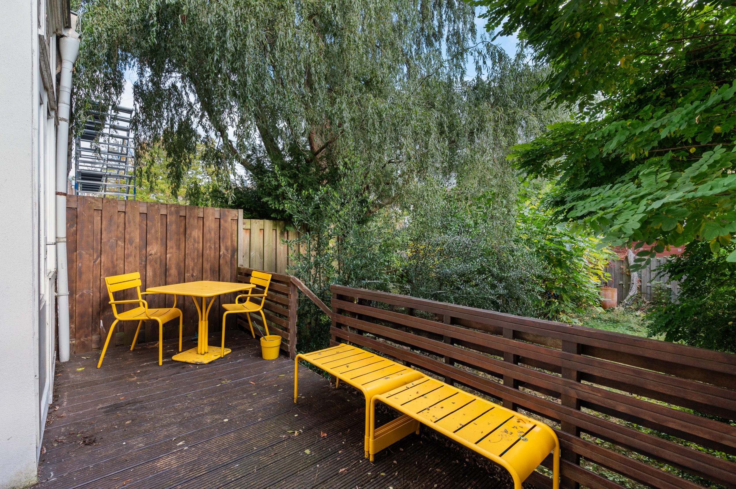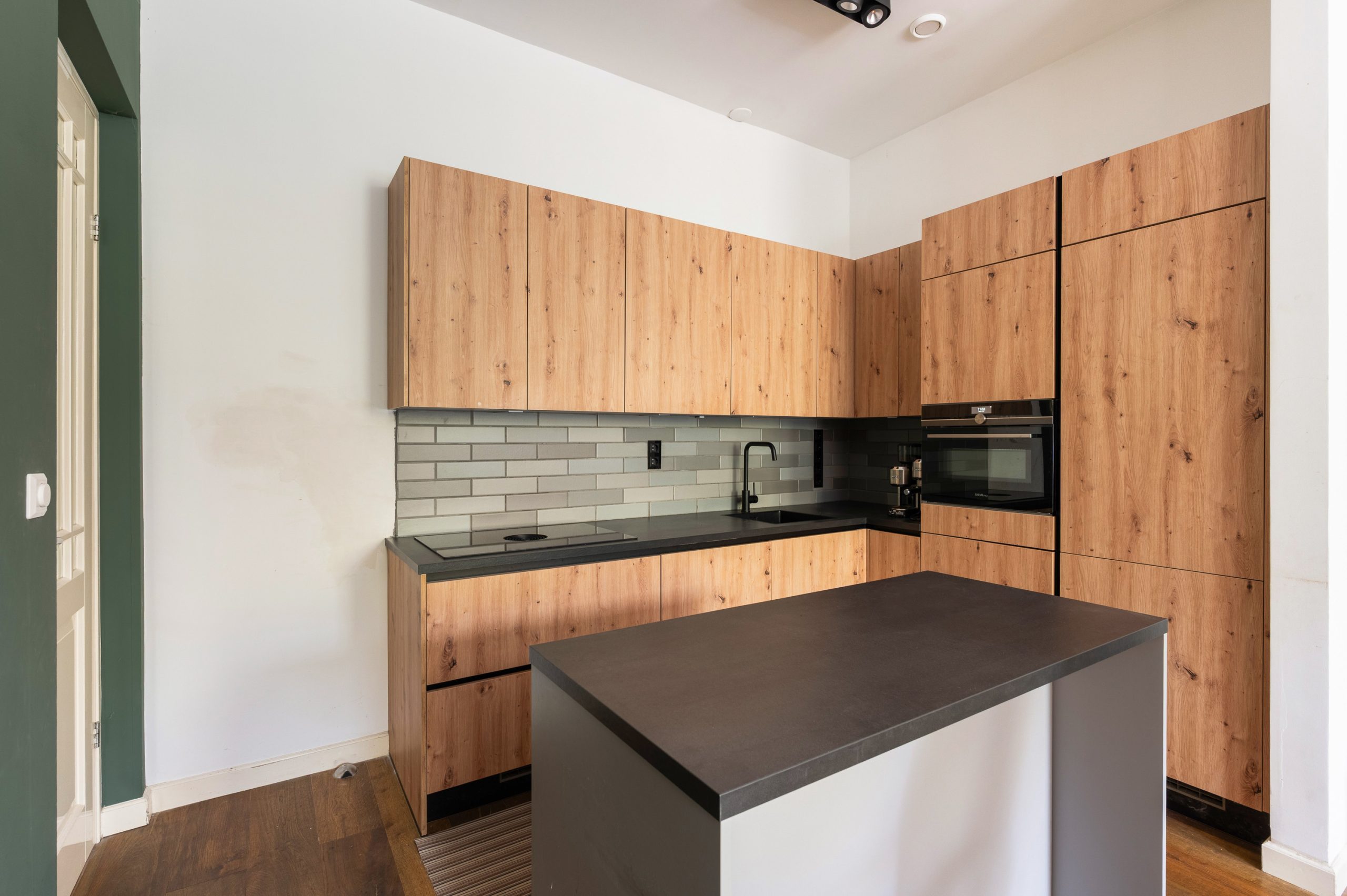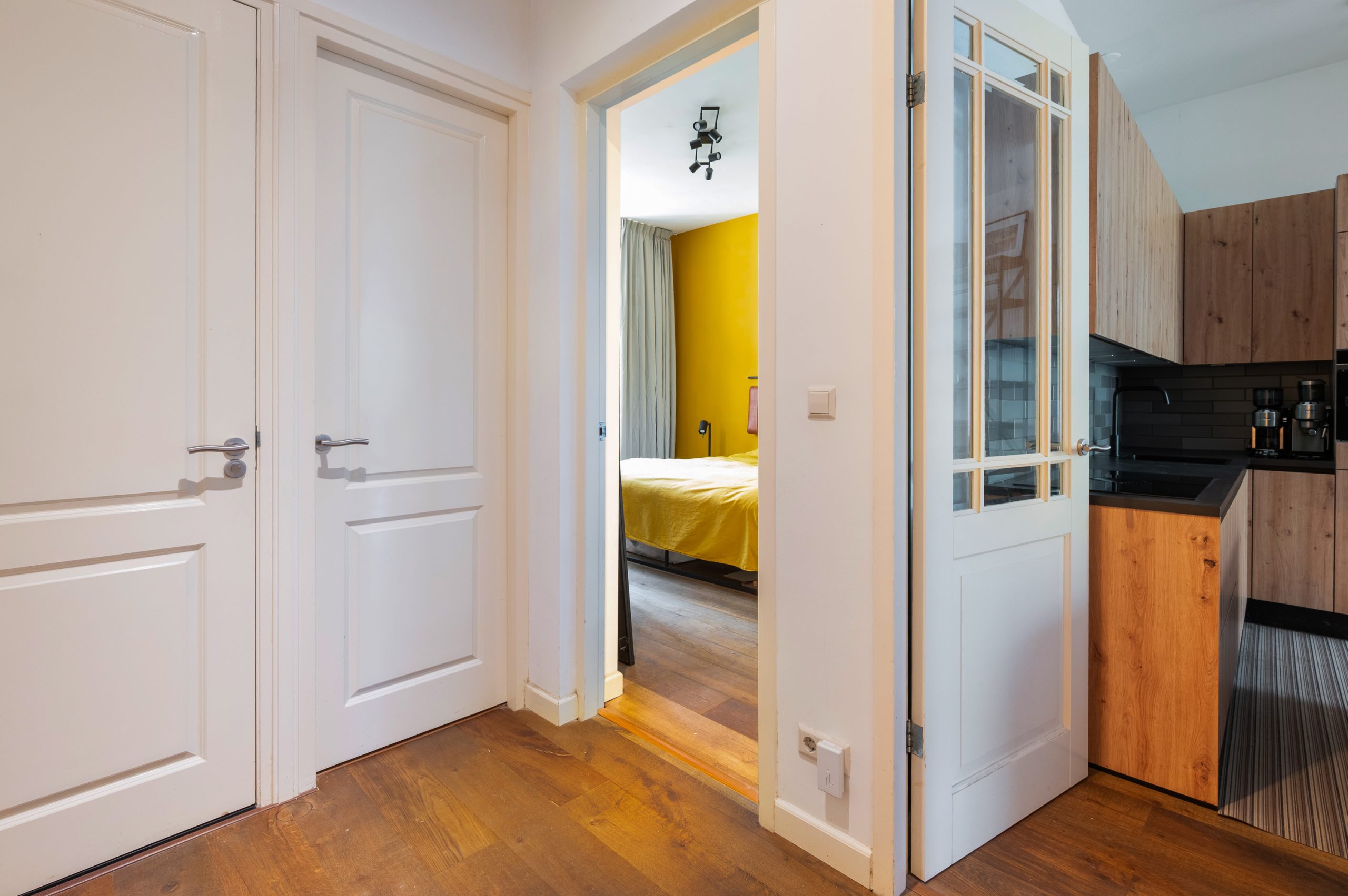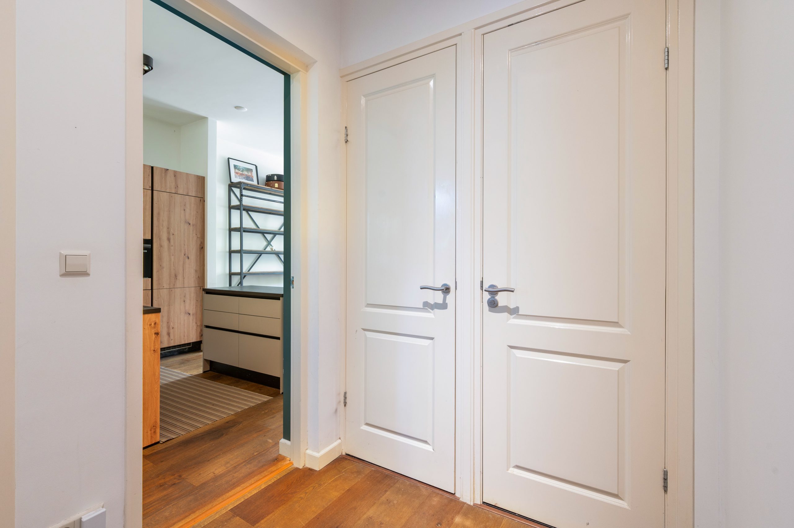 Entree met tochtportaal, vaste kast en toegang tot de woonkamer. Aan de voorzijde van de woning bevindt zich de sfeervolle woonkamer, die met een plafondhoogte van maar liefst 3,16 meter een bijzonder ruimtelijk gevoel geeft. Dankzij de grote raampartijen met karakteristiek glas-in-lood treedt er veel natuurlijk licht naar binnen wat zorgt voor een ruime, lichte sfeer. Het stijlvolle kookeiland met bar is het hart van deze open woonkeuken, waar koken en gezelligheid perfect samenkomen. Het is de ideale plek om lekker in contact te blijven met je gezelschap, terwijl je geniet van de open, gezellige sfeer. De keuken beschikt over diverse soorten inbouwapparatuur zoals een 4-pits inductie kookplaat met geïntrigeerde afzuiging, vaatwasser, oven en een koel-/vriescombinatie. Via de hal, waar zich een vaste kast (met wasmachineaansluiting) en een separaat toilet bevinden, bereik je de gerenoveerde badkamer. De moderne, volledig betegelde badkamer beschikt over een inloop(regen)douche, handdoekradiator en een wastafel met meubel. De master bedroom is gelegen aan de achterzijde van de woning. Dit is een ruime en lichte kamer met mooie karakteristieke jaren ’30 details. Door middel van antieke schuifdeuren bereik je de serre met dakraam en glas-in-lood wat het een zeer luxueuze sfeer geeft en welke multifunctioneel is in te richten, bijvoorbeeld als extra slaapkamer of hobbyruimte. Via deze kamers bereik je het terras, gelegen op het oosten. Een perfecte plek om op zomerse avonden te genieten van het buitenleven en uitgebreid te dineren. Middels een trap bereik je de lager gelegen achtertuin van maar liefst 88 m2! De tuin biedt alle mogelijkheden om geheel naar eigen smaak en wens in te richten, zodat je er jouw ideale buitenruimte van kunt maken.