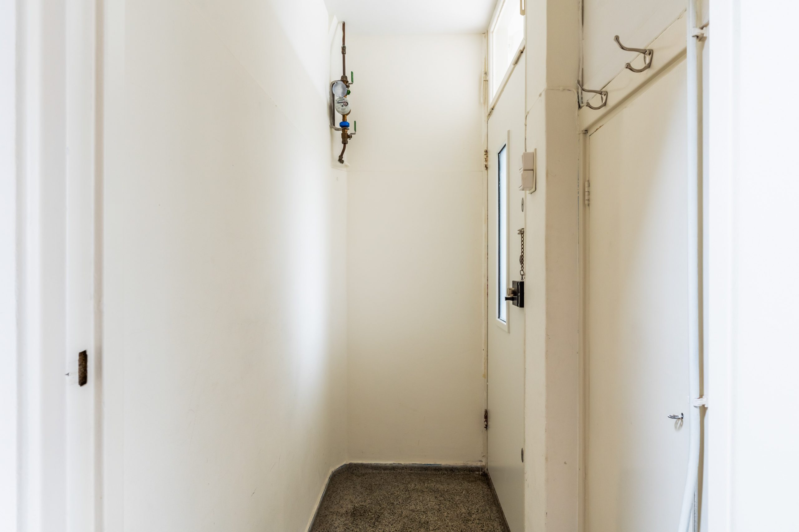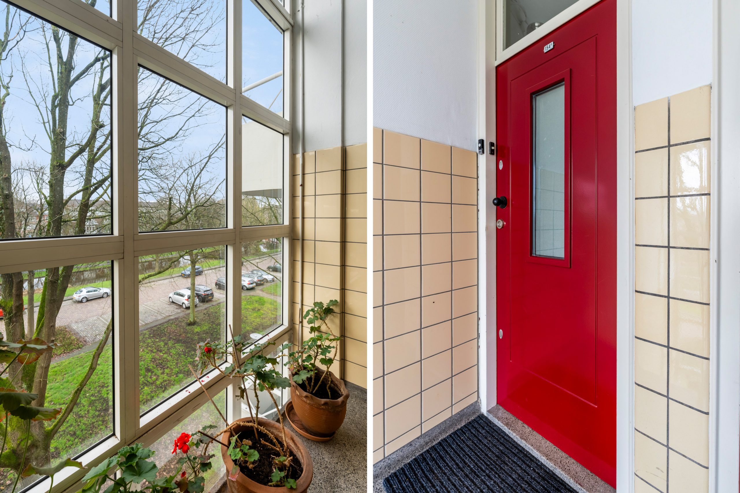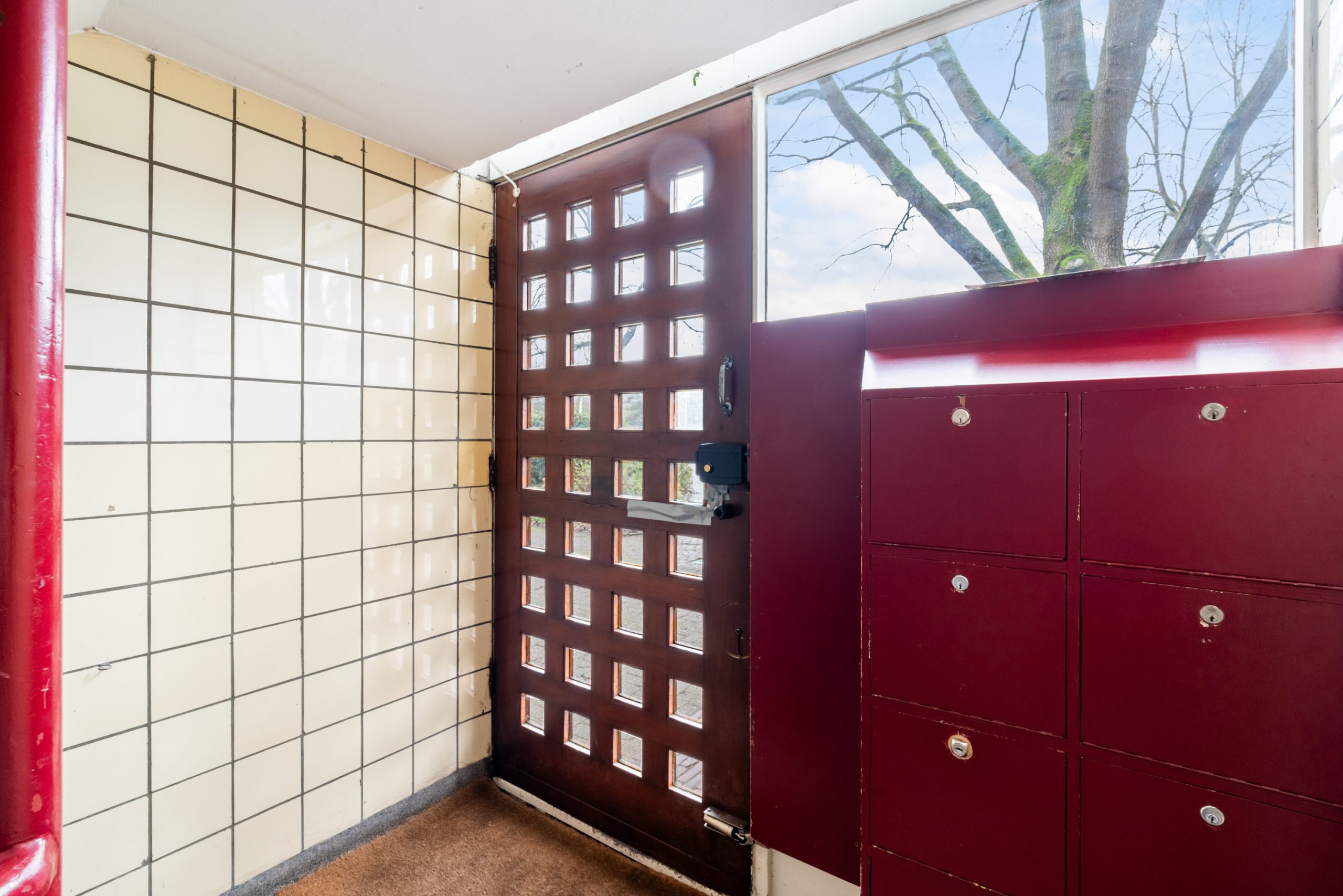 Gemeenschappelijk gesloten portiek met trapopgang naar de 3e verdieping.