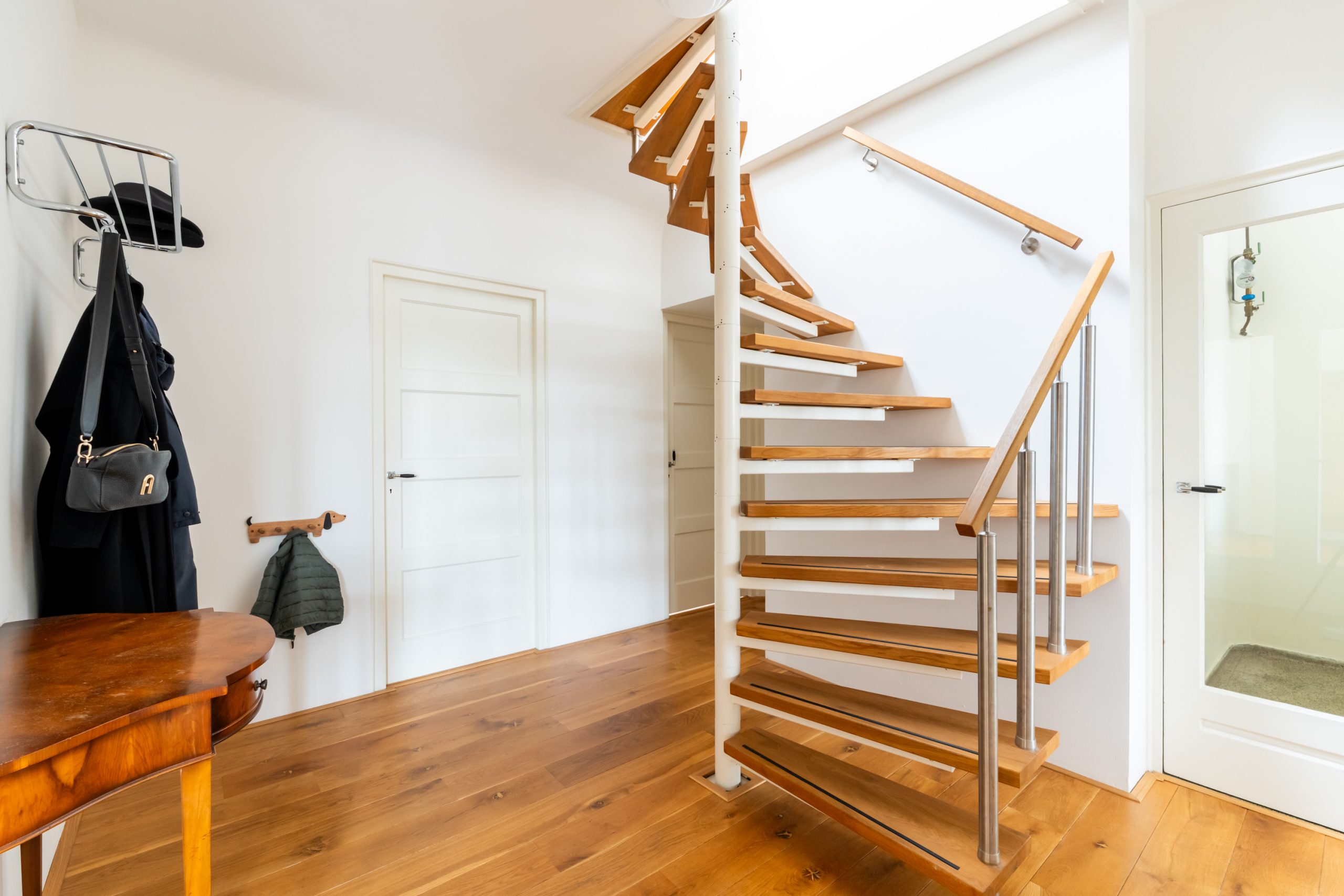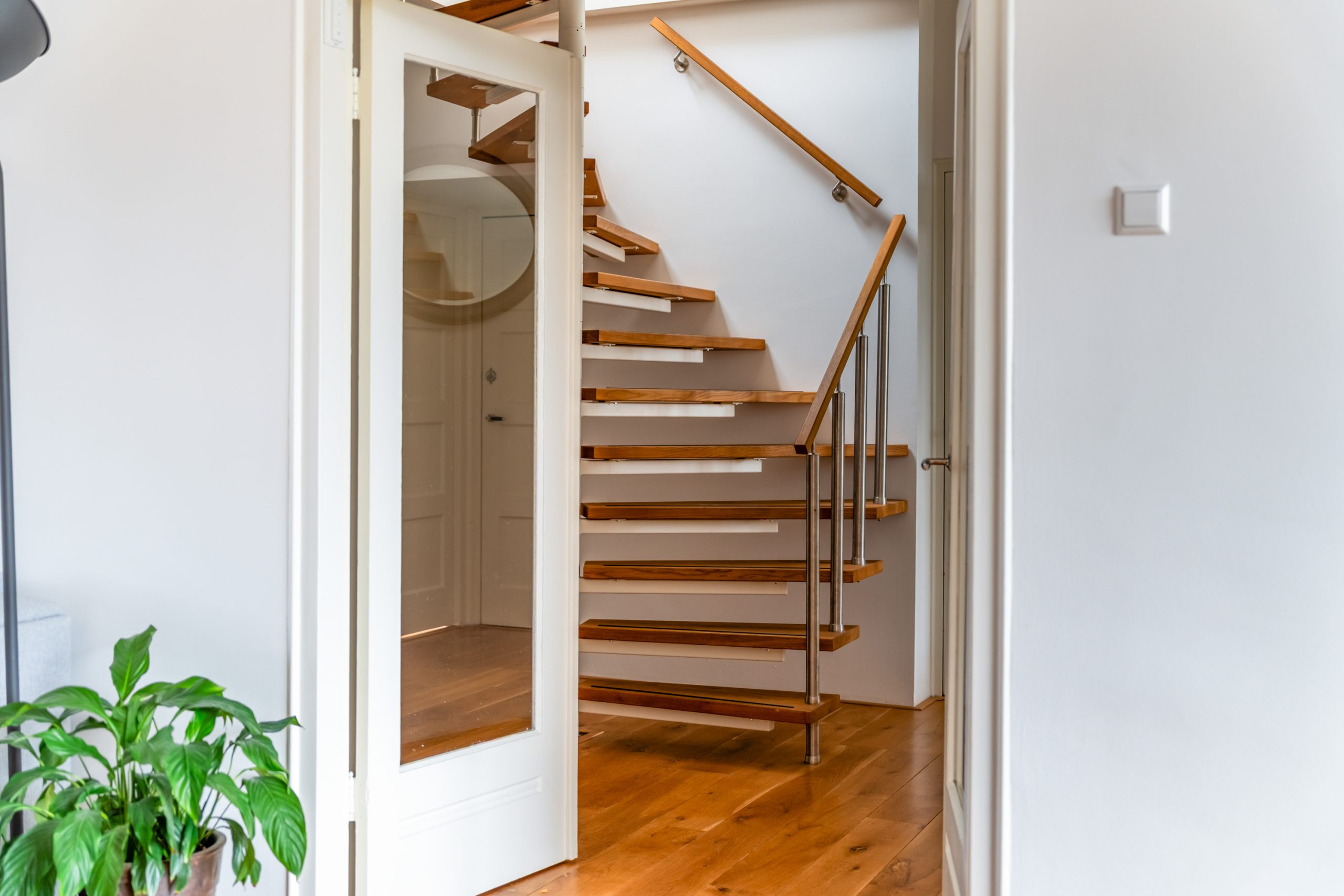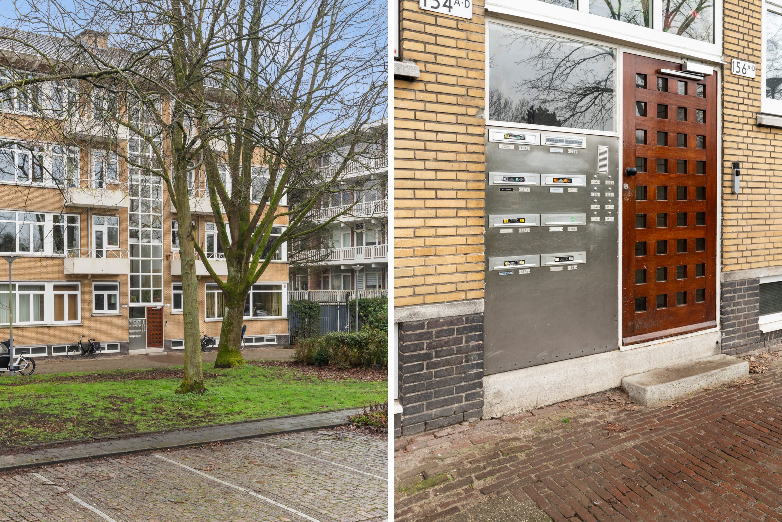 Gemeenschappelijk gesloten portiek met trapopgang naar de 3e verdieping.