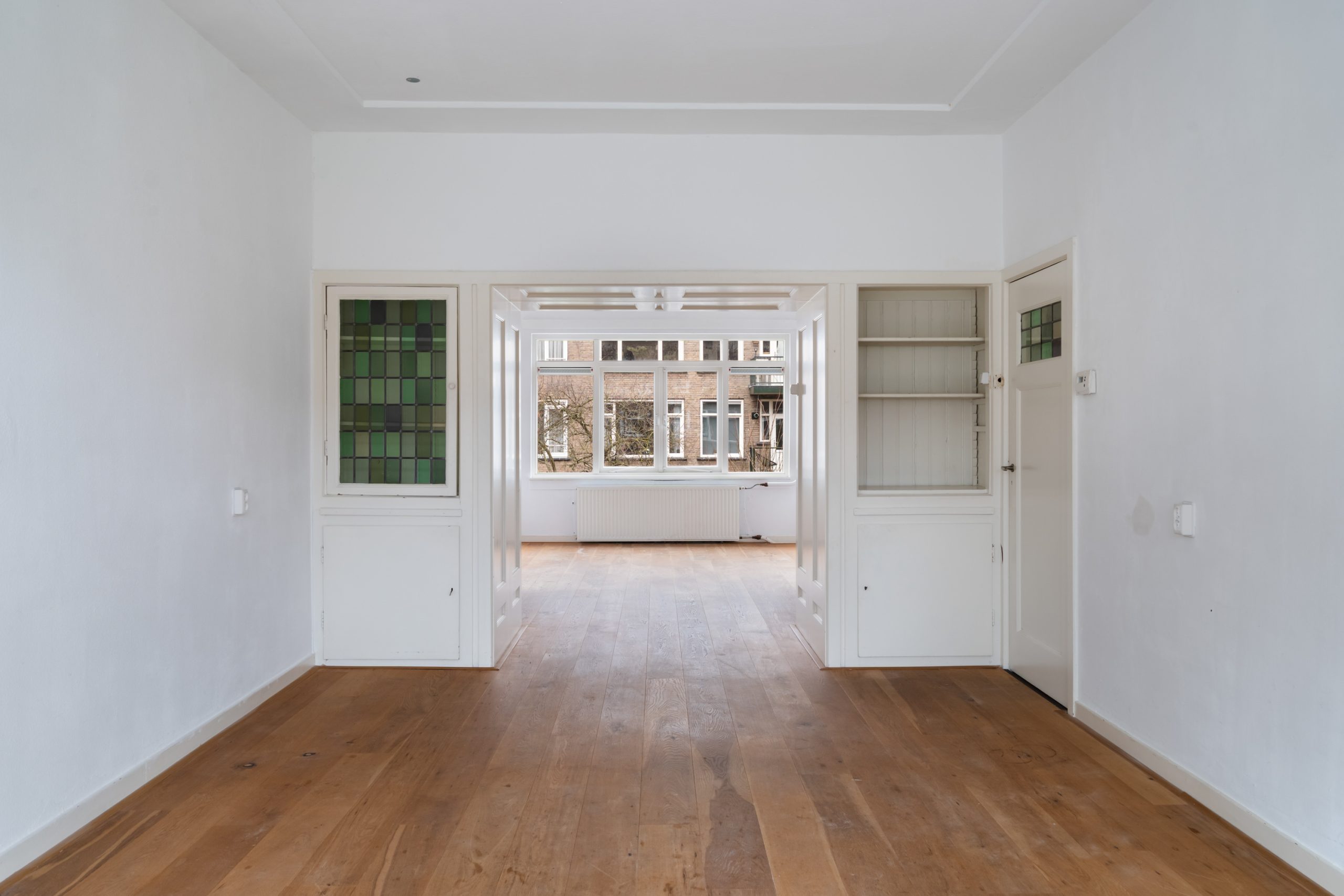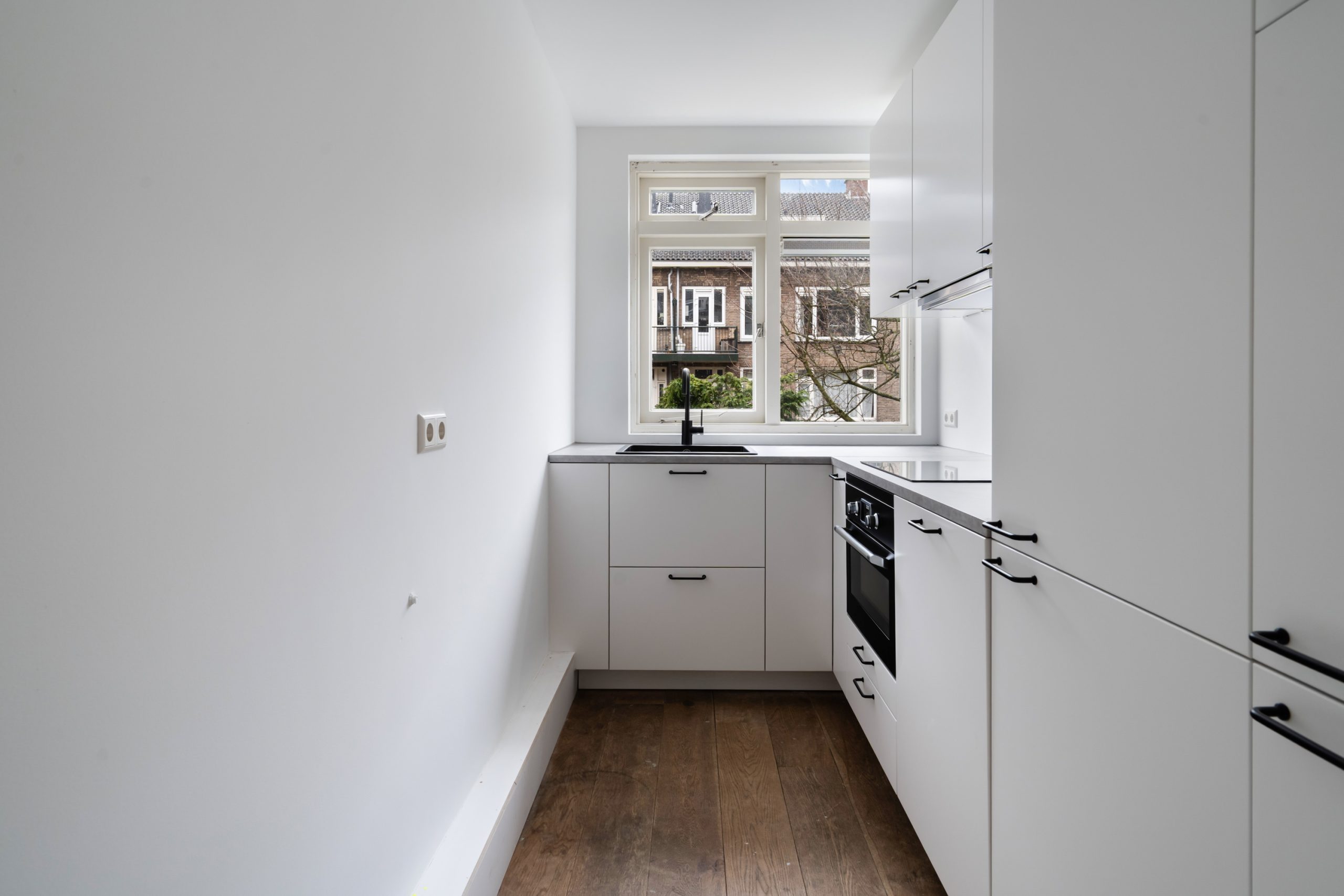 Ruime hal/overloop met toilet, vaste kast (met cv-opstelling en meterkast) en toegang tot alle vertrekken op deze verdieping. De en-suite woonkamer met een lengte van ruim 11 meter en hoge plafonds is zeer royaal te noemen. Deze kan gemakkelijk worden opgedeeld in een woon- en eetgedeelte, welke middels de en-suite optisch van elkaar gescheiden worden. Ook zijn er vier inbouwkasten in de en-suite verwerkt, wat zorgt voor extra opbergruimte. Vanuit het woongedeelte kijk je vrij uit over de prachtige Statensingel. Hierdoor bevind je je in een zeer rustige omgeving, en dat op vijf minuten afstand van het bruisende centrum! Op deze verdieping zijn tevens twee ruime slaapkamers, waarvan de kamer aan de voorzijde beschikt over een eigen badkamer met inloopdouche en wastafel. De keuken aan de achterzijde is volledig nieuw en beschikt over diverse soorten inbouwapparatuur, zoals een elektrische kookplaat, afzuiging, oven, vaatwasser en koel-/vriescombinatie.