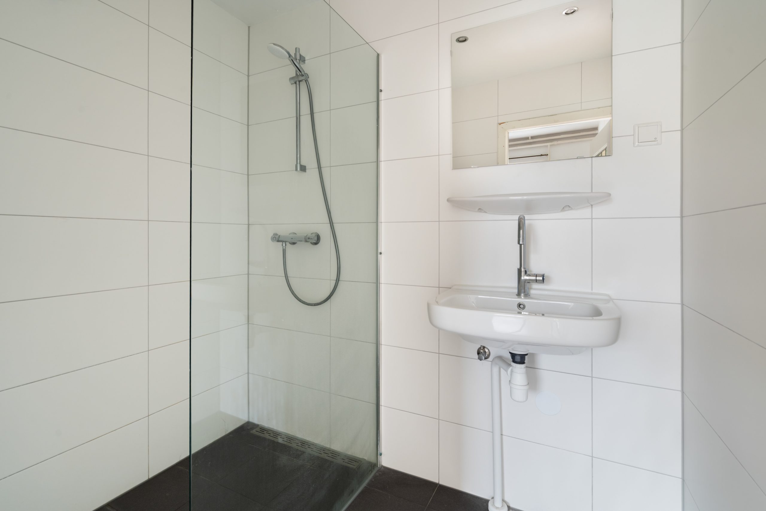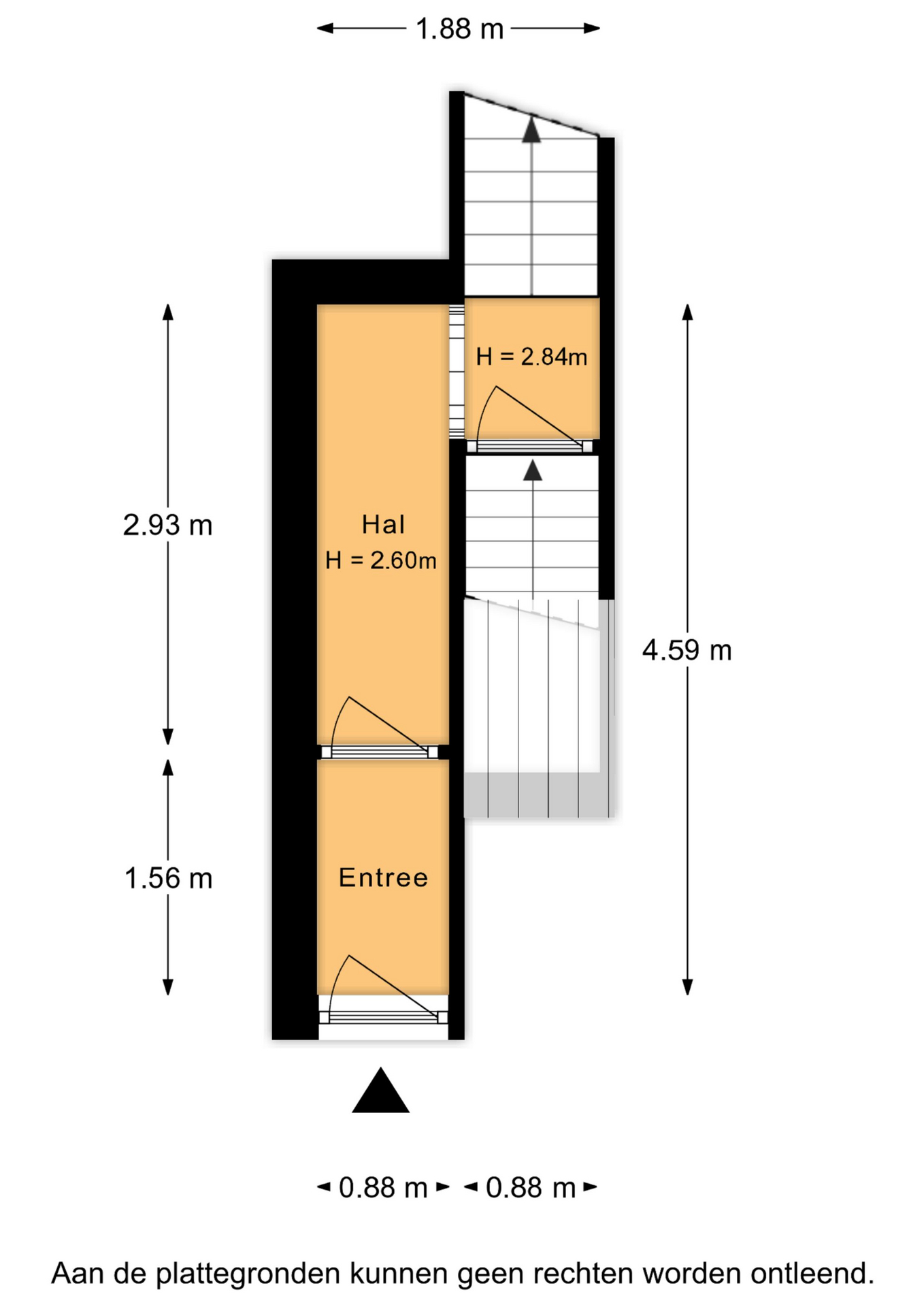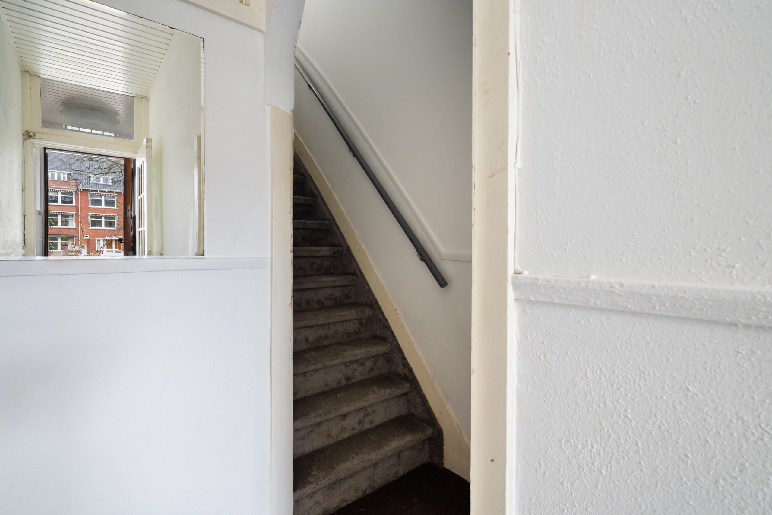 Eigen entree met tochtportaal, toegang tot de kelder en trap naar de 1e verdieping.
