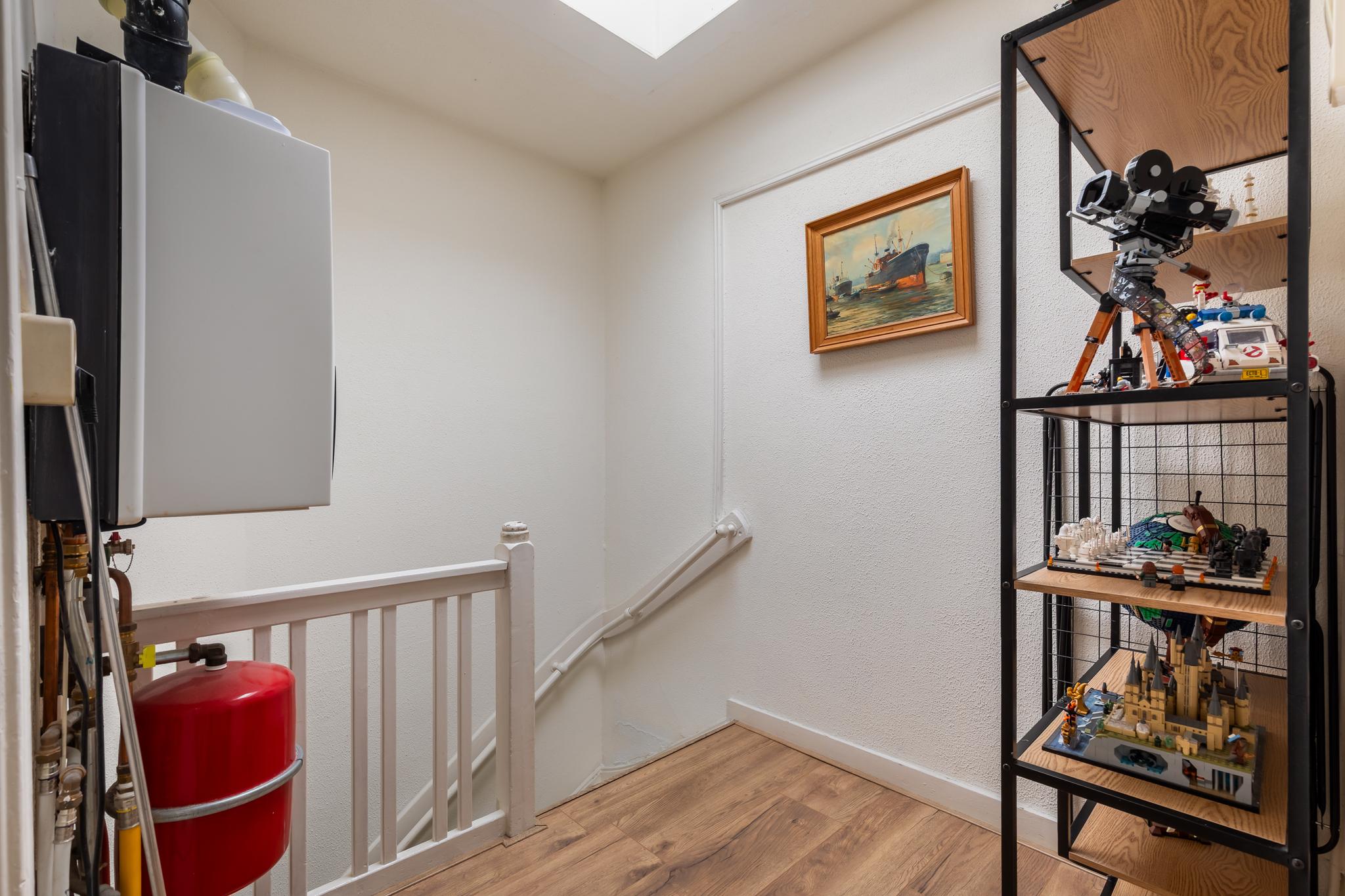Overloop met cv-opstelling en toegang tot alle vertrekken. De royale master bedroom met vaste kasten is gelegen aan de voorzijde van de woning. De 3e slaapkamer is ook multifunctioneel in te richten als werk-, kinder-, slaapkamer of als inloopkast. Via de slaapkamer bereik je het 3e en tevens laatste balkon, gelegen op het westen, waar je heerlijk kunt genieten van de zon. De moderne, volledig betegelde badkamer beschikt over een douche, handdoekradiator, toilet en een wastafel met meubel.