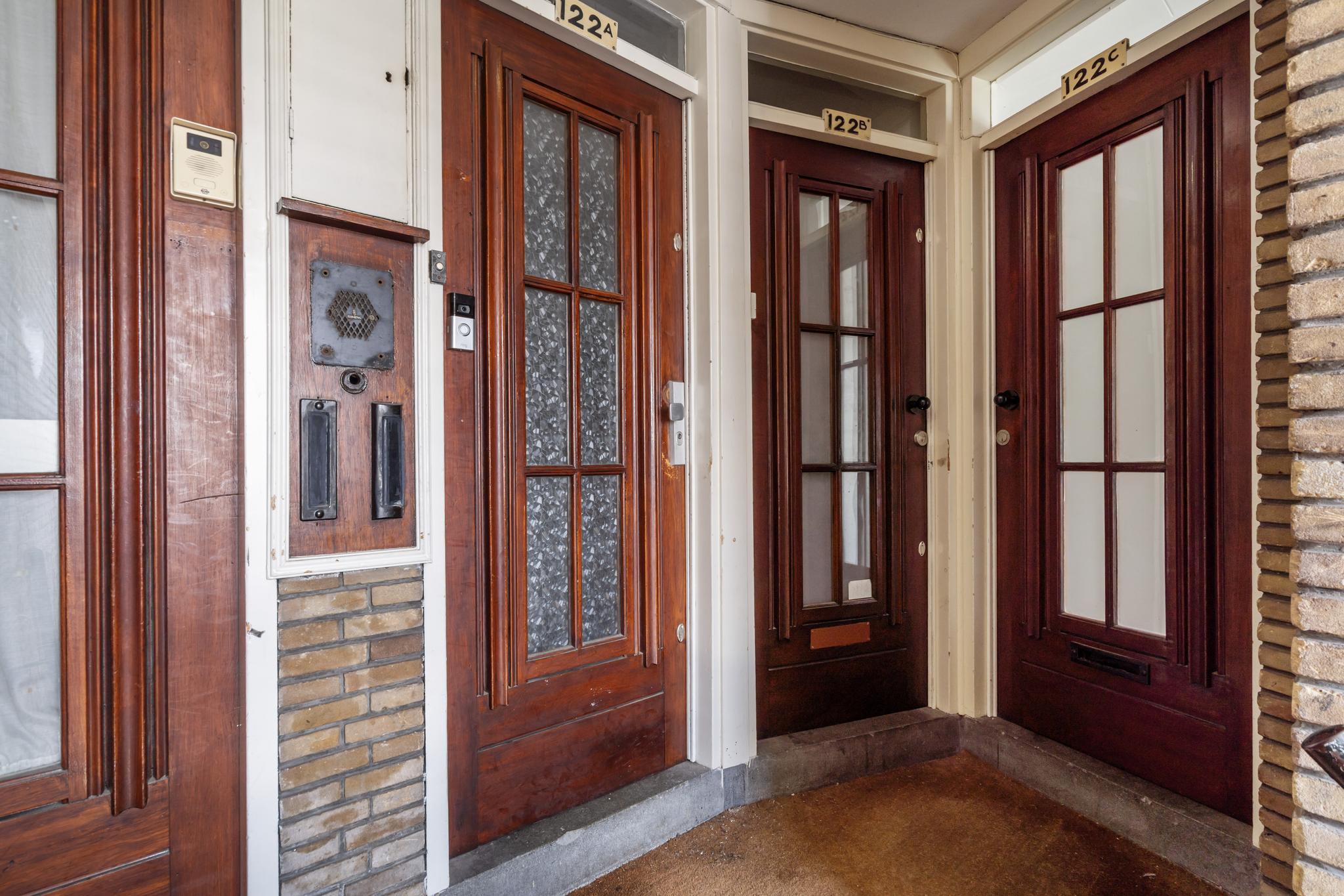 Karakteristieke open portiek met trapopgang naar de 3e verdieping.