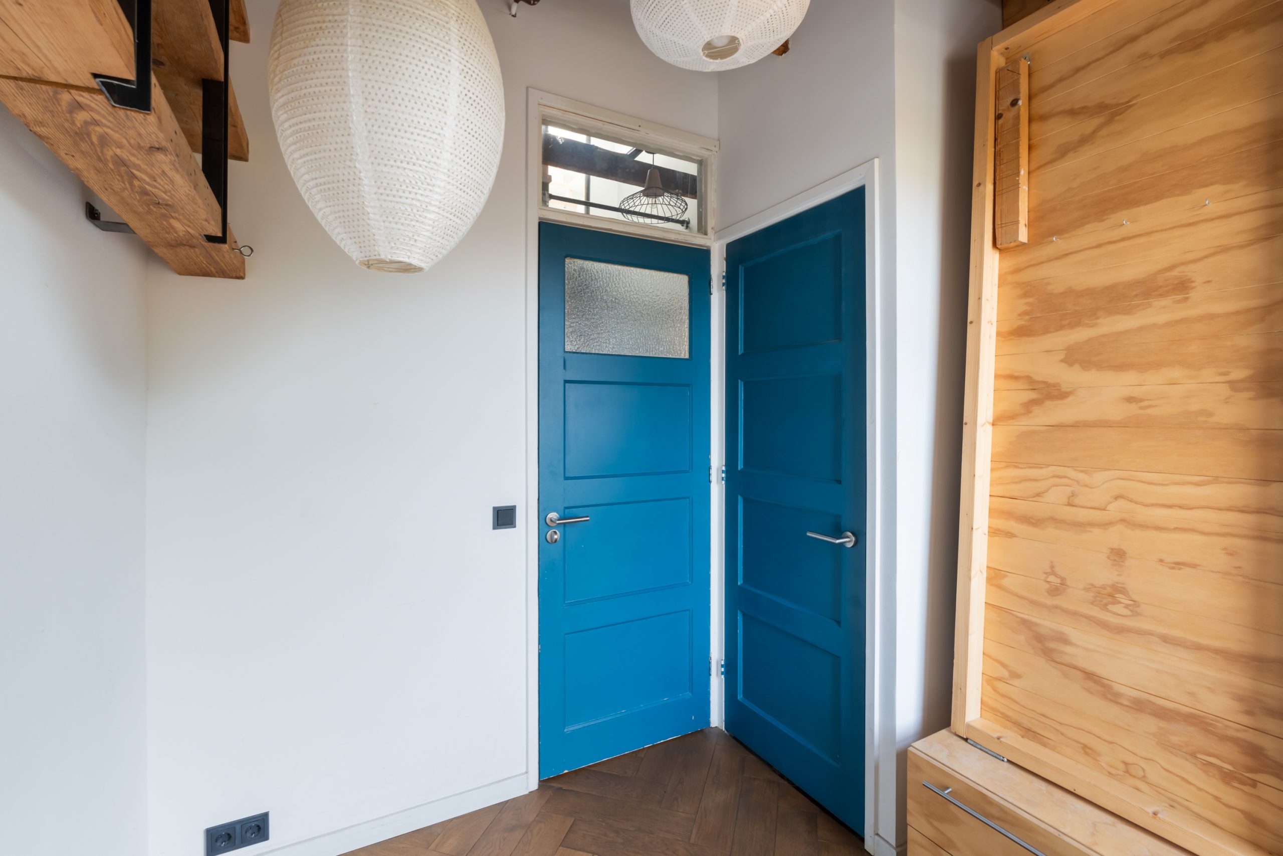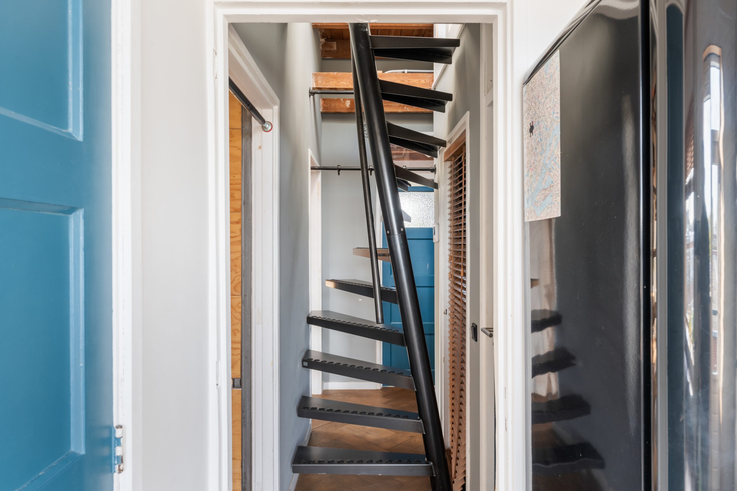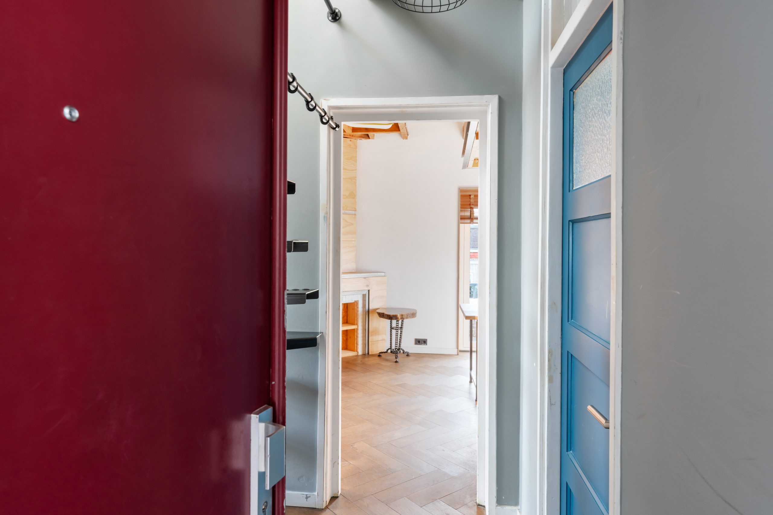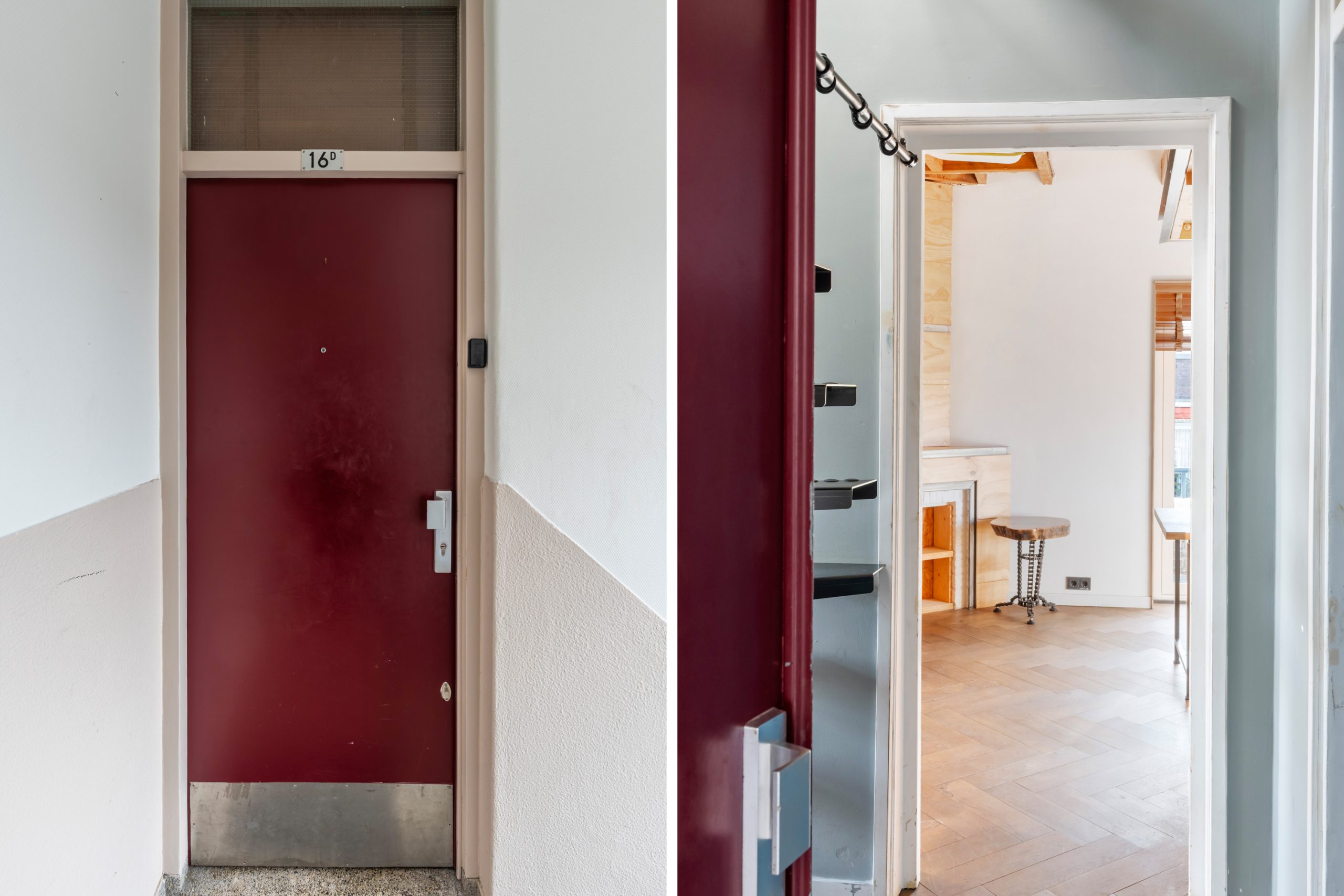 Gesloten portiek met trapopgang naar de 4e verdieping.