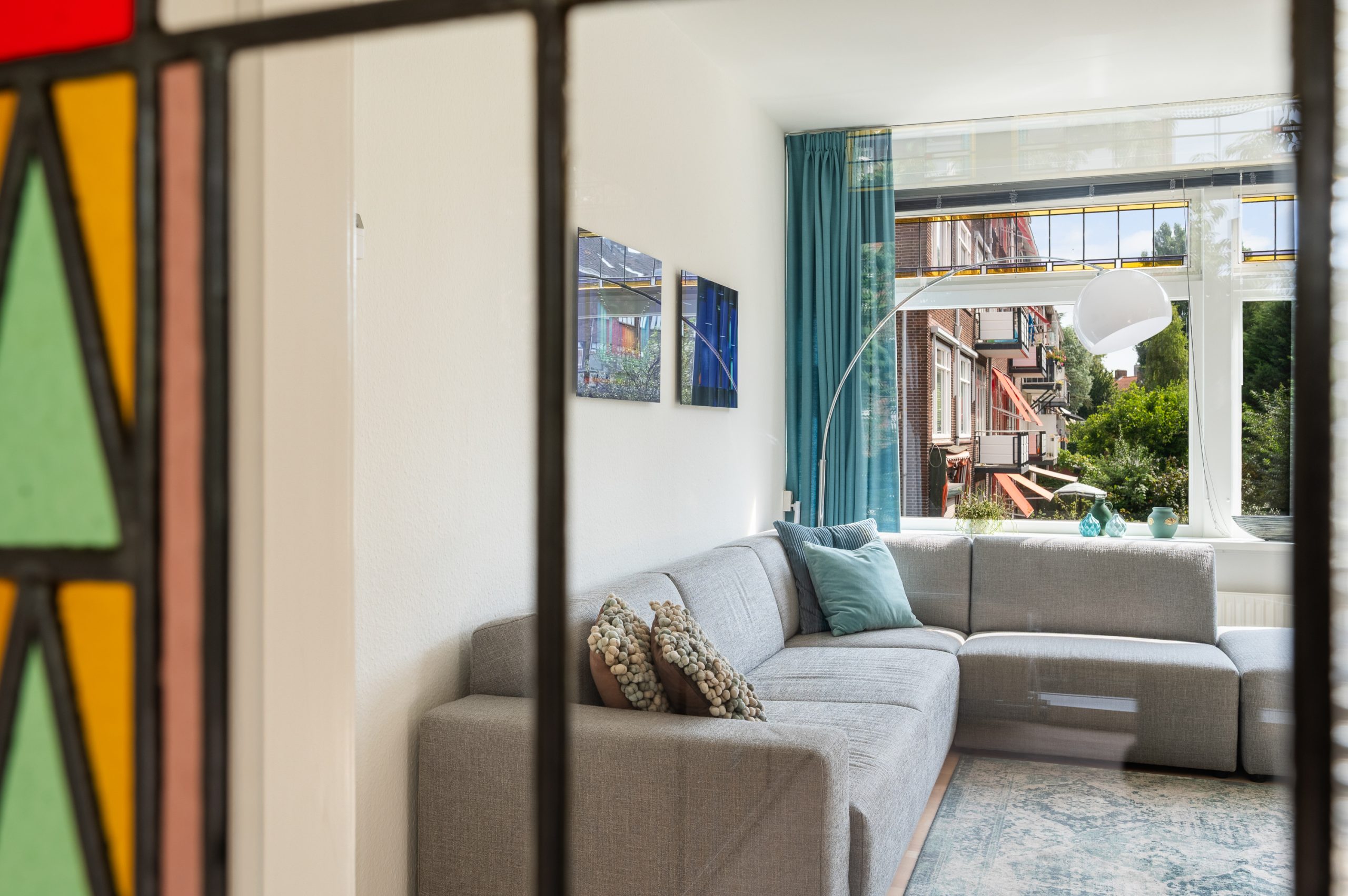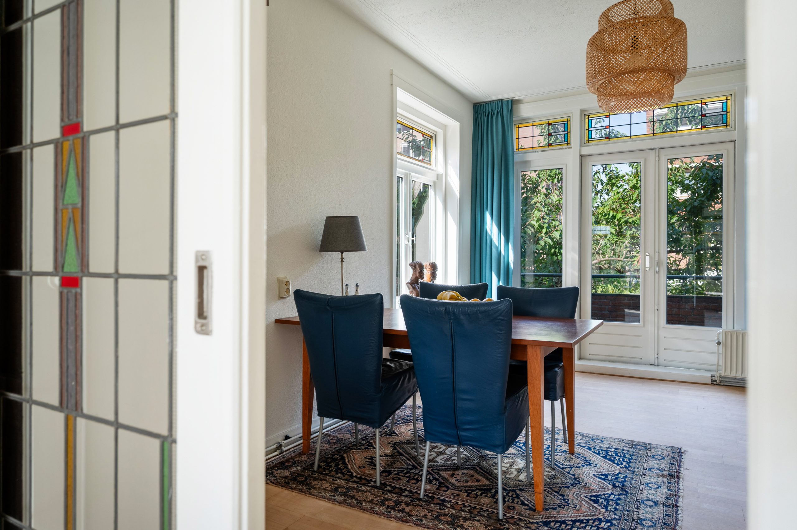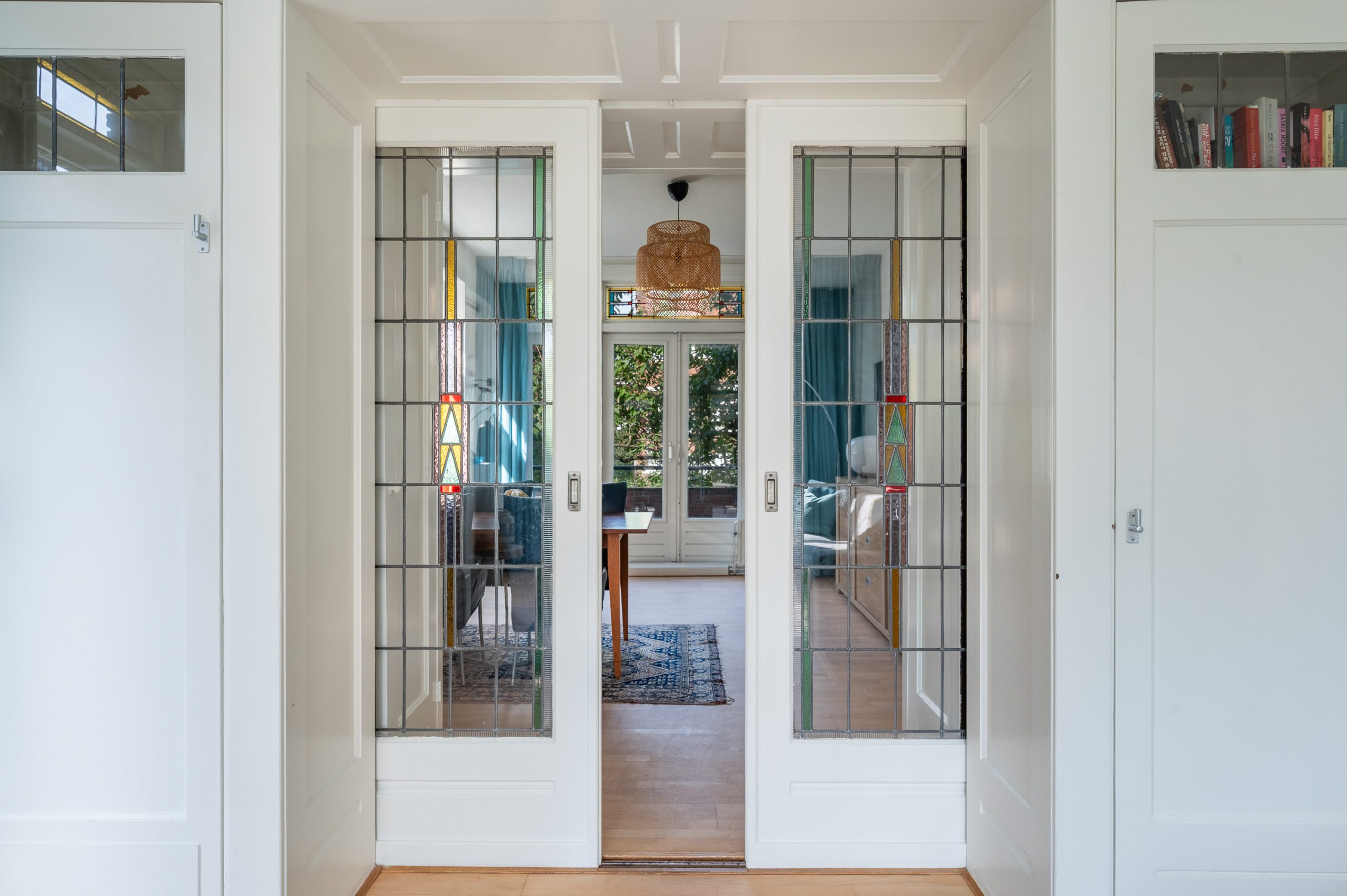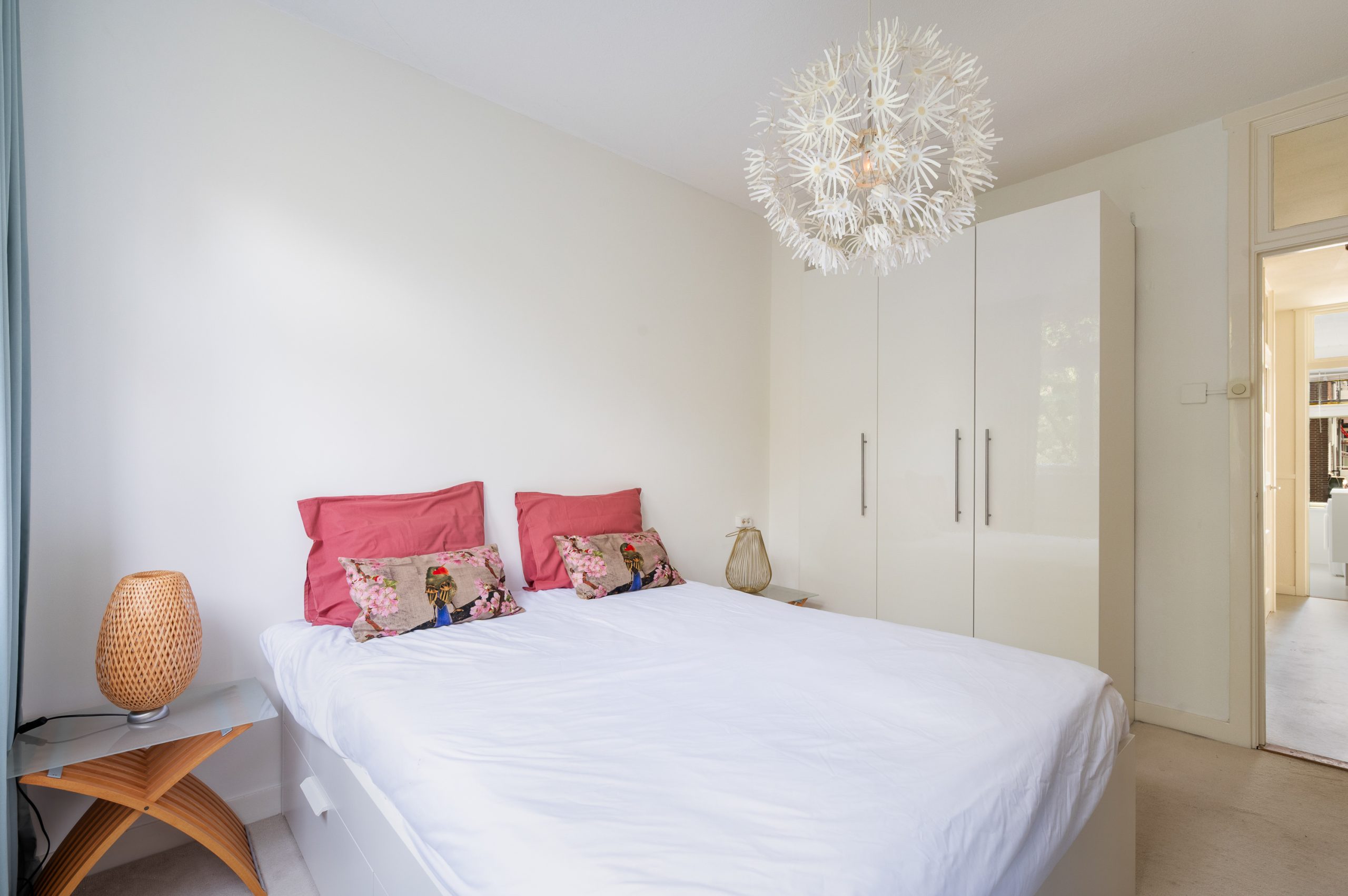 Ruime hal/entree met bergkast, meterkast en toegang tot alle vertrekken. De woonkamer is gelegen aan de voorzijde en heeft mede door de hoekligging een prachtige natuurlijke lichtinval. Wat direct opvalt zijn de originele jaren ’30 details zoals de glas-in-lood ramen, paneeldeuren, schouw en de en suite, wat het ontzettend sfeervol maakt. Het balkon aan de zijkant van het appartement zorgt voor een mooie verbinding tussen het binnen- en buitenleven. Door de en suite (met 4 inbouwkasten en CV-opstelling) wordt het woongedeelte gescheiden van het eetgedeelte. Indien gewenst, kan hier ook een extra slaapkamer worden gecreëerd. Vanuit de eetkamer bereik je het 2e balkon, gelegen op het zonnige westen. De nette keuken is gelegen aan de voorzijde en beschikt over diverse inbouwapparatuur zoals een 4-pits gasfornuis, afzuigkap oven en koel-/vriescombinatie. Ook bevindt zich in de keuken de wasmachineaansluiting. De master bedroom is gelegen aan de achterzijde en is ruim genoeg voor een tweepersoonsbed en een kledingkast. Vanuit de slaapkamer is er tevens toegang tot het balkon. Ook hier maken de glas-in-lood ramen het tot een karakteristieke ruimte. De badkamer is bereikbaar vanuit de hal en is voorzien van een douche, wastafel en toilet.