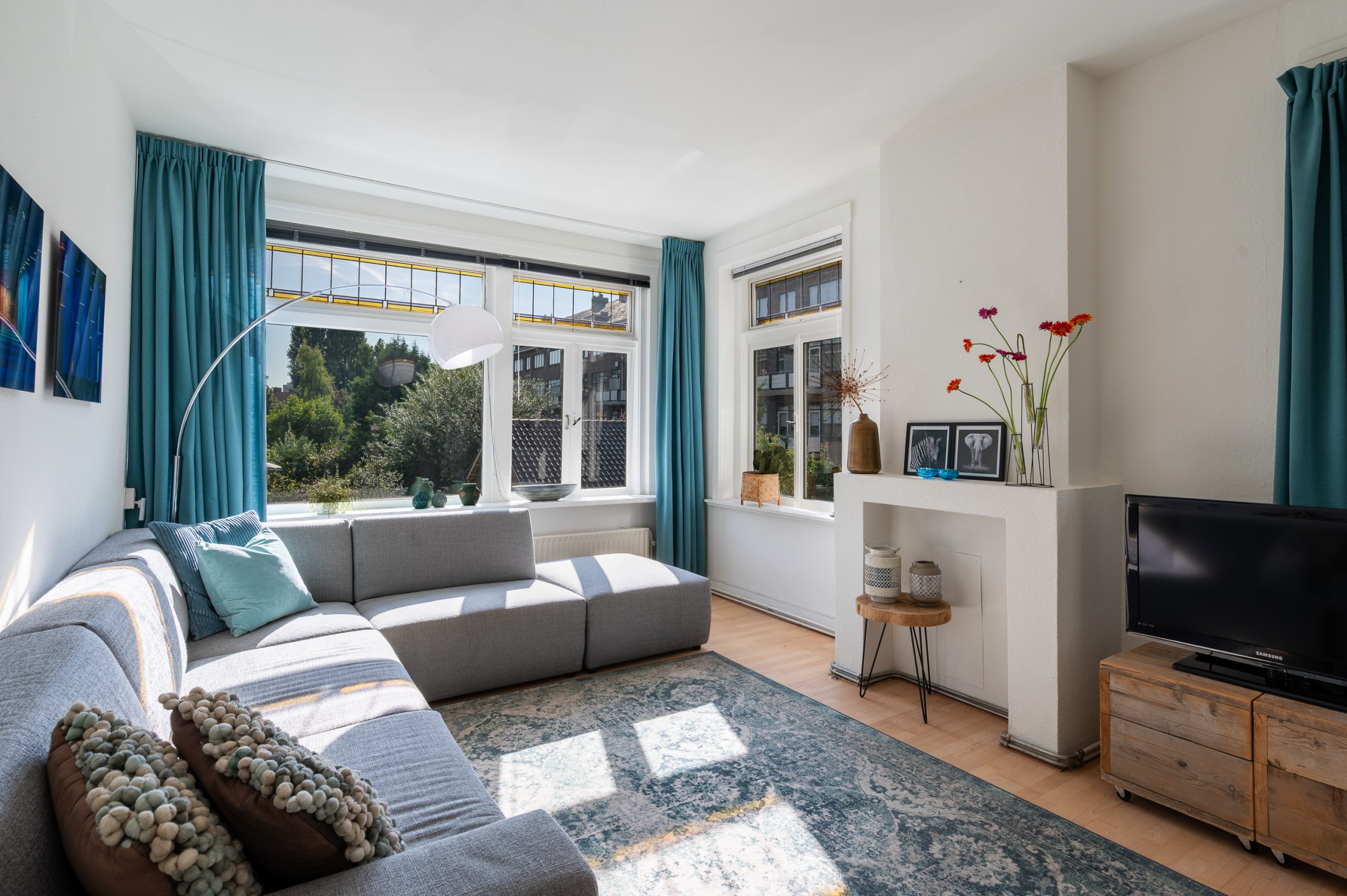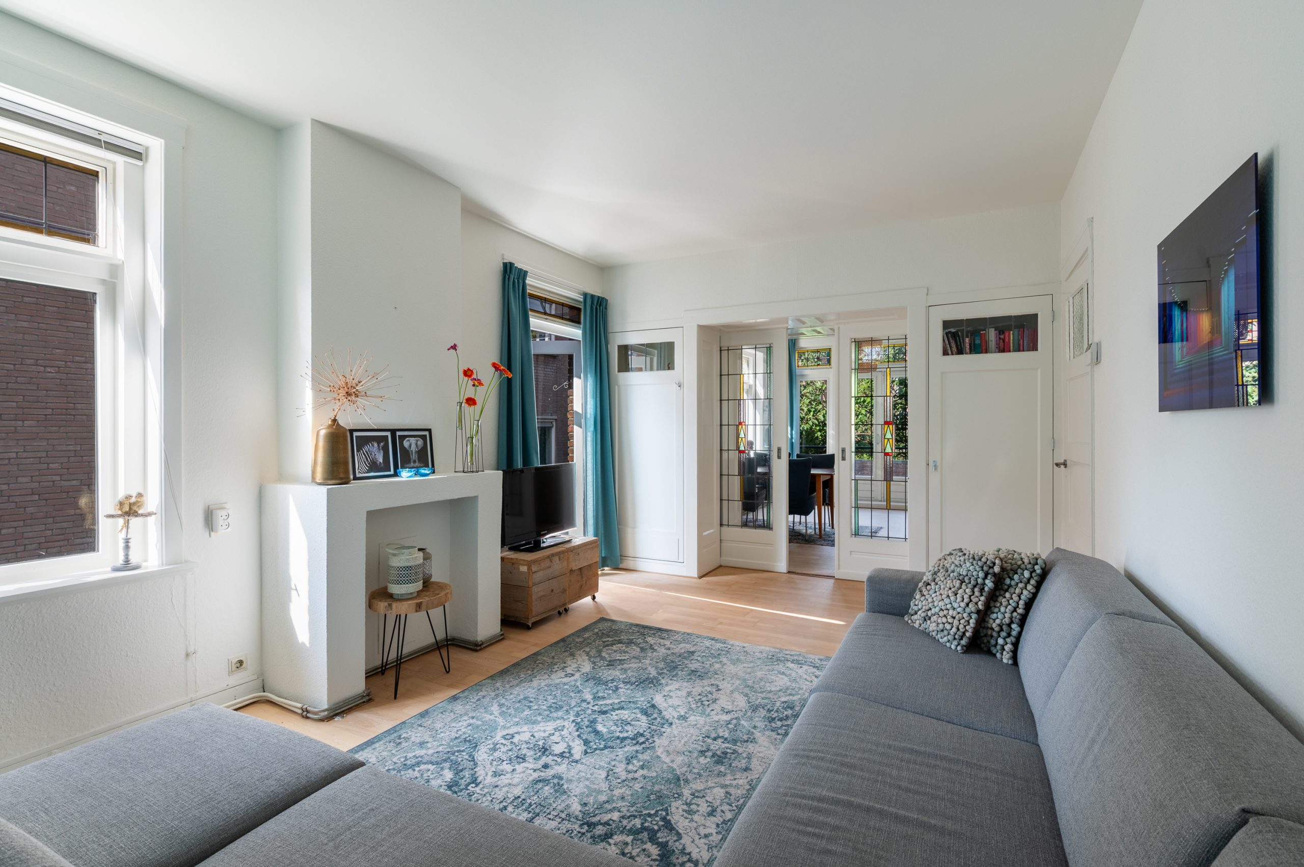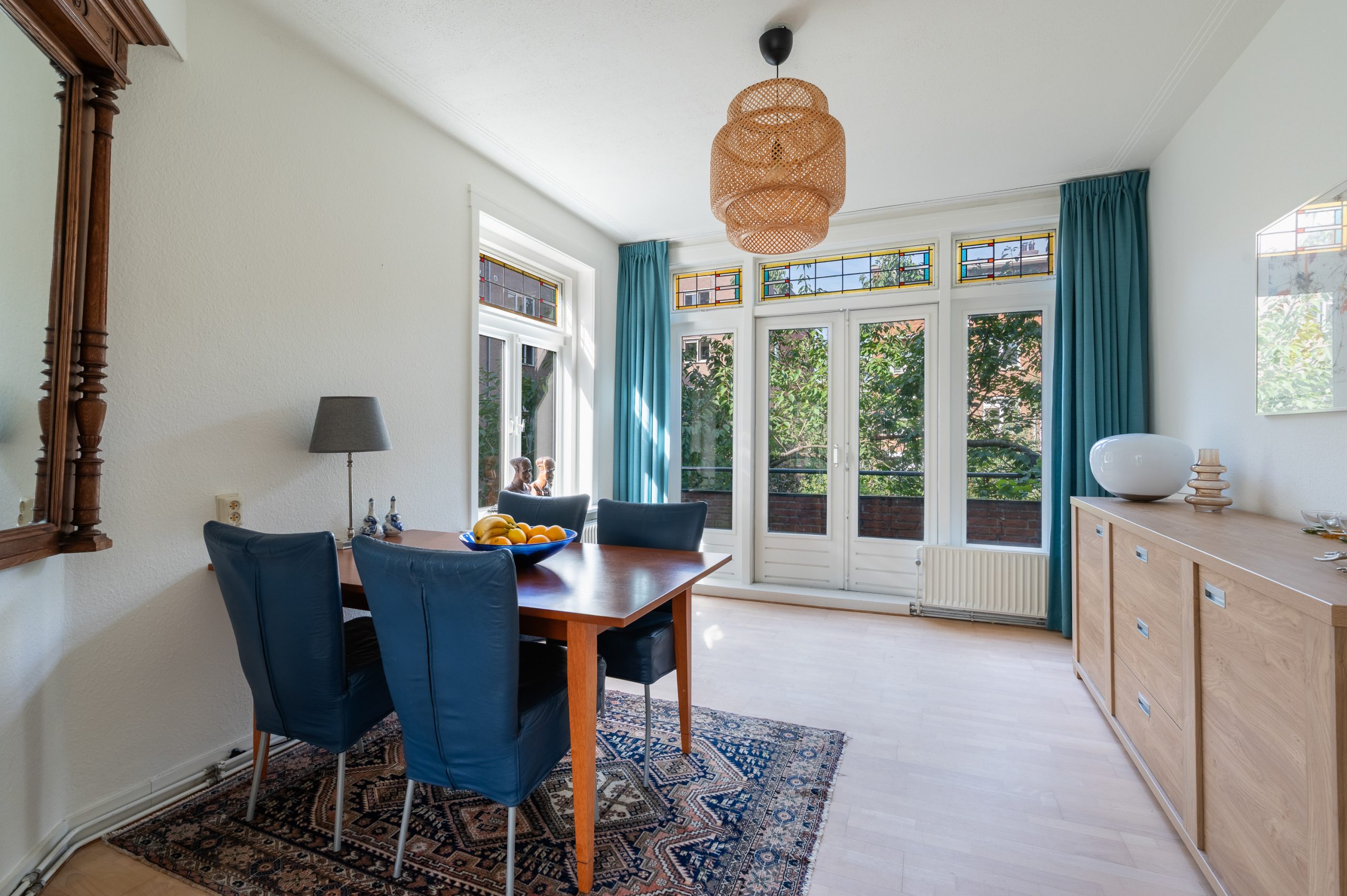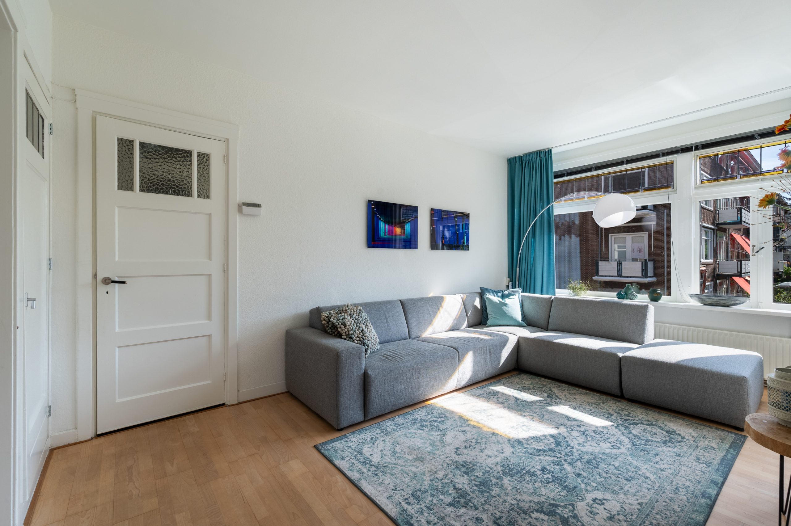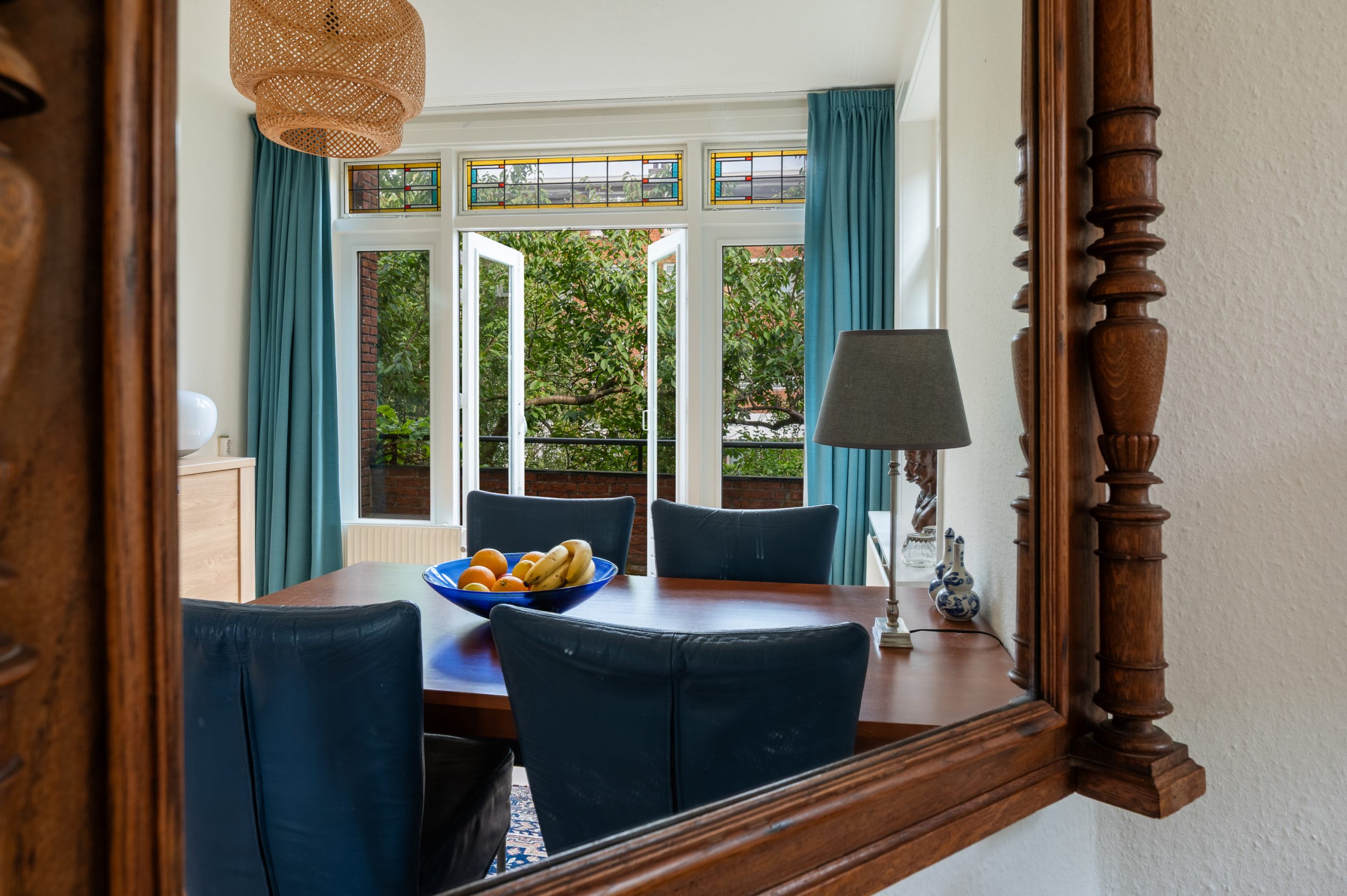 Ruime hal/entree met bergkast, meterkast en toegang tot alle vertrekken. De woonkamer is gelegen aan de voorzijde en heeft mede door de hoekligging een prachtige natuurlijke lichtinval. Wat direct opvalt zijn de originele jaren ’30 details zoals de glas-in-lood ramen, paneeldeuren, schouw en de en suite, wat het ontzettend sfeervol maakt. Het balkon aan de zijkant van het appartement zorgt voor een mooie verbinding tussen het binnen- en buitenleven. Door de en suite (met 4 inbouwkasten en CV-opstelling) wordt het woongedeelte gescheiden van het eetgedeelte. Indien gewenst, kan hier ook een extra slaapkamer worden gecreëerd. Vanuit de eetkamer bereik je het 2e balkon, gelegen op het zonnige westen. De nette keuken is gelegen aan de voorzijde en beschikt over diverse inbouwapparatuur zoals een 4-pits gasfornuis, afzuigkap oven en koel-/vriescombinatie. Ook bevindt zich in de keuken de wasmachineaansluiting. De master bedroom is gelegen aan de achterzijde en is ruim genoeg voor een tweepersoonsbed en een kledingkast. Vanuit de slaapkamer is er tevens toegang tot het balkon. Ook hier maken de glas-in-lood ramen het tot een karakteristieke ruimte. De badkamer is bereikbaar vanuit de hal en is voorzien van een douche, wastafel en toilet.