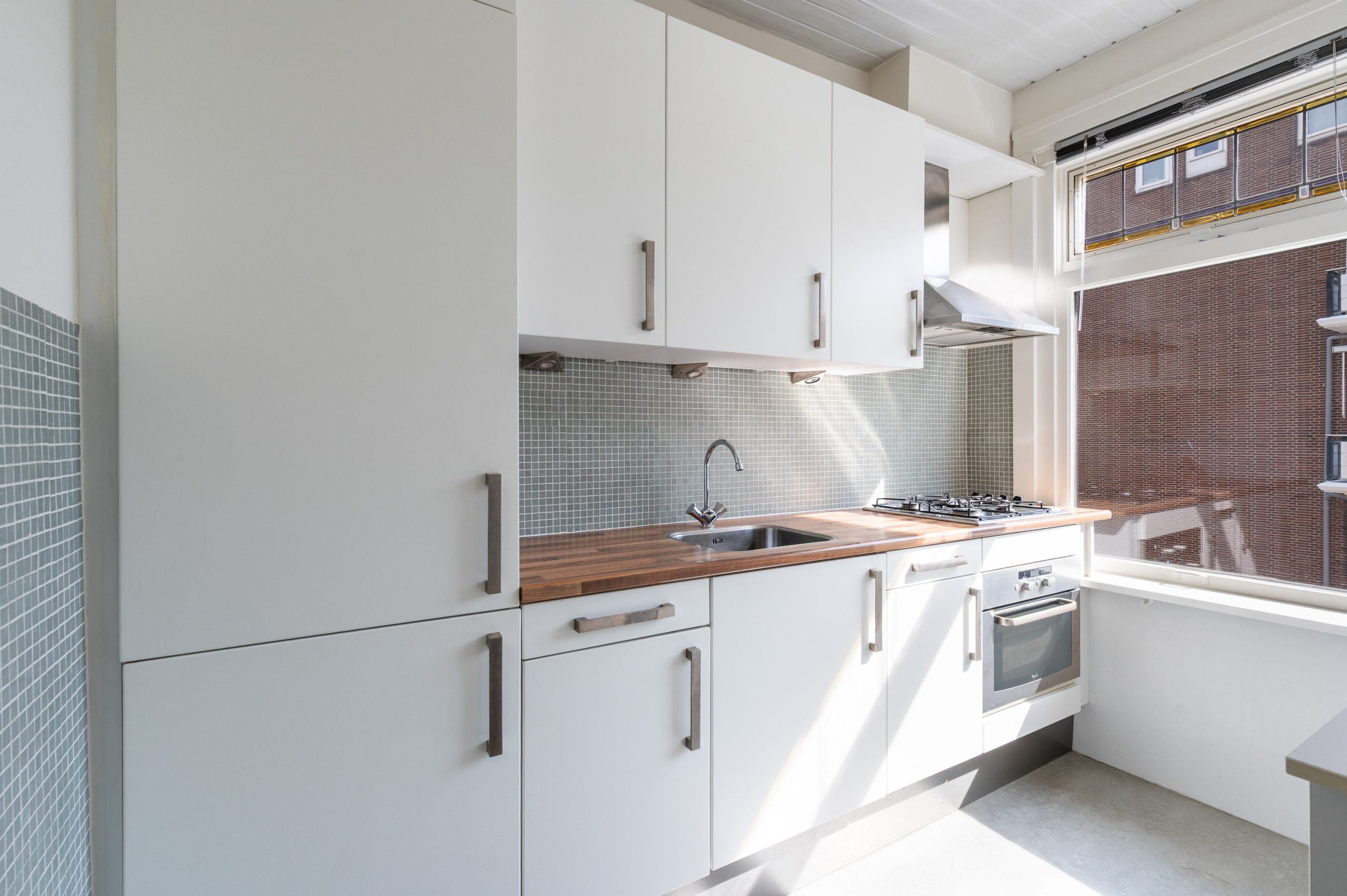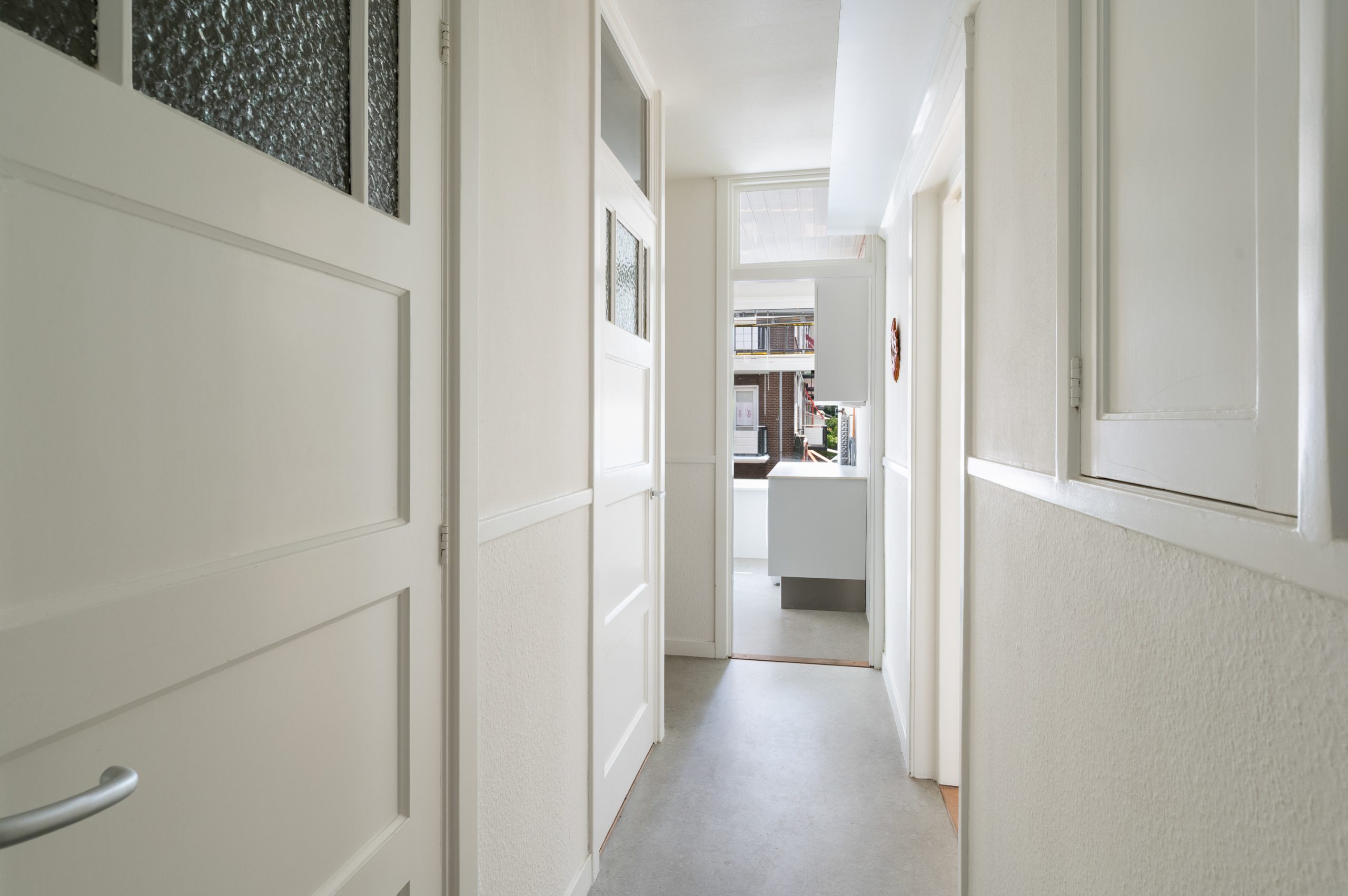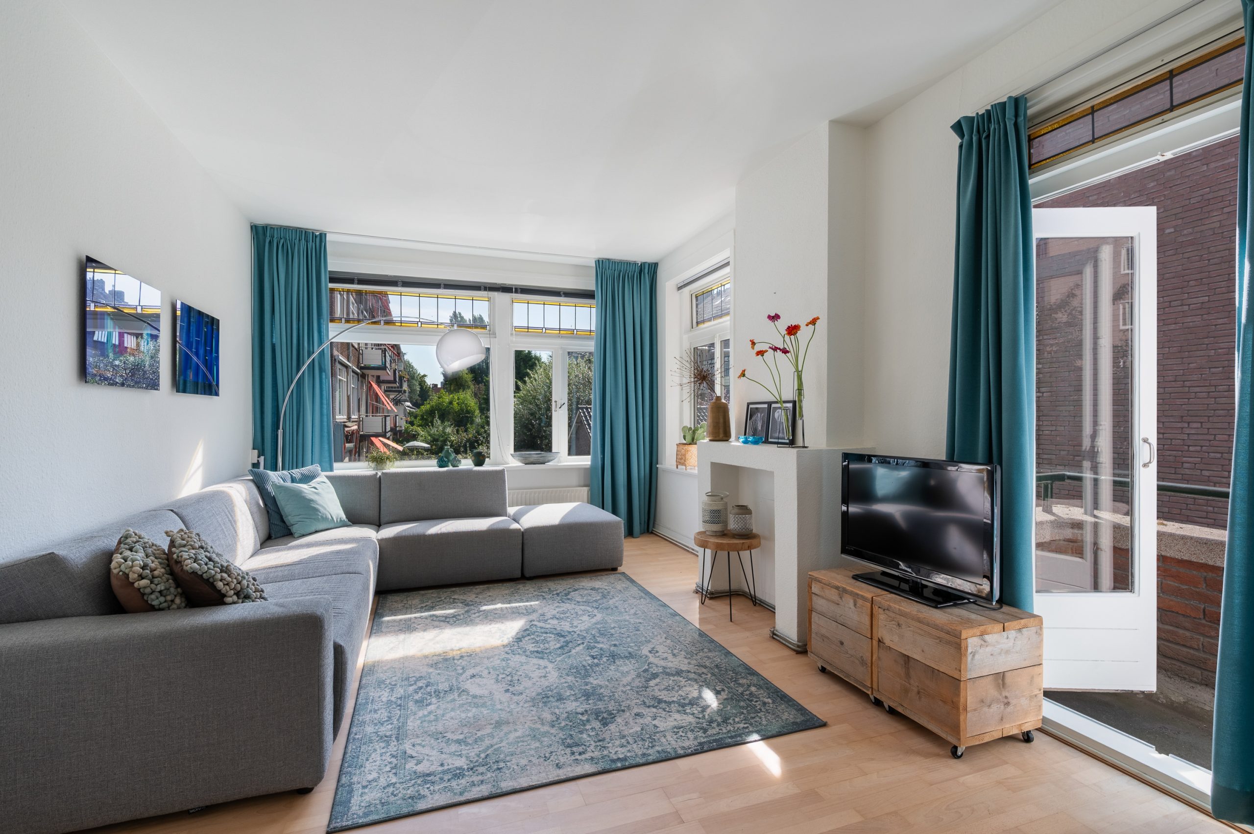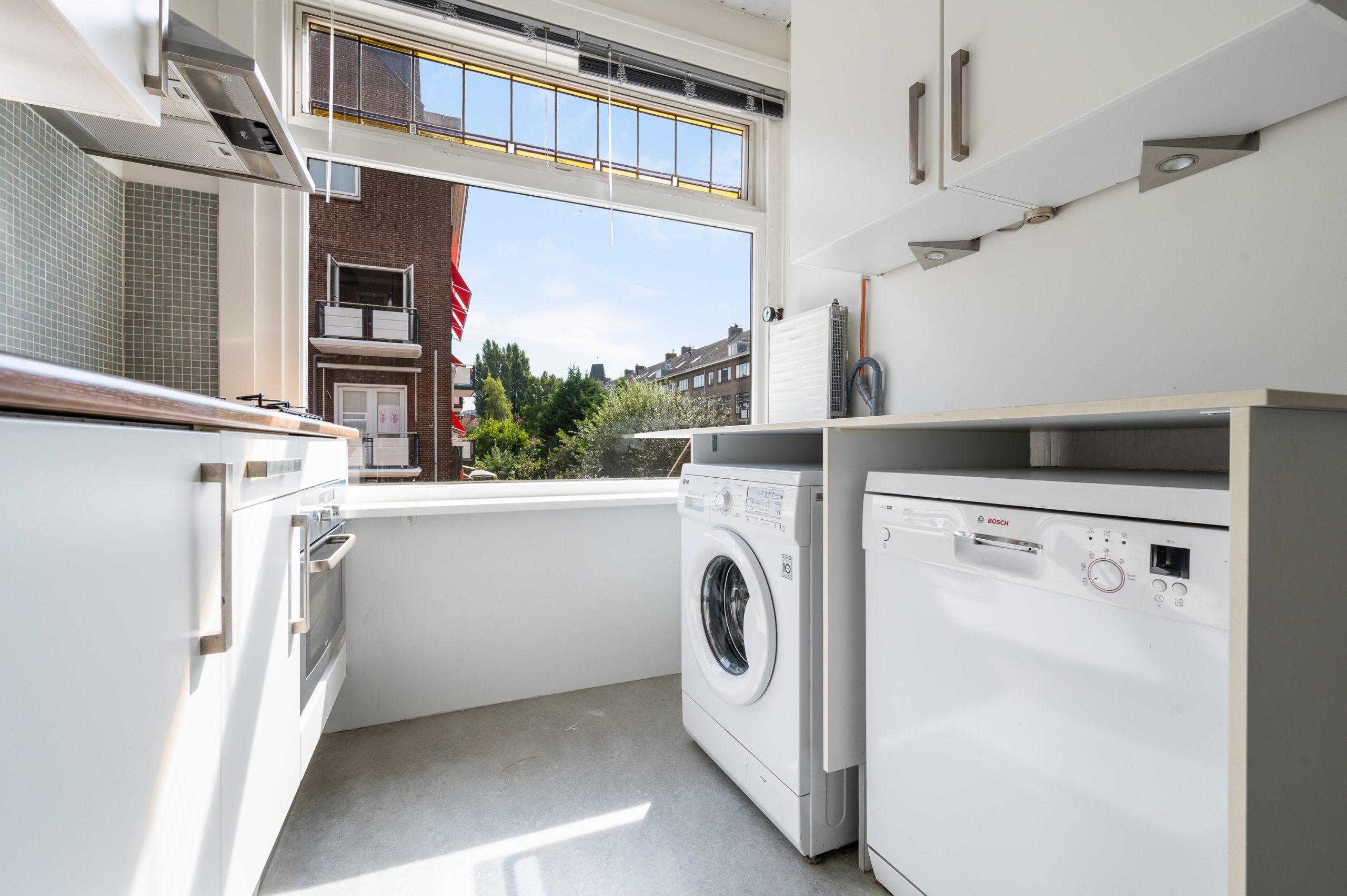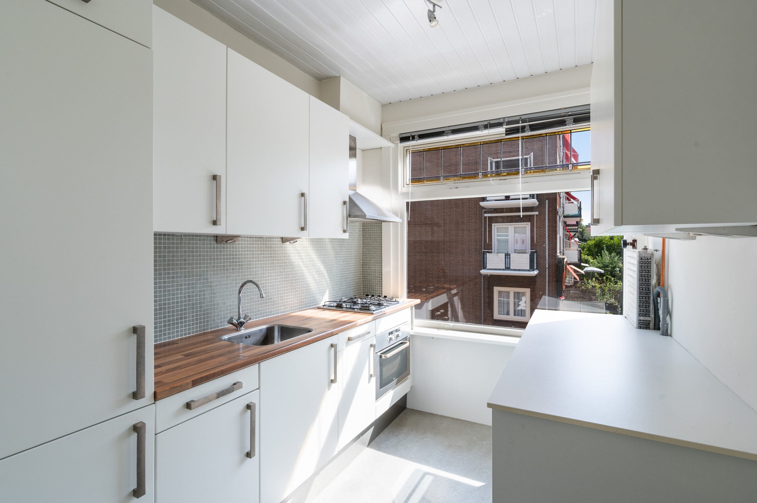 Ruime hal/entree met bergkast, meterkast en toegang tot alle vertrekken. De woonkamer is gelegen aan de voorzijde en heeft mede door de hoekligging een prachtige natuurlijke lichtinval. Wat direct opvalt zijn de originele jaren ’30 details zoals de glas-in-lood ramen, paneeldeuren, schouw en de en suite, wat het ontzettend sfeervol maakt. Het balkon aan de zijkant van het appartement zorgt voor een mooie verbinding tussen het binnen- en buitenleven. Door de en suite (met 4 inbouwkasten en CV-opstelling) wordt het woongedeelte gescheiden van het eetgedeelte. Indien gewenst, kan hier ook een extra slaapkamer worden gecreëerd. Vanuit de eetkamer bereik je het 2e balkon, gelegen op het zonnige westen. De nette keuken is gelegen aan de voorzijde en beschikt over diverse inbouwapparatuur zoals een 4-pits gasfornuis, afzuigkap oven en koel-/vriescombinatie. Ook bevindt zich in de keuken de wasmachineaansluiting. De master bedroom is gelegen aan de achterzijde en is ruim genoeg voor een tweepersoonsbed en een kledingkast. Vanuit de slaapkamer is er tevens toegang tot het balkon. Ook hier maken de glas-in-lood ramen het tot een karakteristieke ruimte. De badkamer is bereikbaar vanuit de hal en is voorzien van een douche, wastafel en toilet.