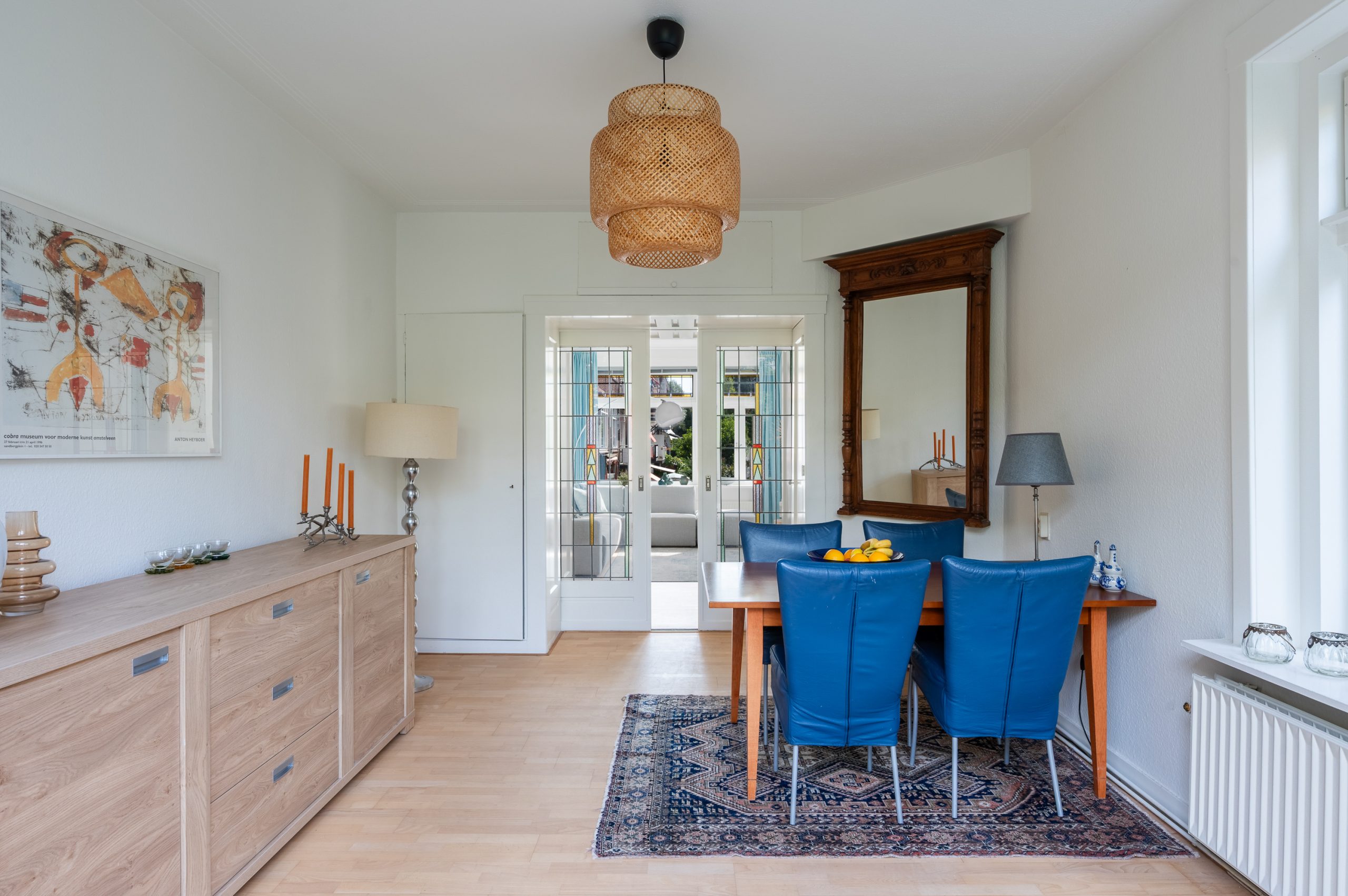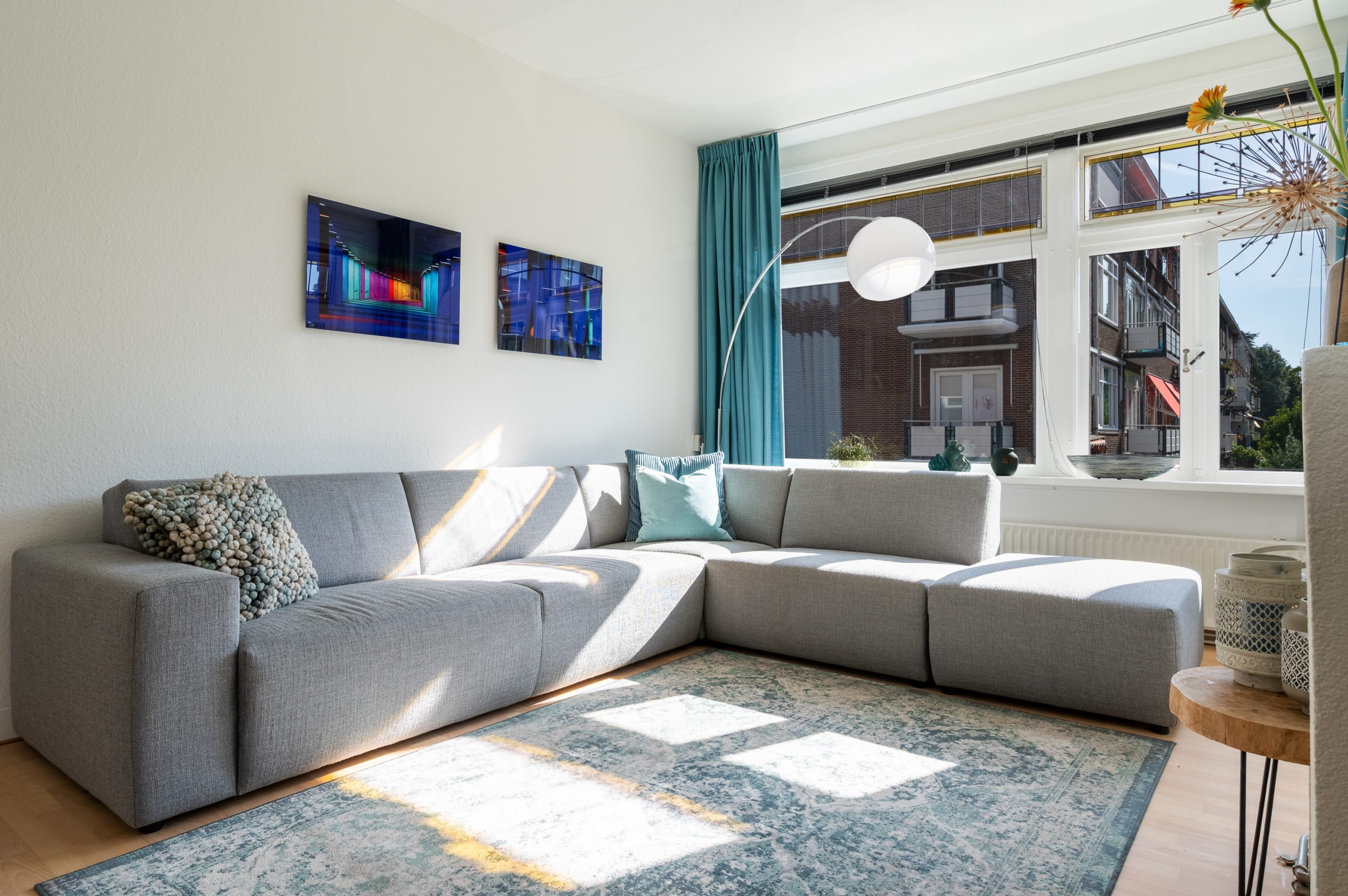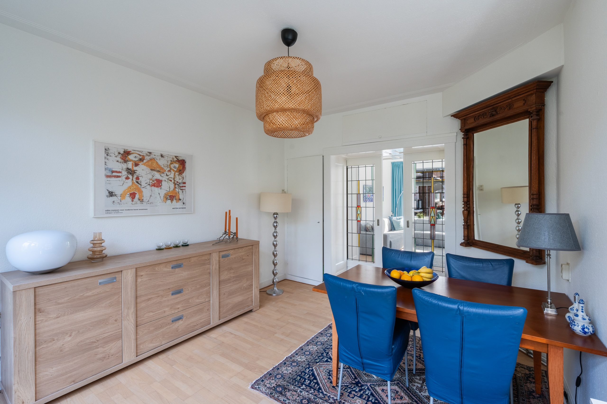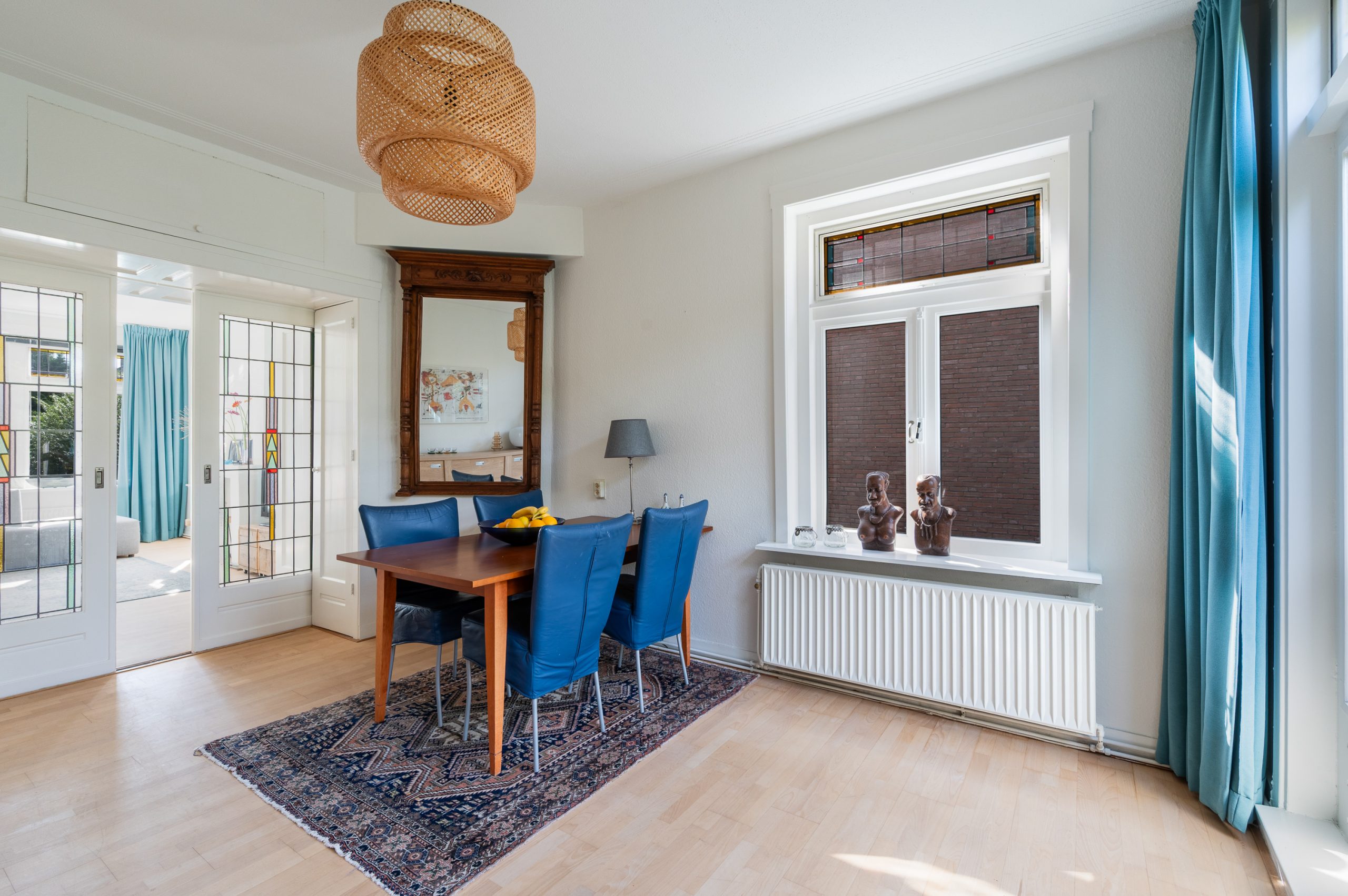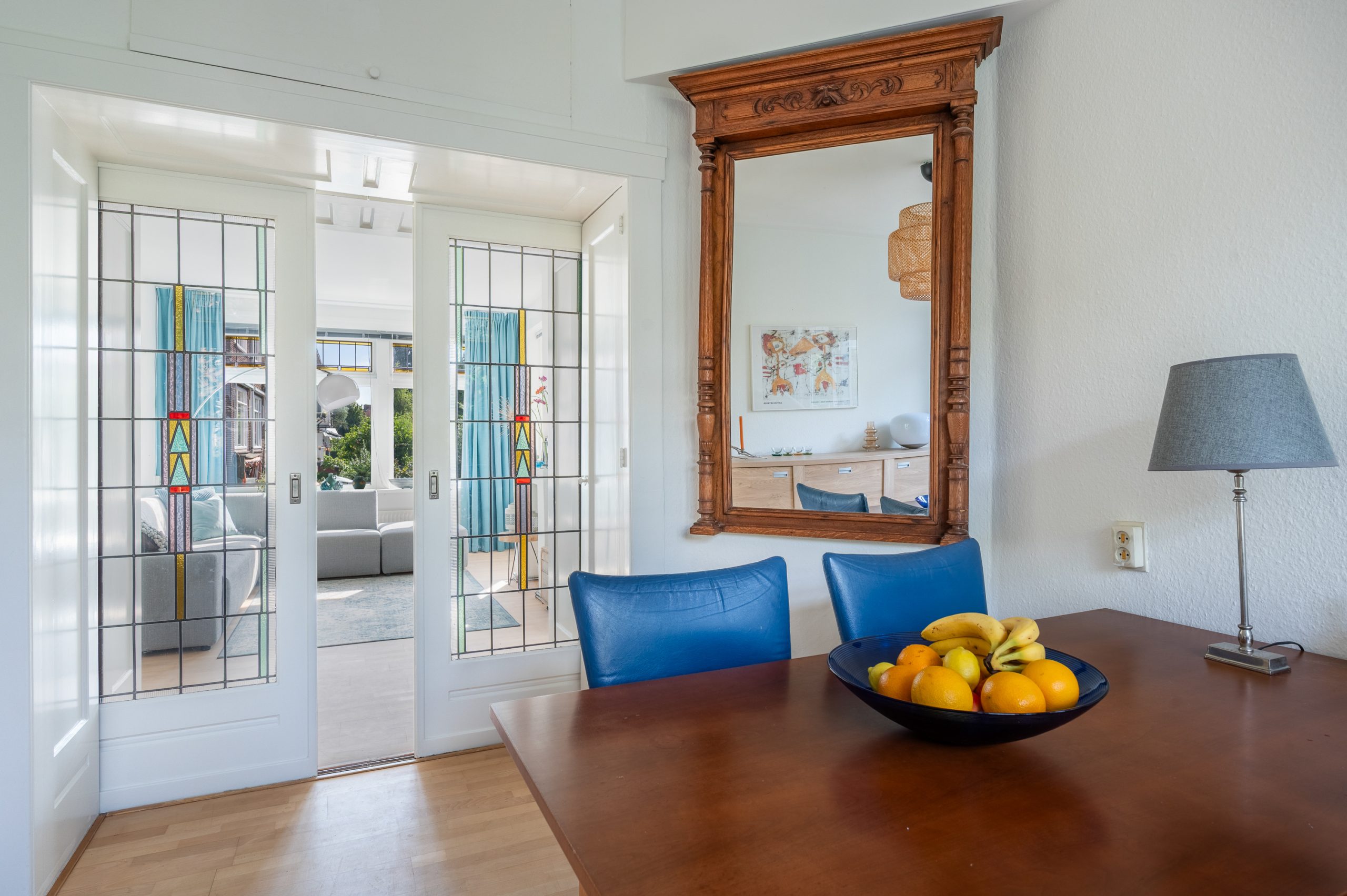 Ruime hal/entree met bergkast, meterkast en toegang tot alle vertrekken. De woonkamer is gelegen aan de voorzijde en heeft mede door de hoekligging een prachtige natuurlijke lichtinval. Wat direct opvalt zijn de originele jaren ’30 details zoals de glas-in-lood ramen, paneeldeuren, schouw en de en suite, wat het ontzettend sfeervol maakt. Het balkon aan de zijkant van het appartement zorgt voor een mooie verbinding tussen het binnen- en buitenleven. Door de en suite (met 4 inbouwkasten en CV-opstelling) wordt het woongedeelte gescheiden van het eetgedeelte. Indien gewenst, kan hier ook een extra slaapkamer worden gecreëerd. Vanuit de eetkamer bereik je het 2e balkon, gelegen op het zonnige westen. De nette keuken is gelegen aan de voorzijde en beschikt over diverse inbouwapparatuur zoals een 4-pits gasfornuis, afzuigkap oven en koel-/vriescombinatie. Ook bevindt zich in de keuken de wasmachineaansluiting. De master bedroom is gelegen aan de achterzijde en is ruim genoeg voor een tweepersoonsbed en een kledingkast. Vanuit de slaapkamer is er tevens toegang tot het balkon. Ook hier maken de glas-in-lood ramen het tot een karakteristieke ruimte. De badkamer is bereikbaar vanuit de hal en is voorzien van een douche, wastafel en toilet.