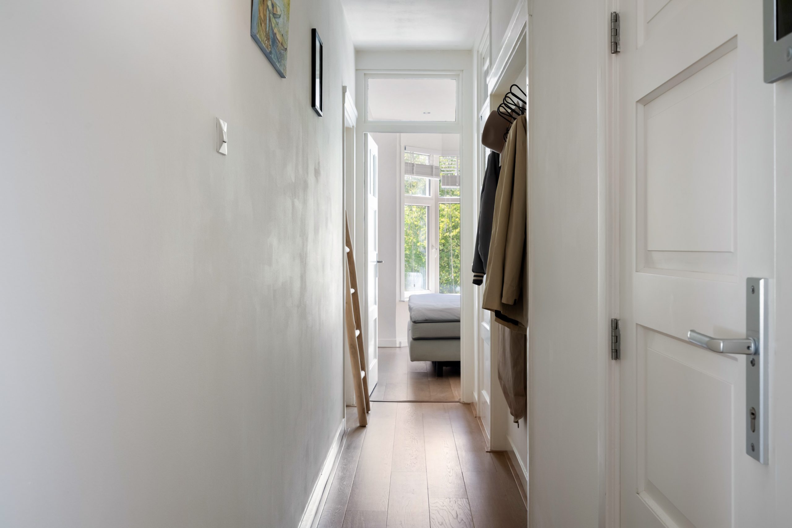 Entree/hal met vaste kast, berging (met wasmachine-aansluiting) en toegang tot alle vertrekken. De woonkamer met een lengte van maar liefst ruim 10 meter is erg ruim te noemen. Door de grote raampartijen is dit een fijne en lichte ruimte. De woonkamer biedt voldoende ruimte voor een riante zithoek. Aan de achterzijde bevindt zich de eethoek, een fijne ruimte om te dineren of te borrelen. Via openslaande deuren bereik je het balkon op het zuidwesten, waar je heerlijk van de middag-/avondzon kunt genieten. De moderne keuken beschikt over 2 vaste kasten en verschillende inbouwapparatuur zoals een 4-pits gasfornuis met afzuigkap, vaatwasser en koel-/vriescombinatie. De master bedroom biedt voldoende ruimte voor een tweepersoonsbed en beschikt tevens over een inbouwkast. Aan de achterzijde bevindt zich de 2e slaapkamer. Deze kamer wordt nu gebruikt als kinderkamer, maar kan goed functioneren als slaapkamer of homeoffice. De badkamer met (elektrische) vloerverwarming beschikt over een toilet, dubbele wastafel met wastafelmeubel, handdoekradiator en inloopdouche.