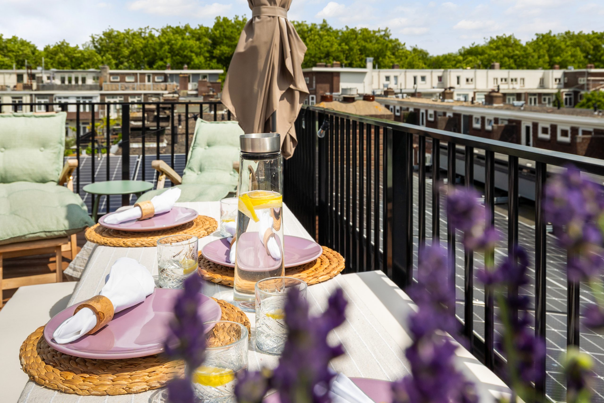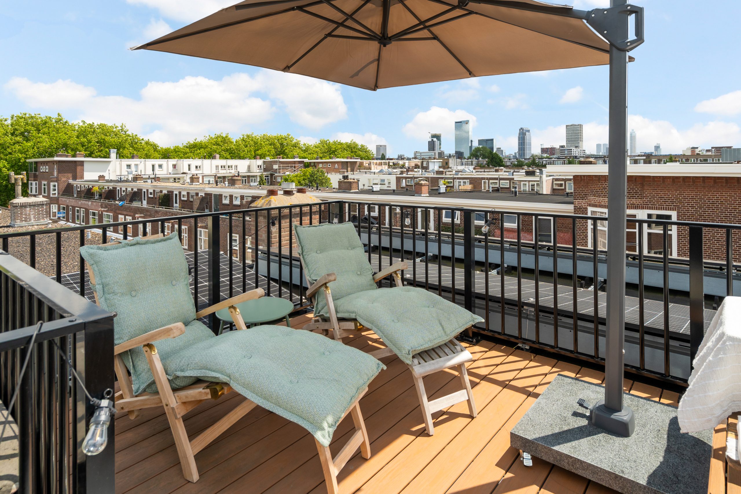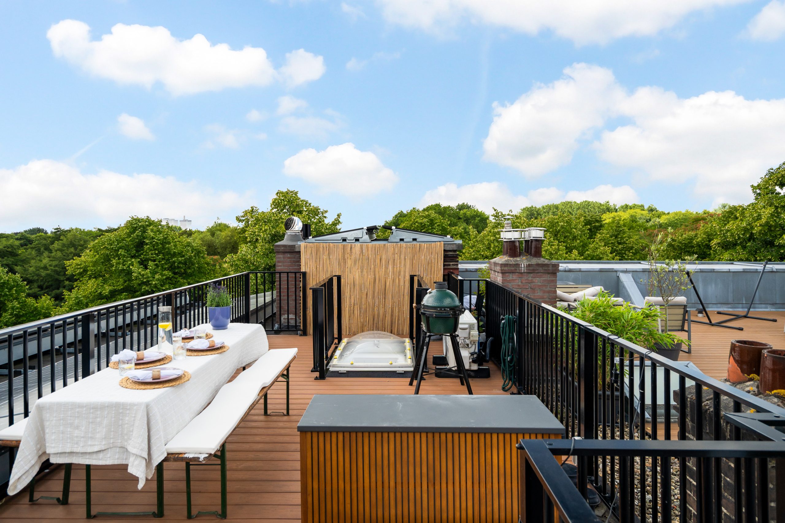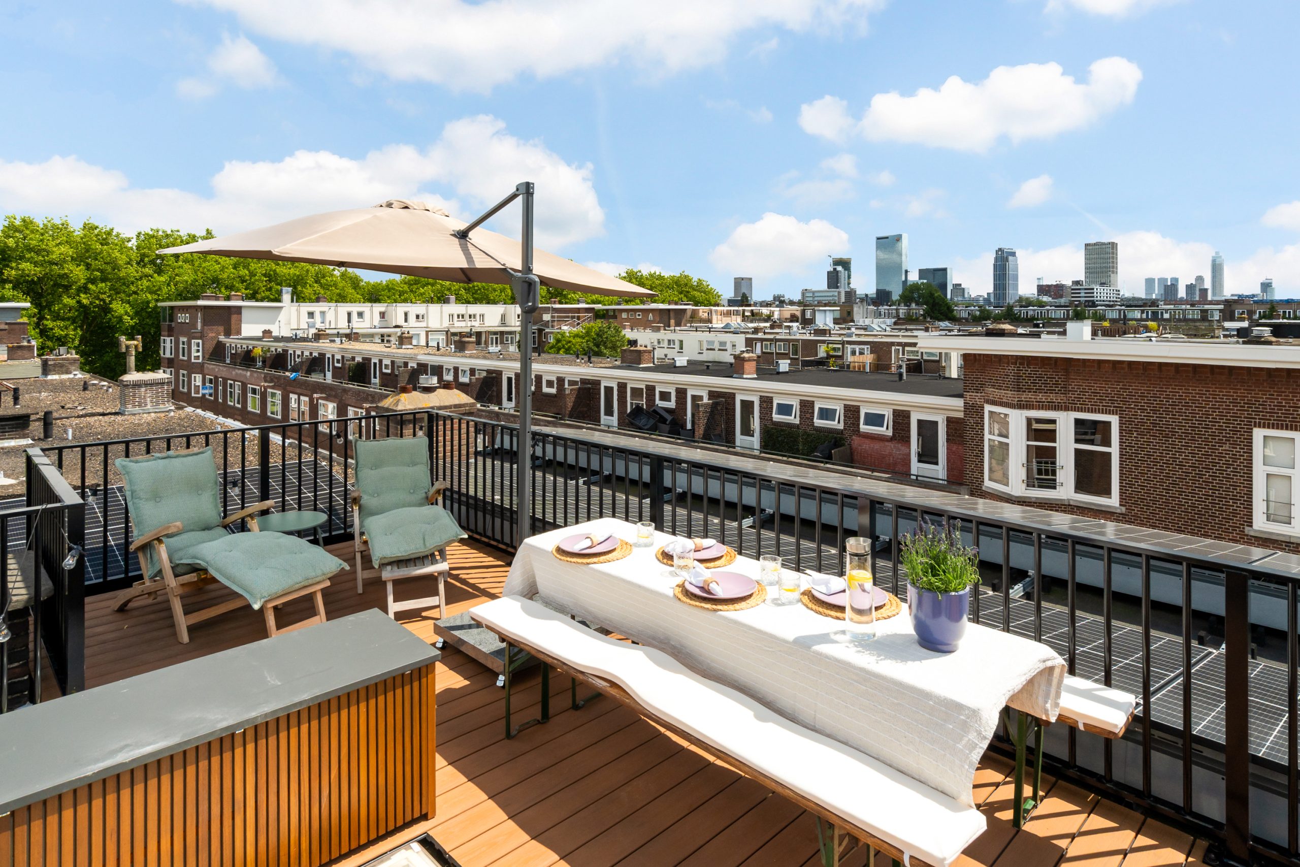 Het appartement beschikt over een fantastisch dakterras met prachtig uitzicht over Rotterdam. Hier kan de gehele dag en avond van de zon genoten worden!