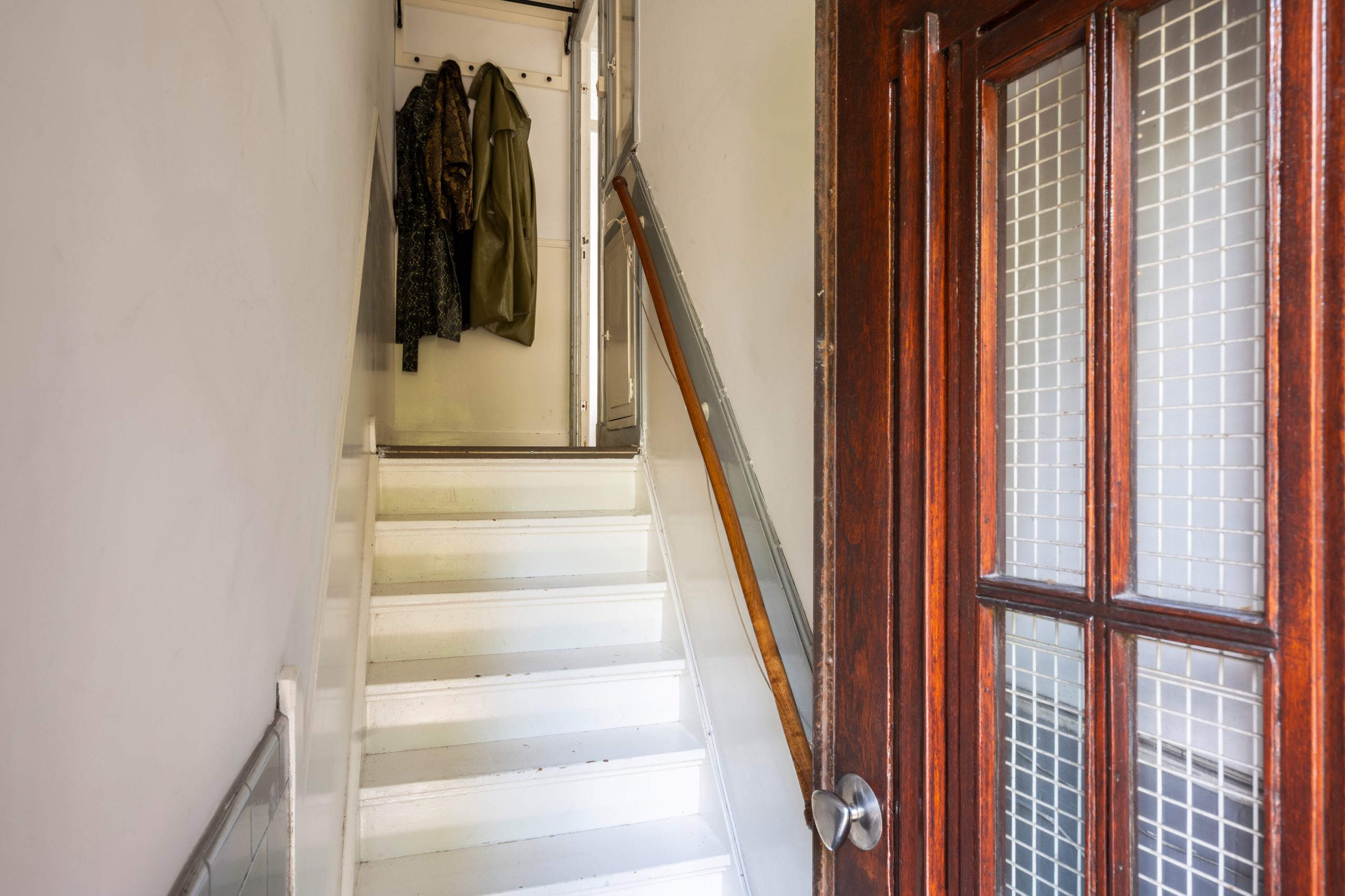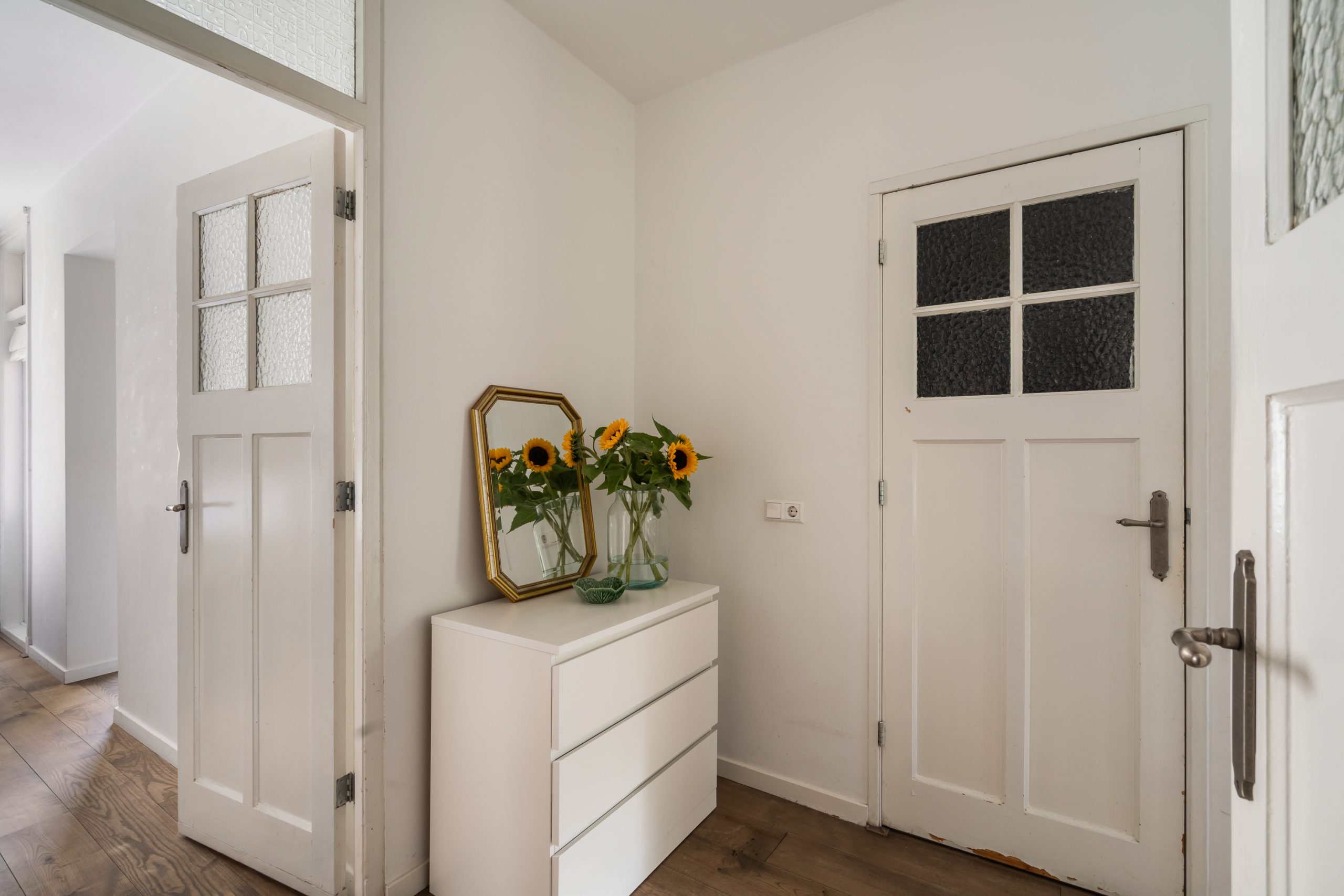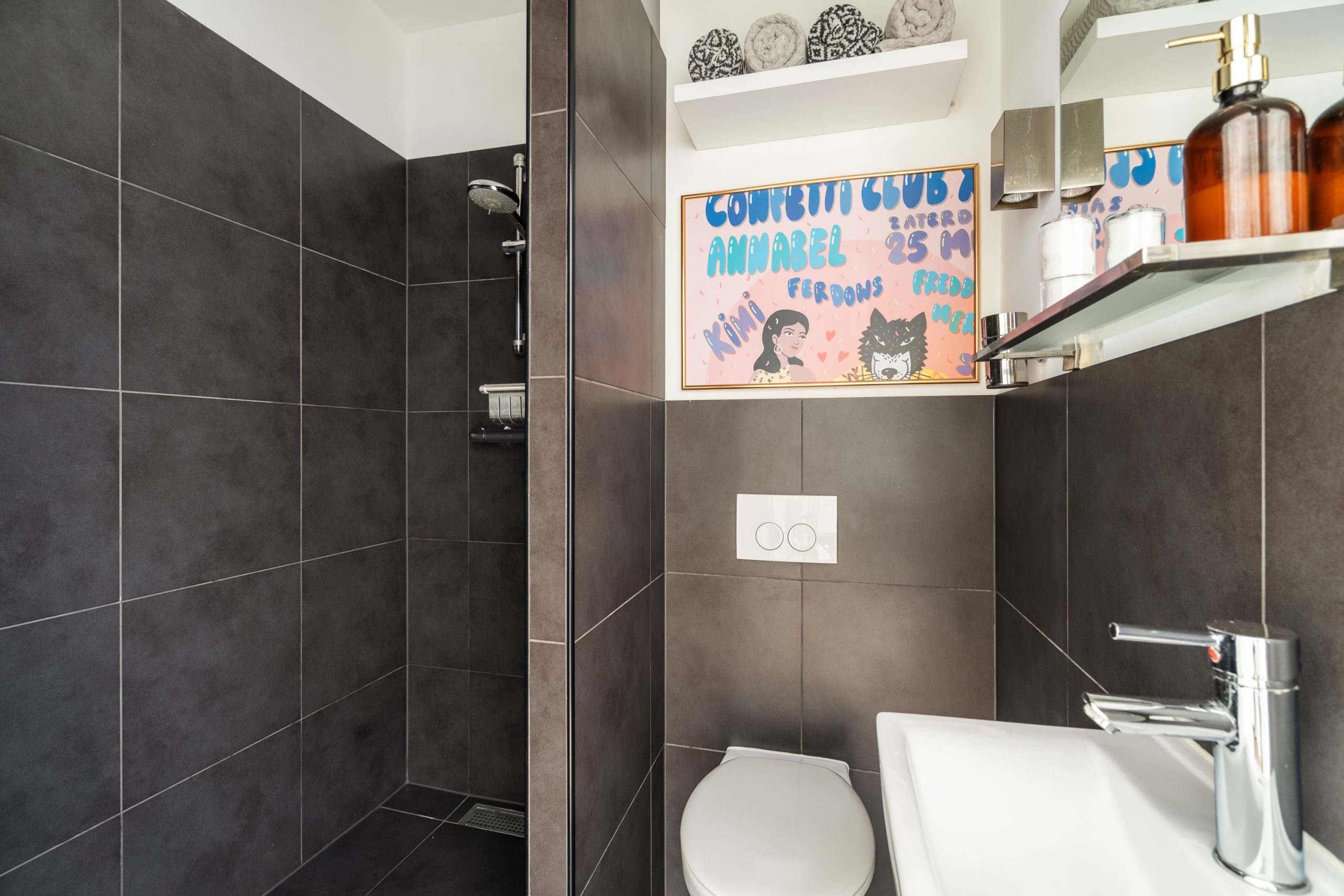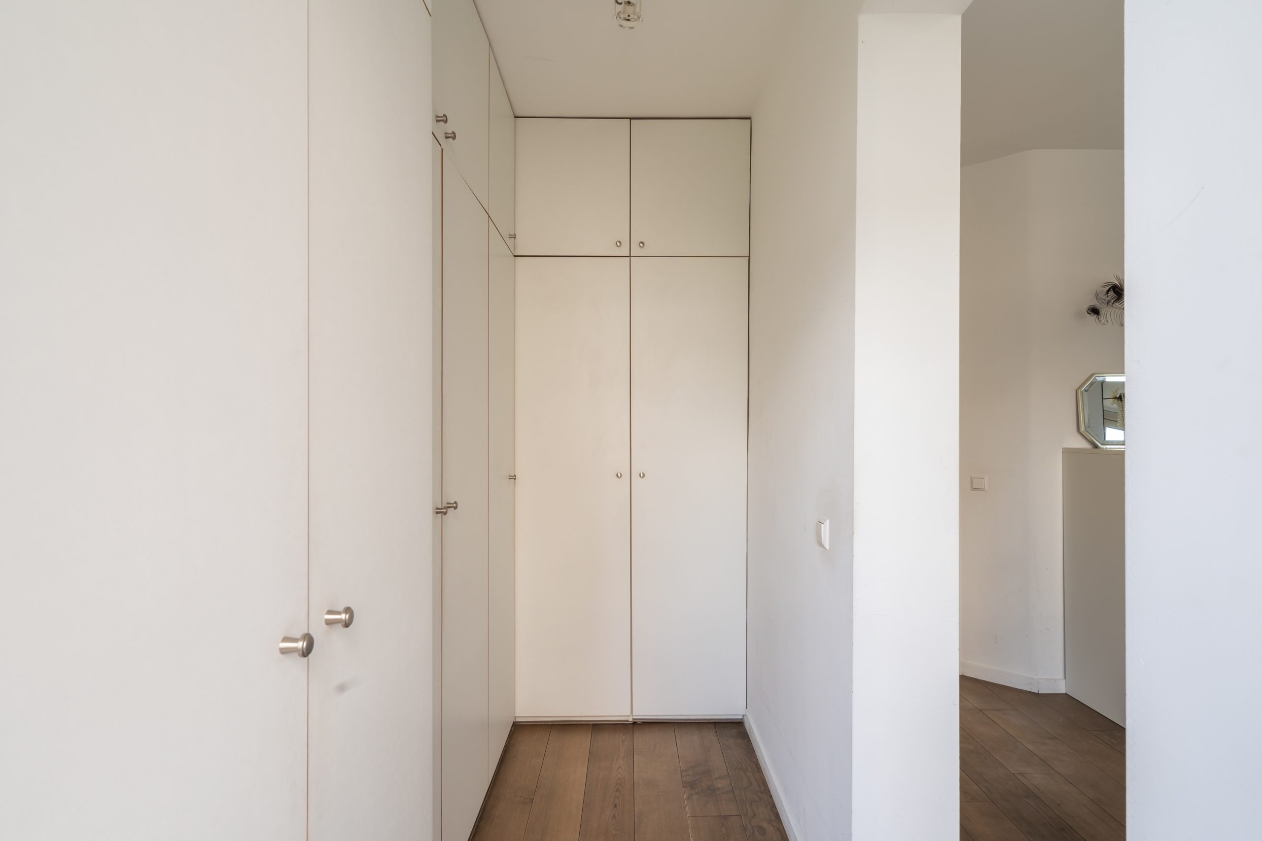 Entree met kleine trap, meterkast, berging en toegang tot alle vertrekken op deze verdieping. De ruime woonkamer is gelegen aan de voorzijde van de woning. Door de grote raampartijen aan de voorzijde van de woning treedt er veel natuurlijk licht de woning binnen, wat zorgt voor een fijne, lichte sfeer. De raampartijen bieden een schitterend uitzicht over het Vroesenpark. De woonkamer biedt voldoende ruimte voor een riante zithoek. De stijlvolle keuken is het hart van deze open ruimte, waar koken en gezelligheid perfect samenkomen. Het is de ideale plek om lekker in contact te blijven met je gezelschap, terwijl je geniet van de open, gezellige sfeer. De keuken beschikt over diverse inbouwapparatuur zoals een 6-pits gasfornuis met afzuigkap, oven, vaatwasser en een Quooker. Aan de achterzijde bevindt zich een open ruimte die multifunctioneel is in te richten als eethoek, kantoor of 2e slaapkamer. Via openslaande deuren bereik je het balkon op het oosten, waar je heerlijk van de ochtendzon kunt genieten met een kop koffie! De master bedroom met inloopkast is gelegen aan de achterzijde van de woning. Deze kamer is erg ruim, licht en heeft ook toegang tot het balkon. De volledig betegelde badkamer beschikt over een inloopdouche, toilet en een wastafel.